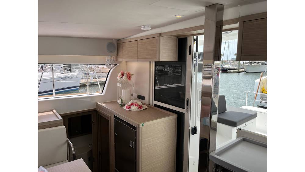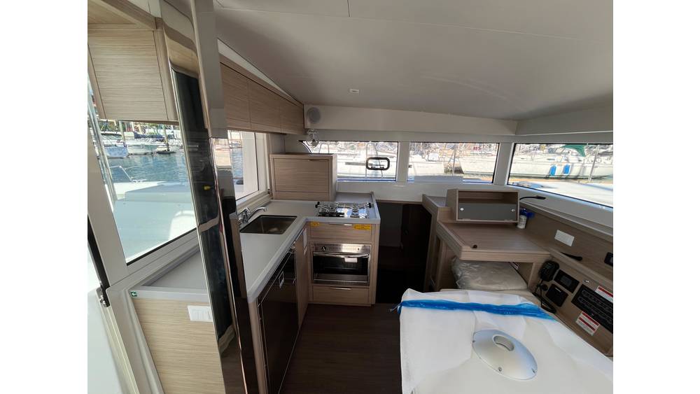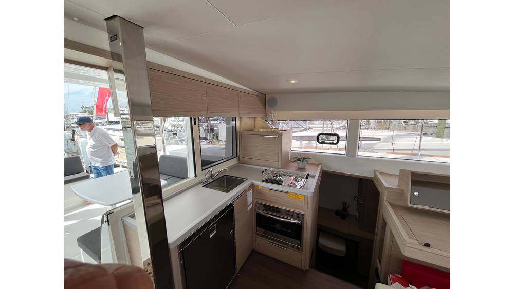 A SLEEK AND INNOVATIVE DESIGN With her new visual identity, the 40 immediately stands out. While faithful to the image of Lagoon’s "DNA", a new style is born: an individual, streamlined and accomplished design depicts her large portholes and panoramic view. This creates a refined and high-performance unit, emphasised by the chamfer running from the bow to the stern. A new generation Lagoon, recognisable at first sight.