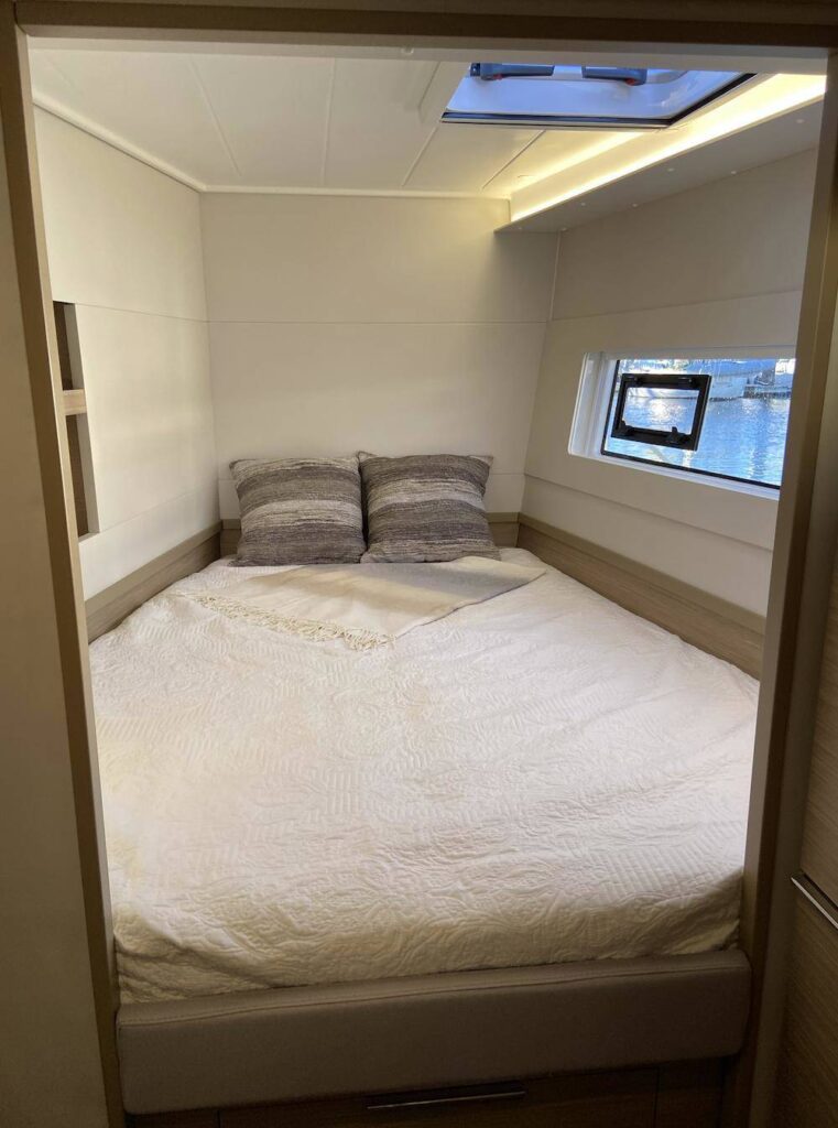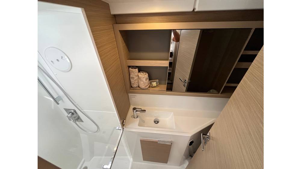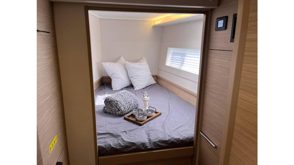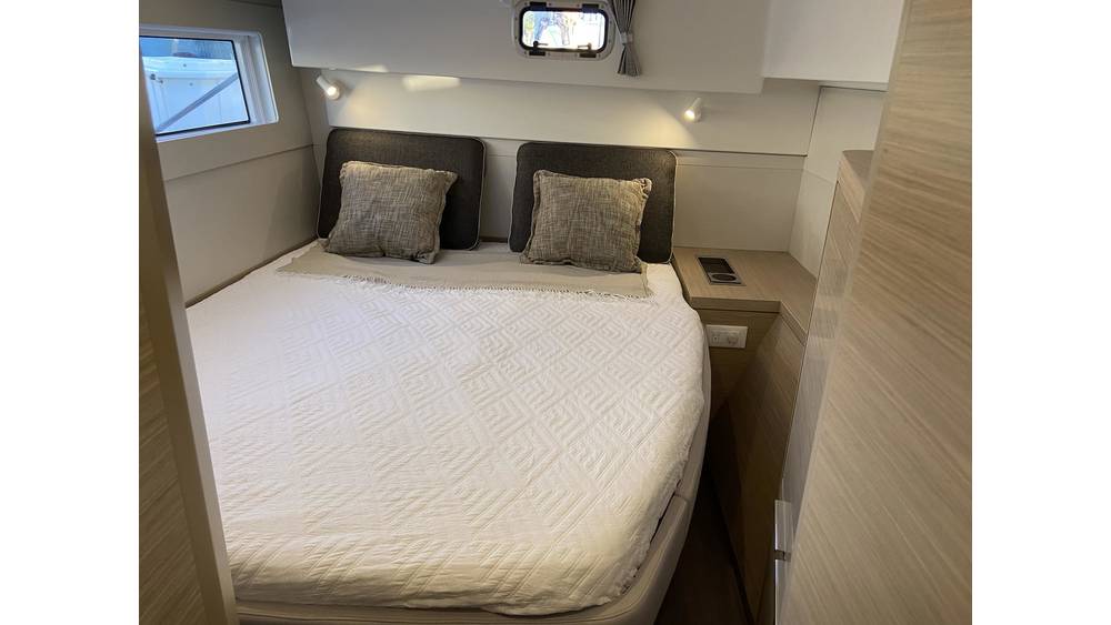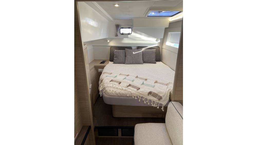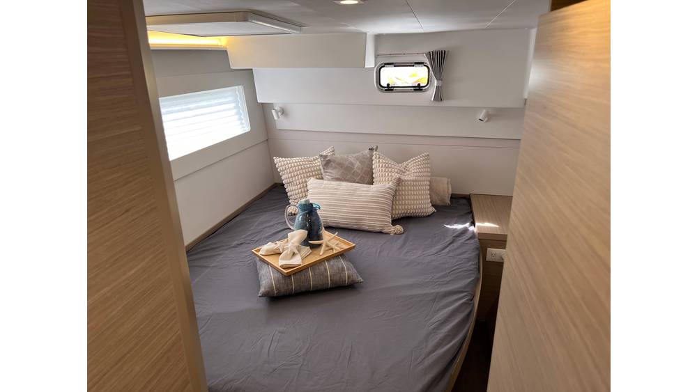 NEW GENERATION RIGGING: PERFORMANCE AND SIMPLICITY A symbol of the new generation Lagoons, the 40 is endowed with advanced performance features: a VPLP hull structure and an increased sail area provide a better sail surface area / displacement ratio. The decision to position the mast step further aft, which stems directly from VPLP's experience in competitive sailing, provides this catamaran with multiple advantages:A self-tacking jib for simplified manoeuvres. - A large forward triangle for a wider choice of downwind sails: a guarantee of performance. - A shorter boom for ease of manoeuvring. - A main sail, with a high aspect ratio, enabling the capture of better airflow in the upper parts of the sail for optimised performance. - The re-centring of weight, thanks to aft positioning of rigging, considerably reduces pitching.