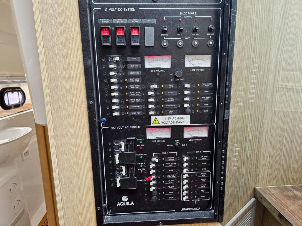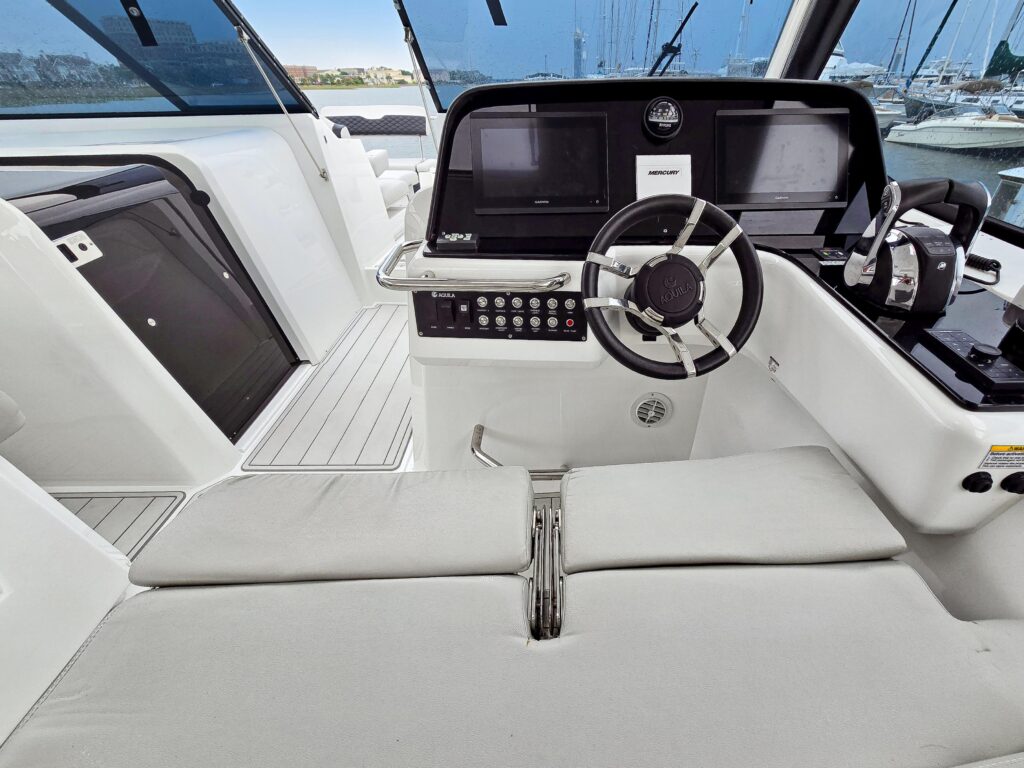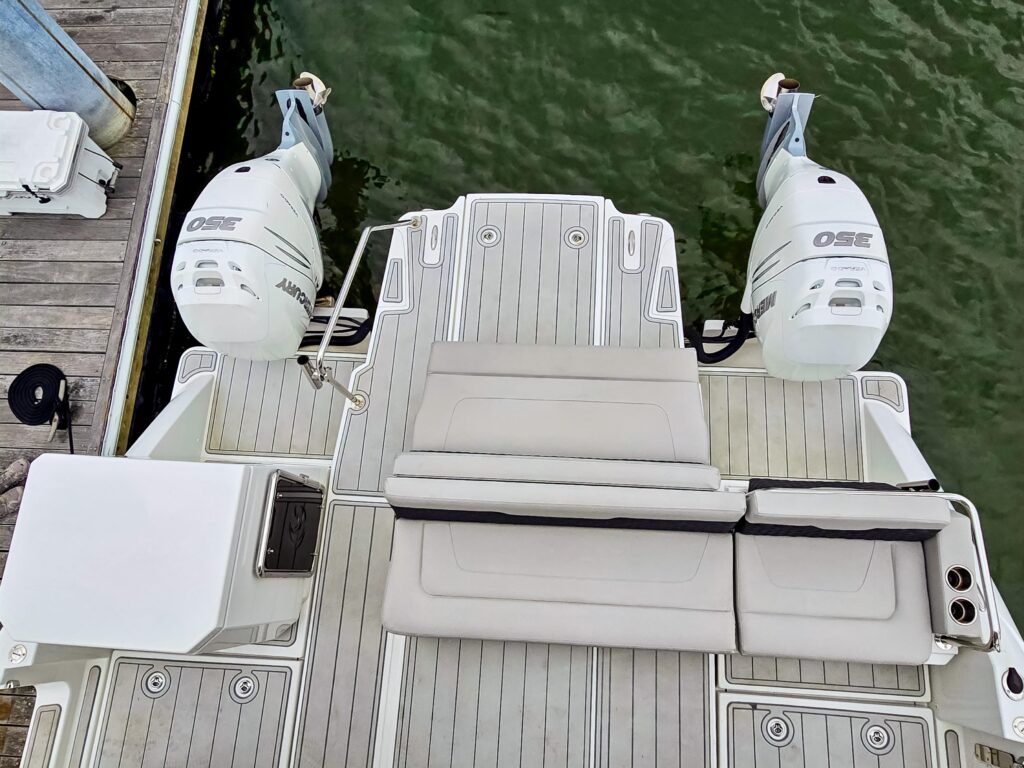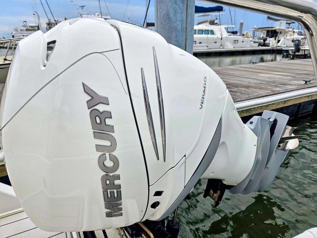 The key to this boat lies in the operation while underway. The two stylish yet reliable Mercury 350 horsepower outboard engines affixed to each hull give this yacht the ability to expedite travel time and reach shallow depths with trim tilt control. Piloting is effortless thanks to the Mercury joystick system, which offers intuitive control for docking, positioning, and close-quarters maneuvering. Looking to stay in one spot without the hassle of managing the helm? "Calypso" is equipped with a SkyHook system that uses GPS to hold position without anchoring, perfect for relaxing, swimming, or waiting for a slip.