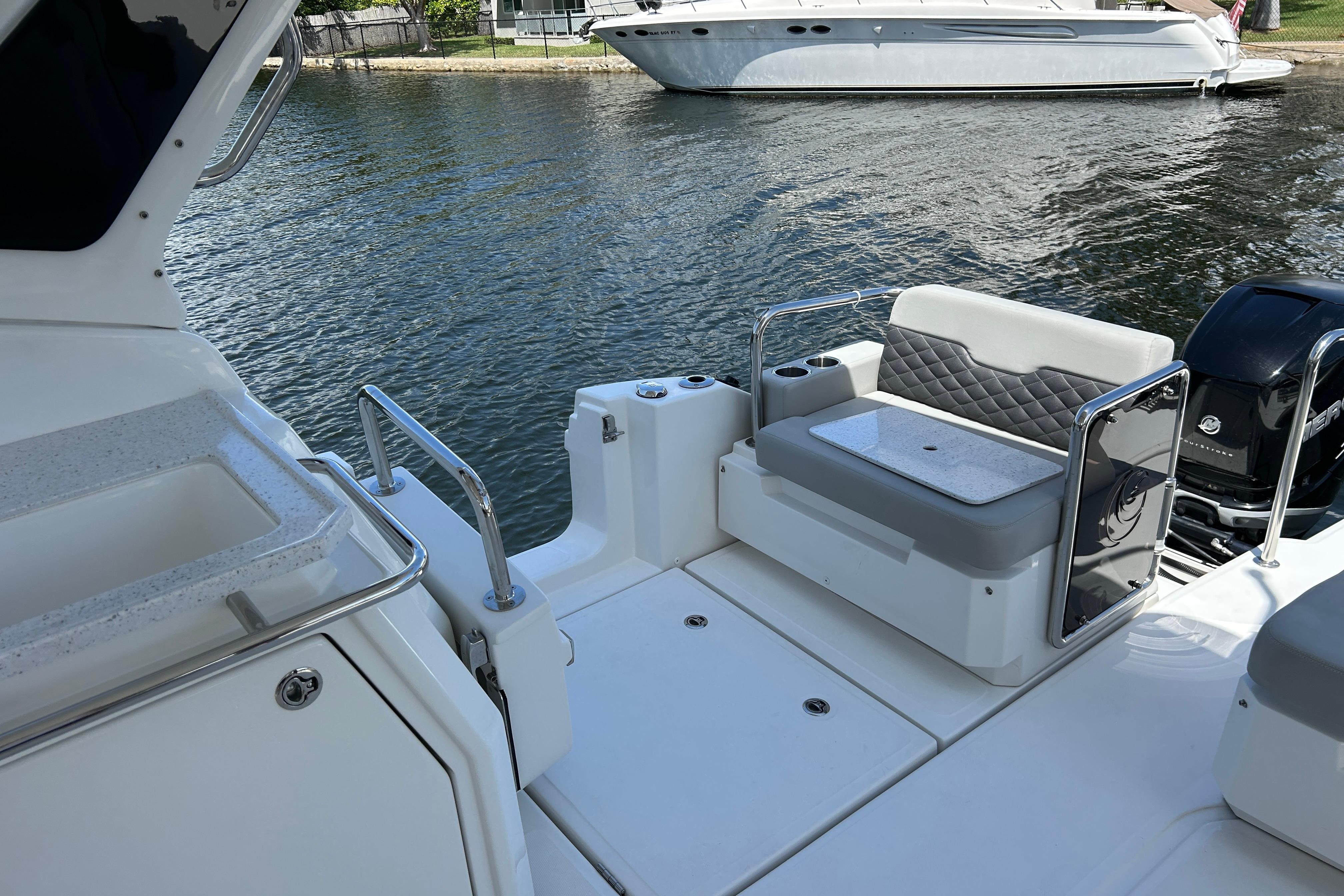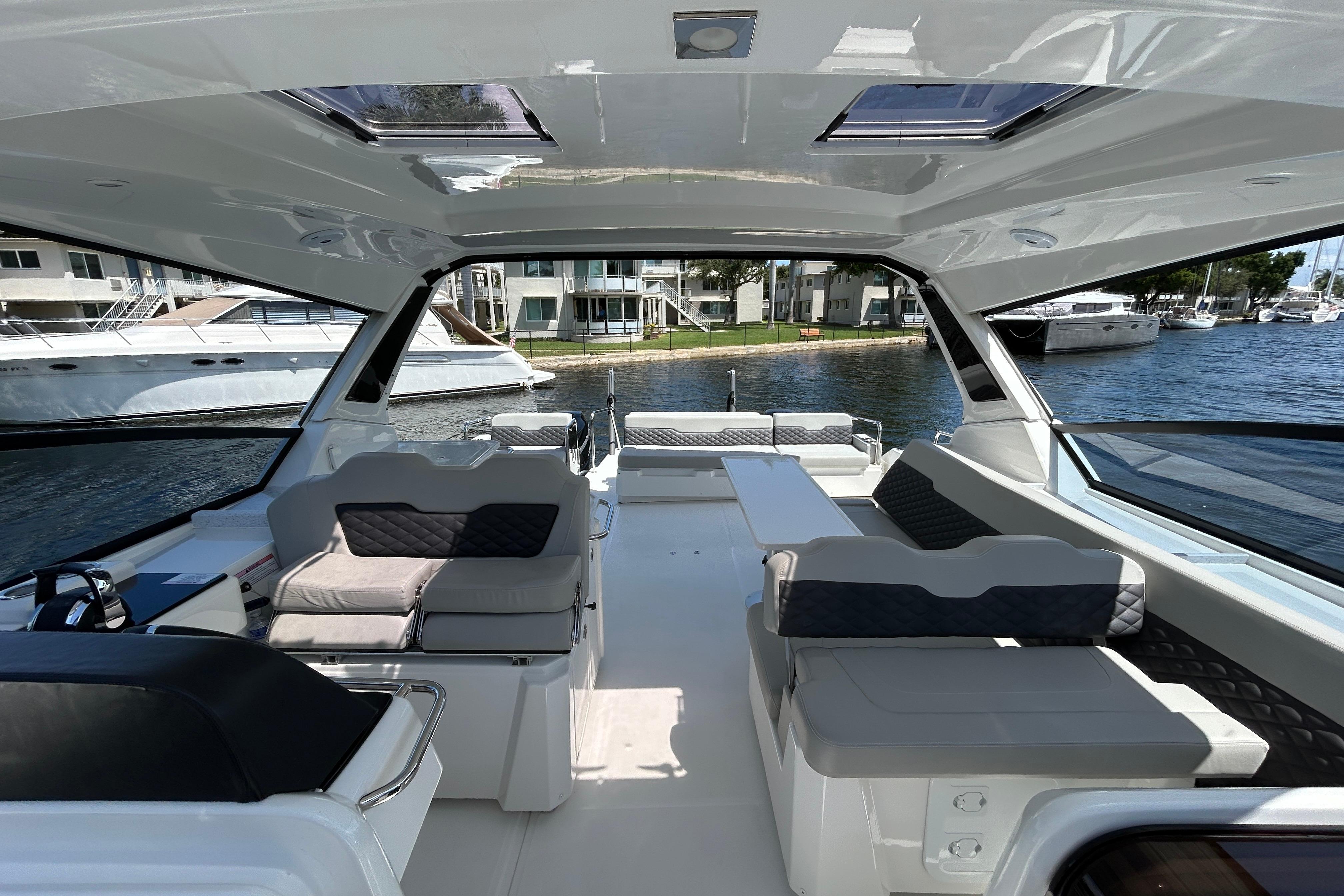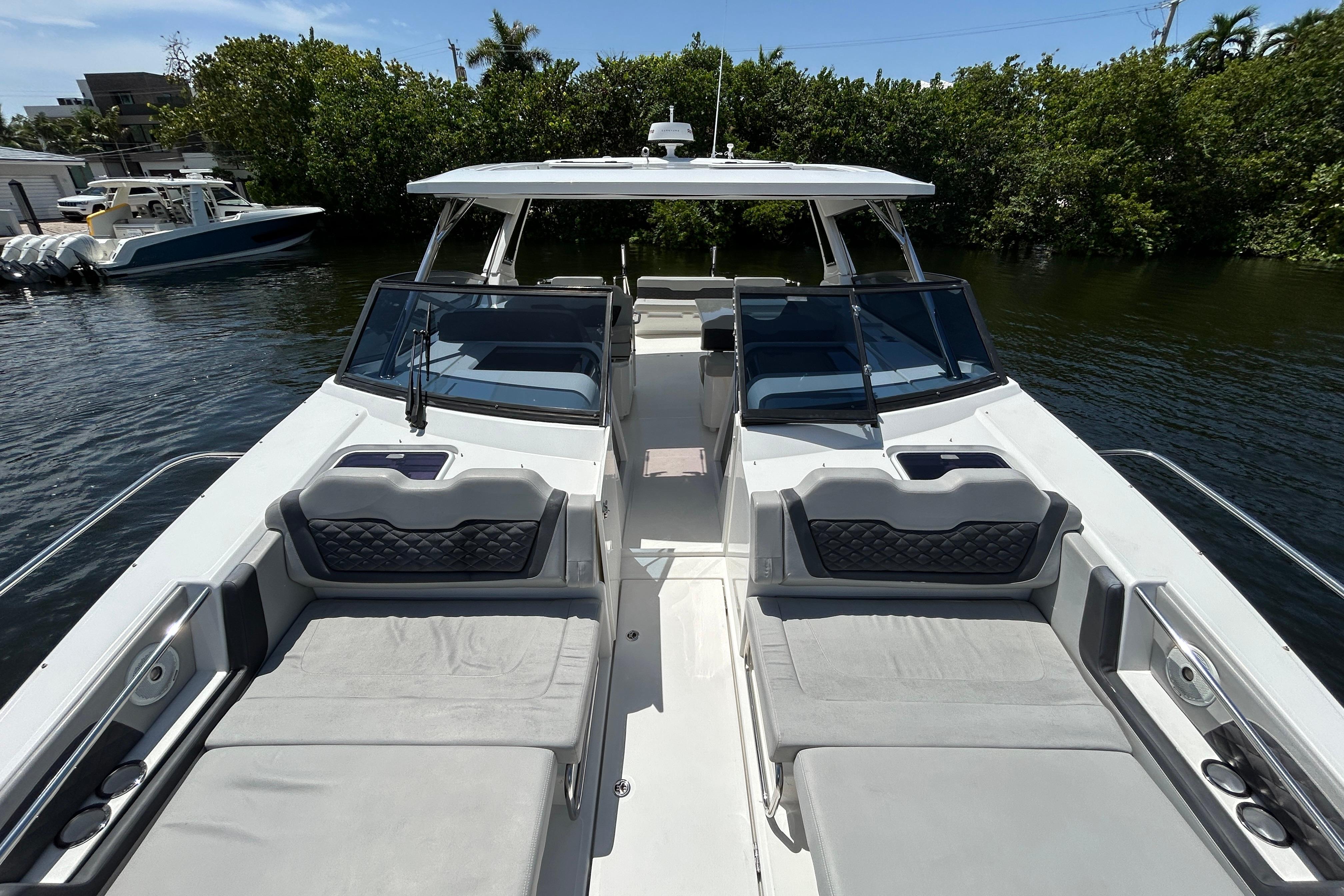 This is the ultimate power catamaran for hosting your friends and family out on the water. With a 14'1" beam, this boat provides seating and comfort for 20 people. The two cabins port and starboard offer space to sleep 4 and two heads with shower. Do not miss your chance on this Aquila 36 Sport!