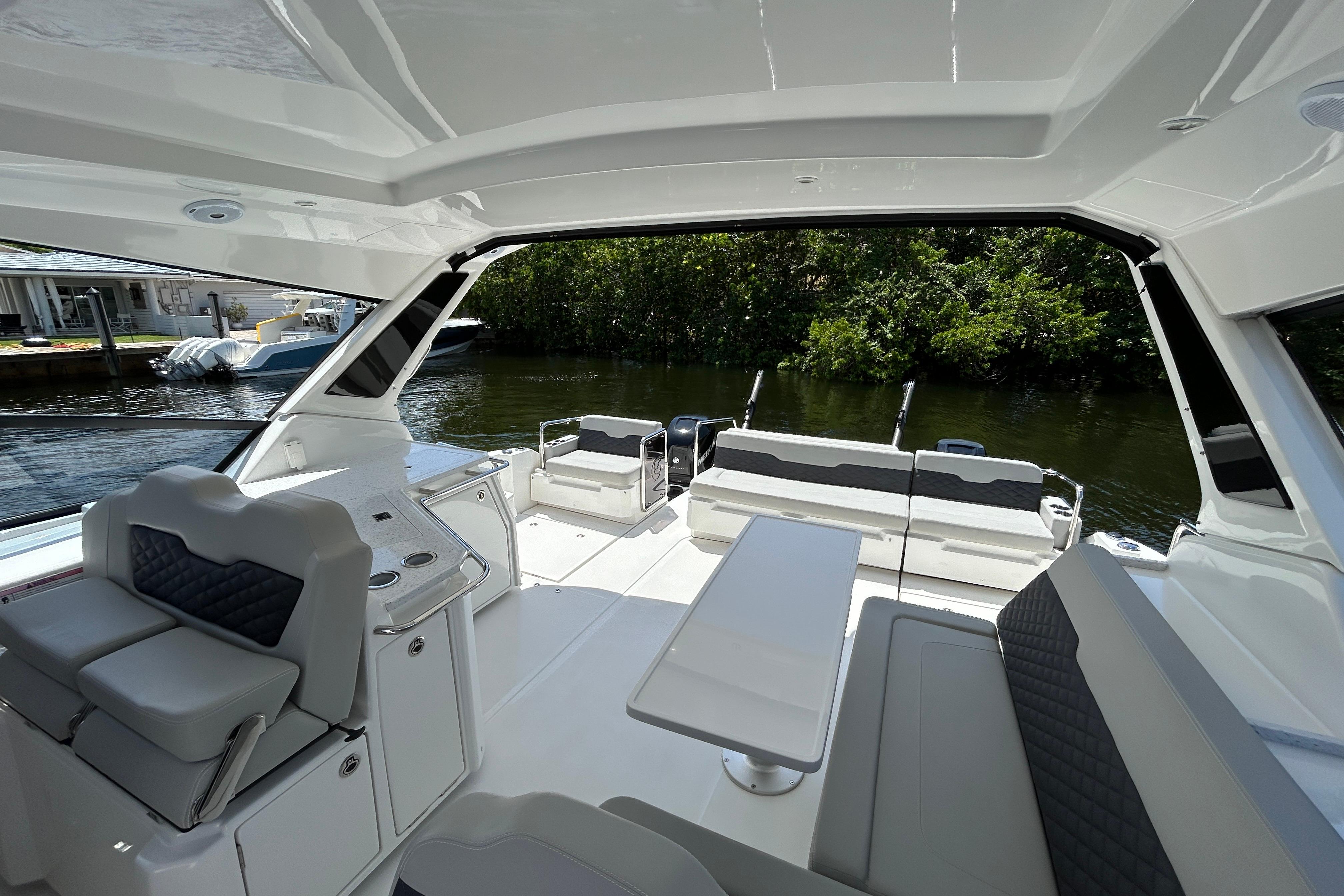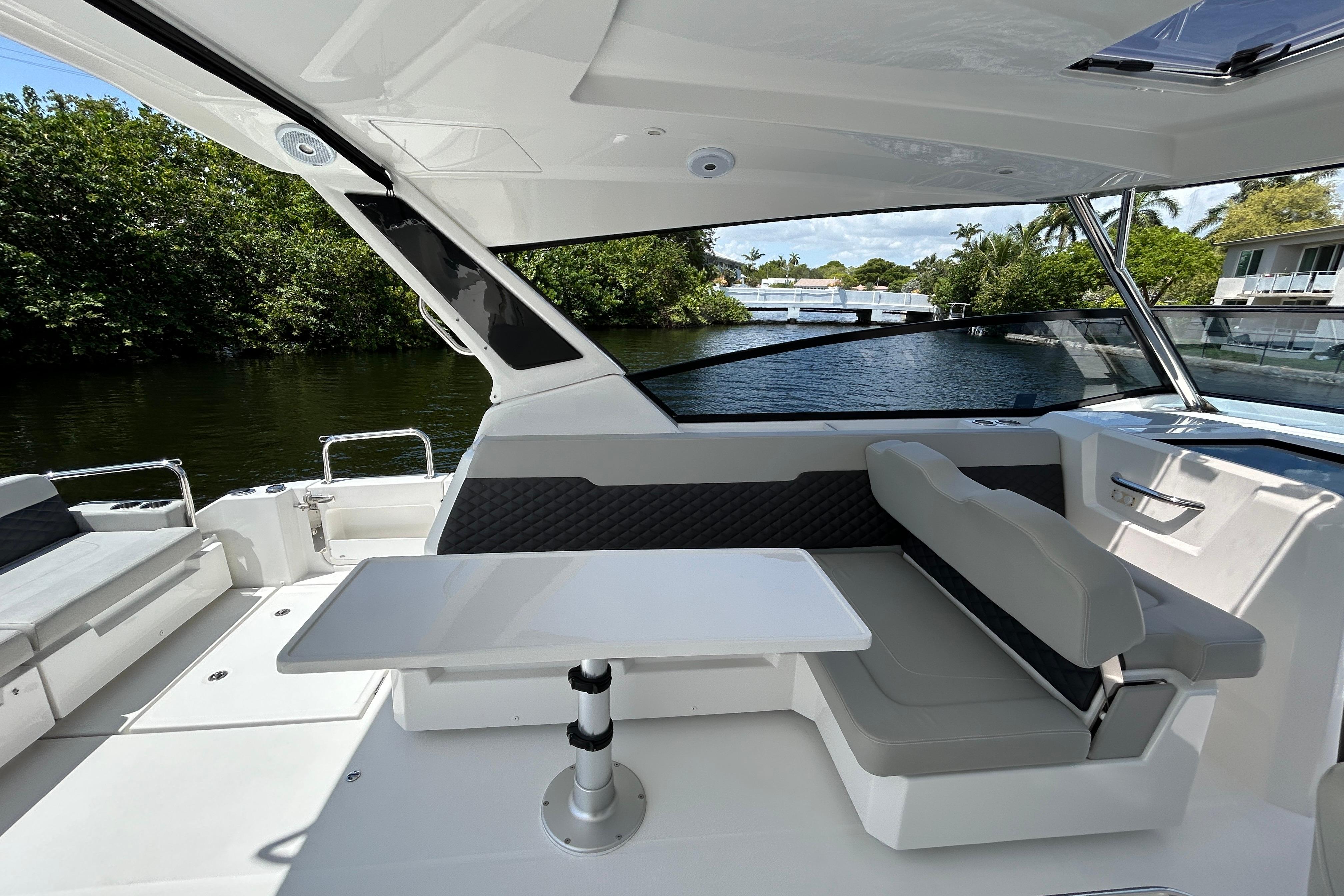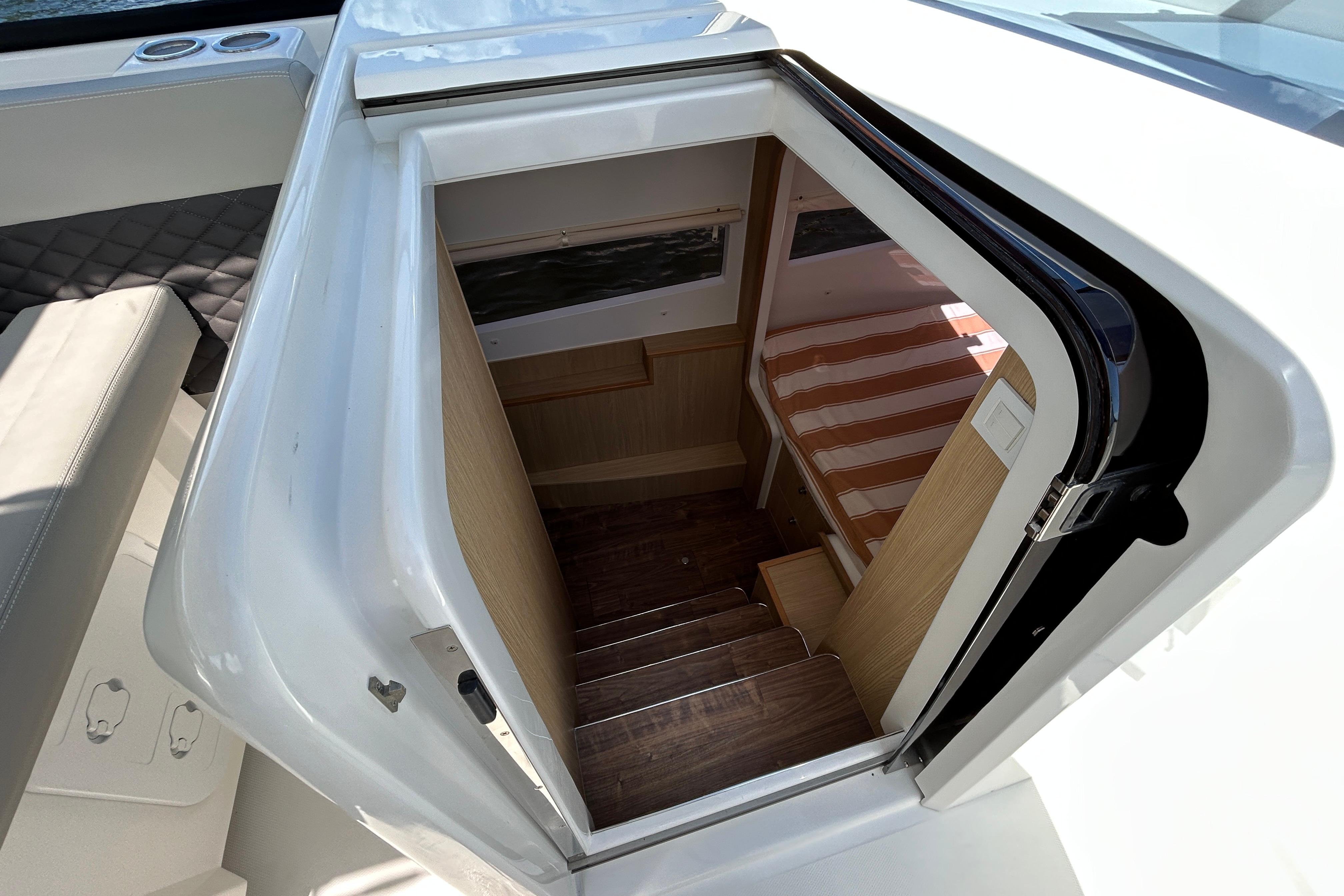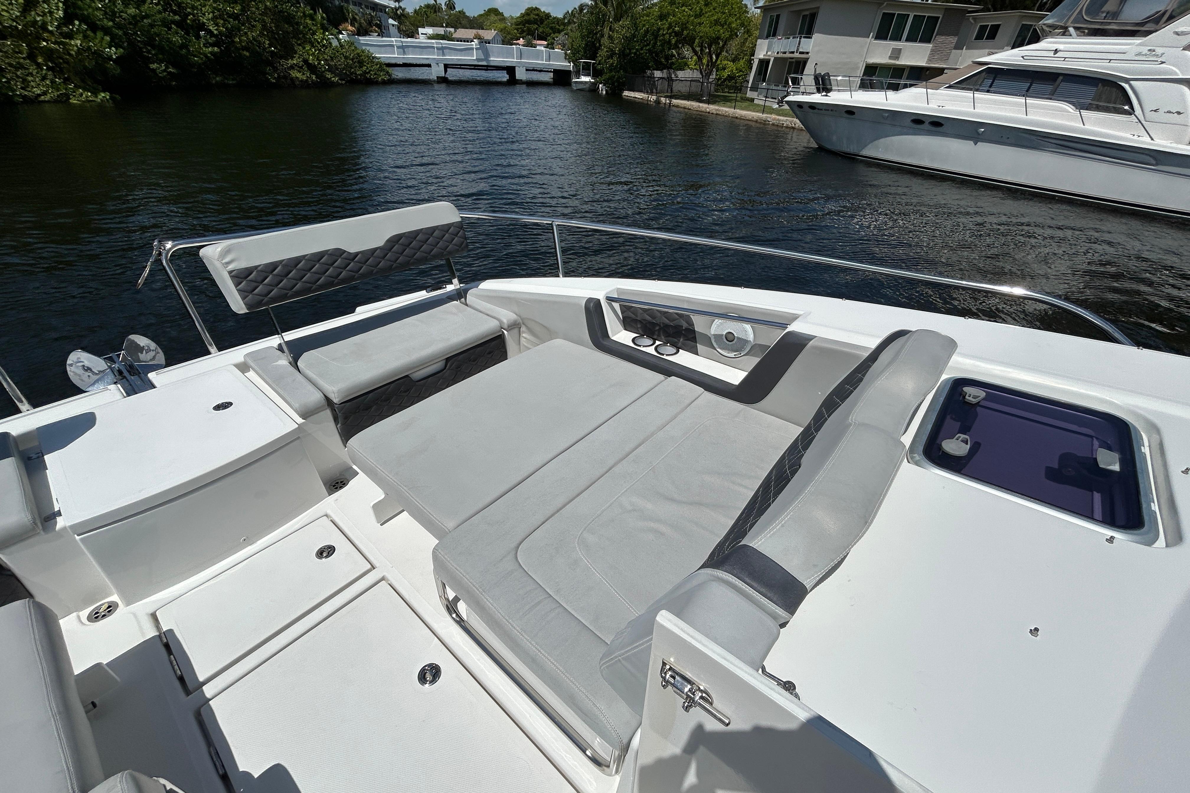 This is the ultimate power catamaran for hosting your friends and family out on the water. With a 14'1" beam, this boat provides seating and comfort for 20 people. The two cabins port and starboard offer space to sleep 4 and two heads with shower. Do not miss your chance on this Aquila 36 Sport!