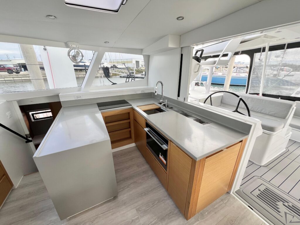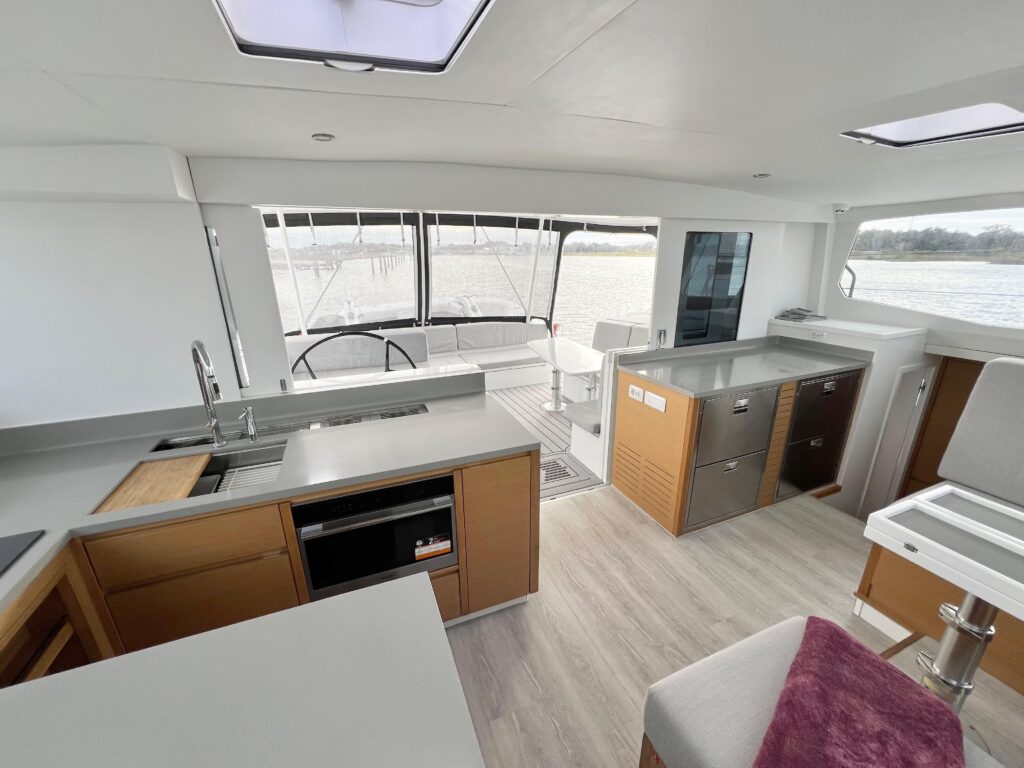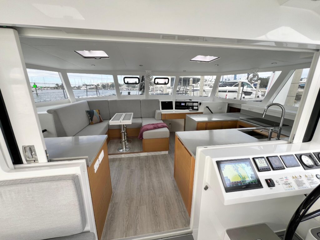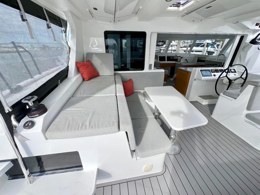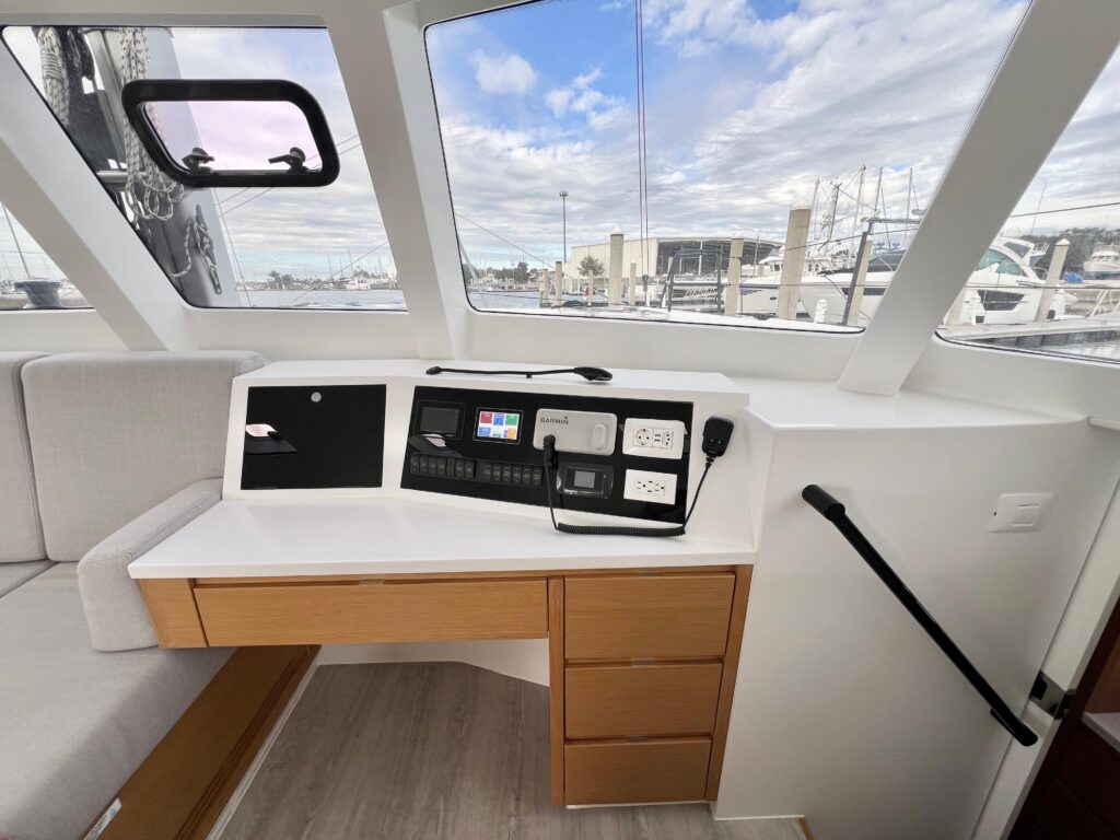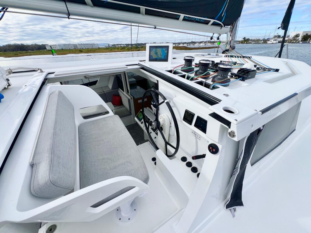 Kiwa is a pleasure to move about on whether sailing alone or entertaining friends and family. Her ample payload capacity means there is a place to store everything on the 442. Seating and lounge areas are strategically located throughout the cockpit and accommodation areas to ensure a fantastic hosting platform. With the innovative Balance VersaHelm – the helm station swings up and down with ease which revolutionized all weather sailing. You can pilot her up top in the sunshine and breeze or swing the helm down for full foul weather protection in the comfort of the cockpit – both positions offer 360 degree visibility and comfortable seating.