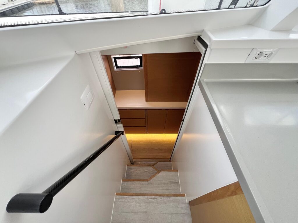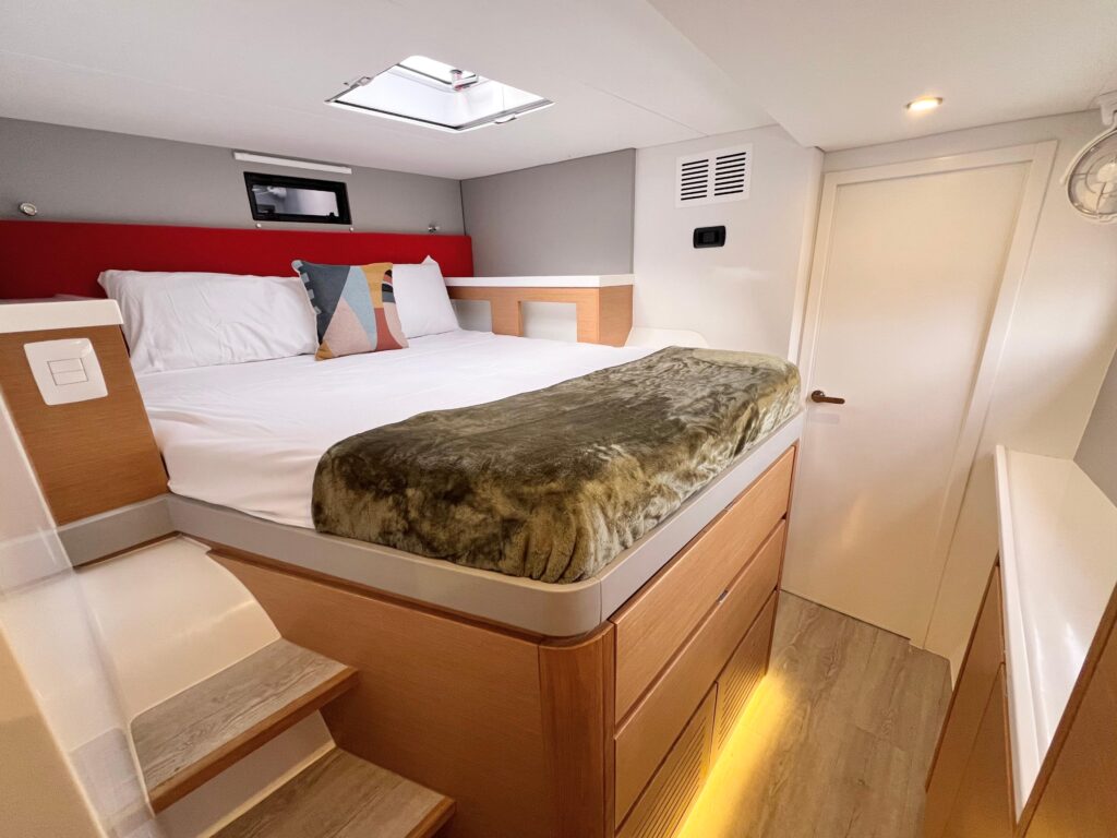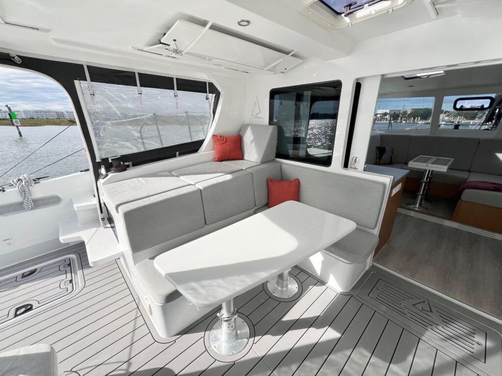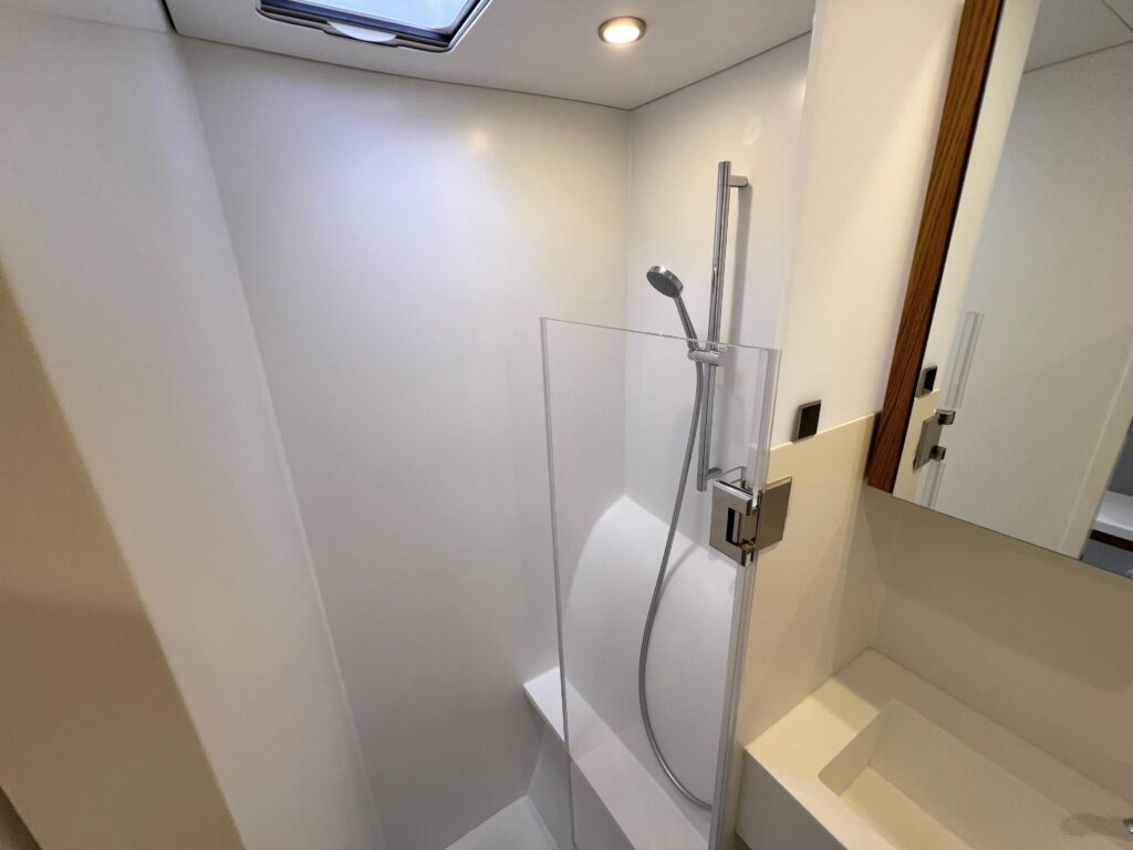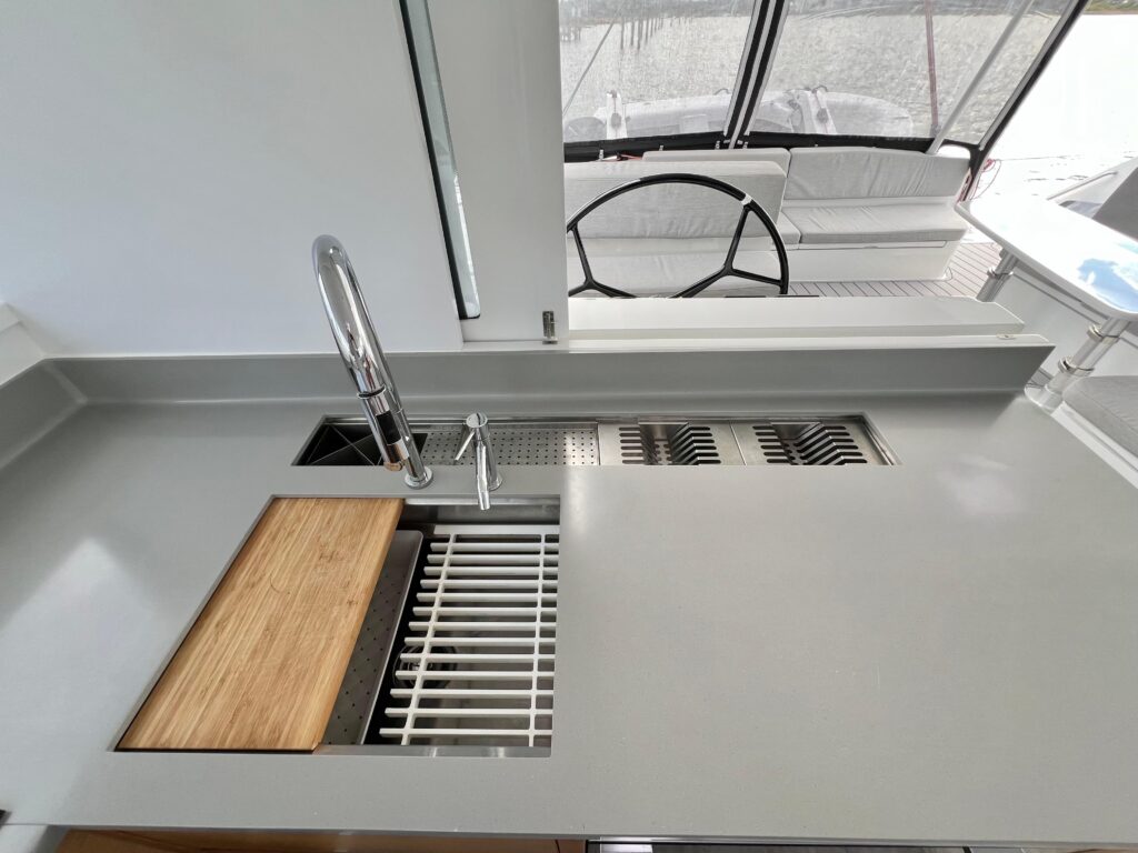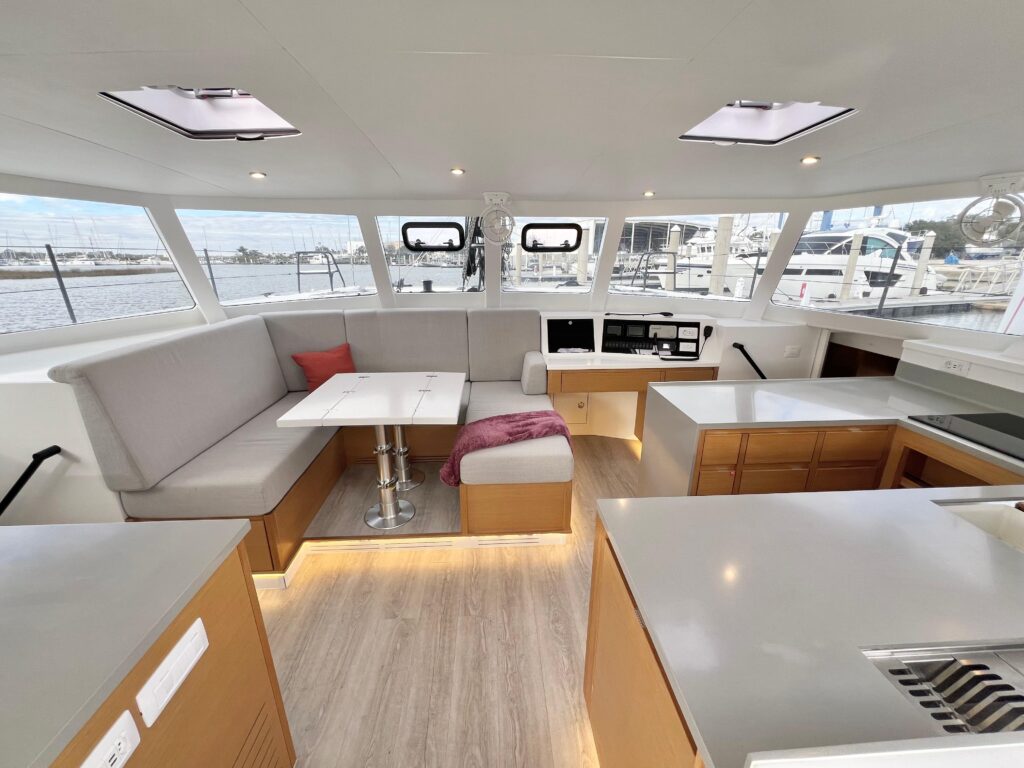 Kiwa is a pleasure to move about on whether sailing alone or entertaining friends and family. Her ample payload capacity means there is a place to store everything on the 442. Seating and lounge areas are strategically located throughout the cockpit and accommodation areas to ensure a fantastic hosting platform. With the innovative Balance VersaHelm – the helm station swings up and down with ease which revolutionized all weather sailing. You can pilot her up top in the sunshine and breeze or swing the helm down for full foul weather protection in the comfort of the cockpit – both positions offer 360 degree visibility and comfortable seating.