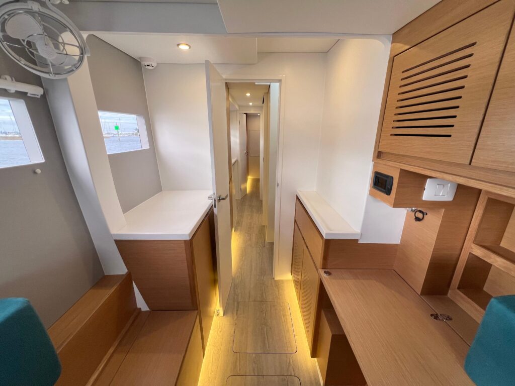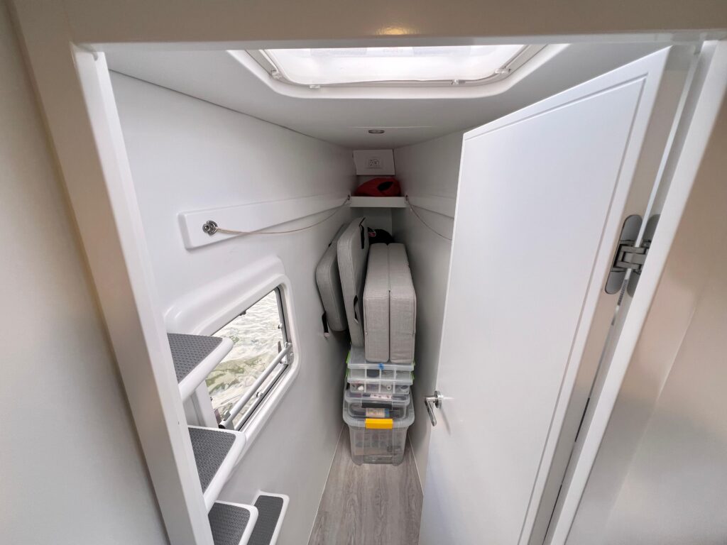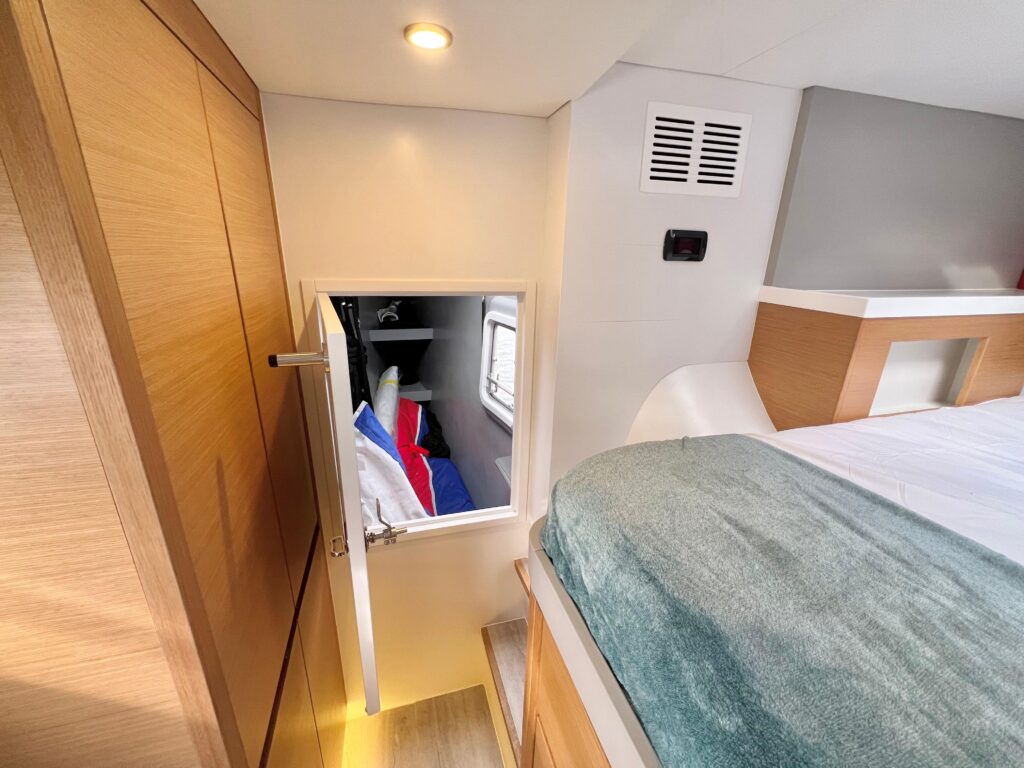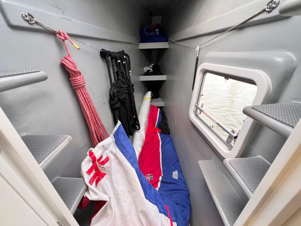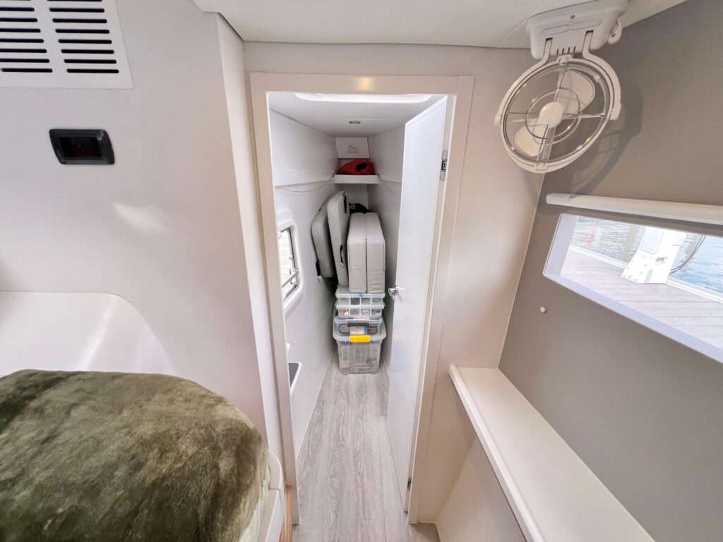 • Forepeak locker shelving and hard spots for attachment of hanging rails custom organizers