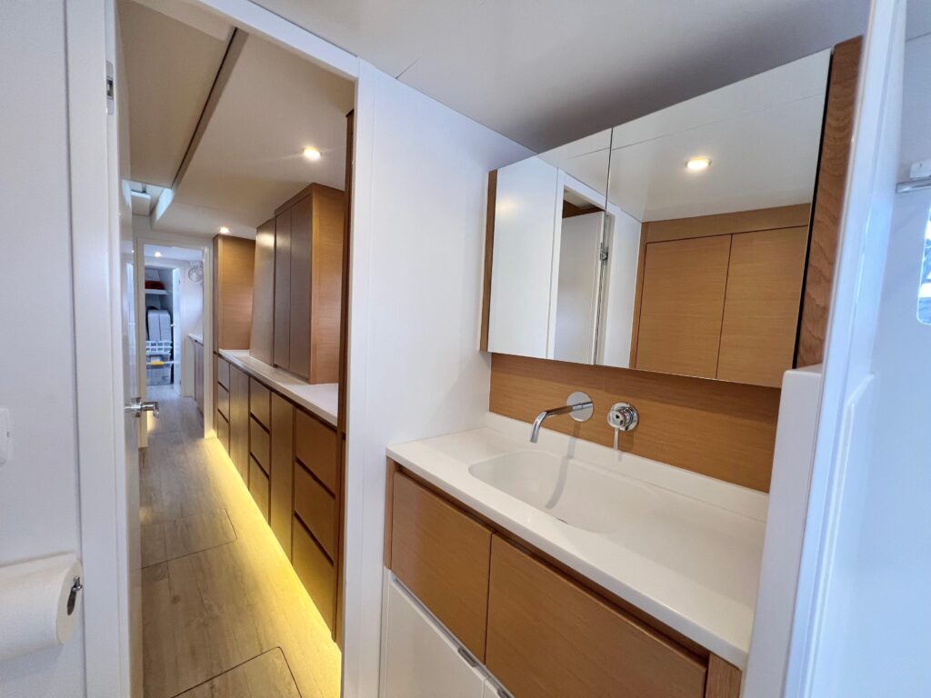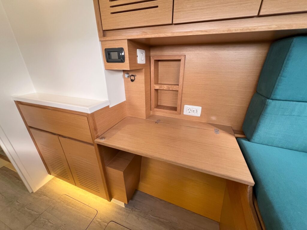 Kiwa is the ideal balance of both comfort at anchor and performance underway. With her 3-Cabin Owner Version configuration, the Balance 442 easily accommodates six people in 3 Queen-sized berths. Kiwa features the desirable convertible aft cabin / office, a large U-shaped galley, and real American Oak hand-crafted cabinetry.
