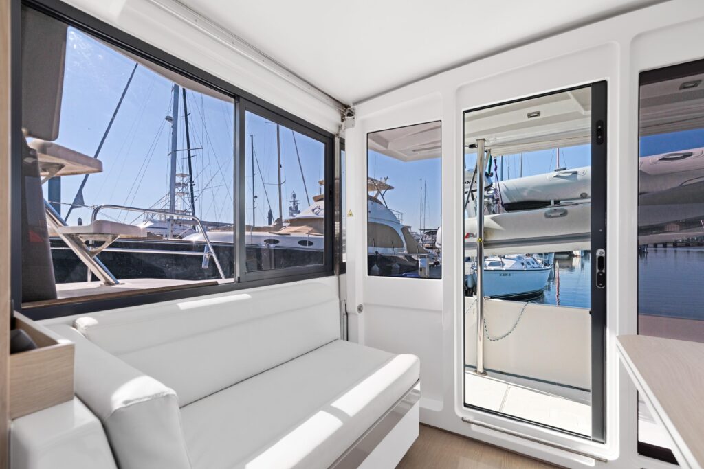 Large Pivoting bay door that combines the cockpit and salon into one large space