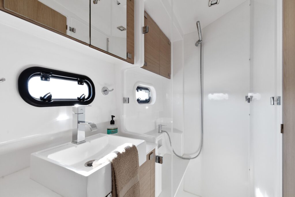 Step onboard "Chasing Shimmer," an incredibly maintained Bali 4.0 Owner's Version. As a 3-cabin / 2-head layout, this boat is perfect for the cruising couple or family looking to be connected to nature in a spacious hull layout that provides seamless handling. Attention towards luxurious living was paramount in the design of the Bali 4.0. The rigid foredeck and recessed cockpit offer a wonderful communal outdoor space while the Bali traademark salon/cockpit door opens us the salon to become a large indoor/outdoor space. A full size Vitrifrigo fridge, ENO oven and stovetop, and large Corian countertops provide incredible space onboard for cooking and entertaining.