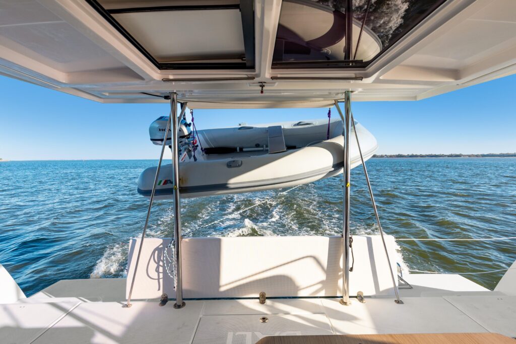 Folding transom platform (for easy embark/disembarkation of the dinghy)