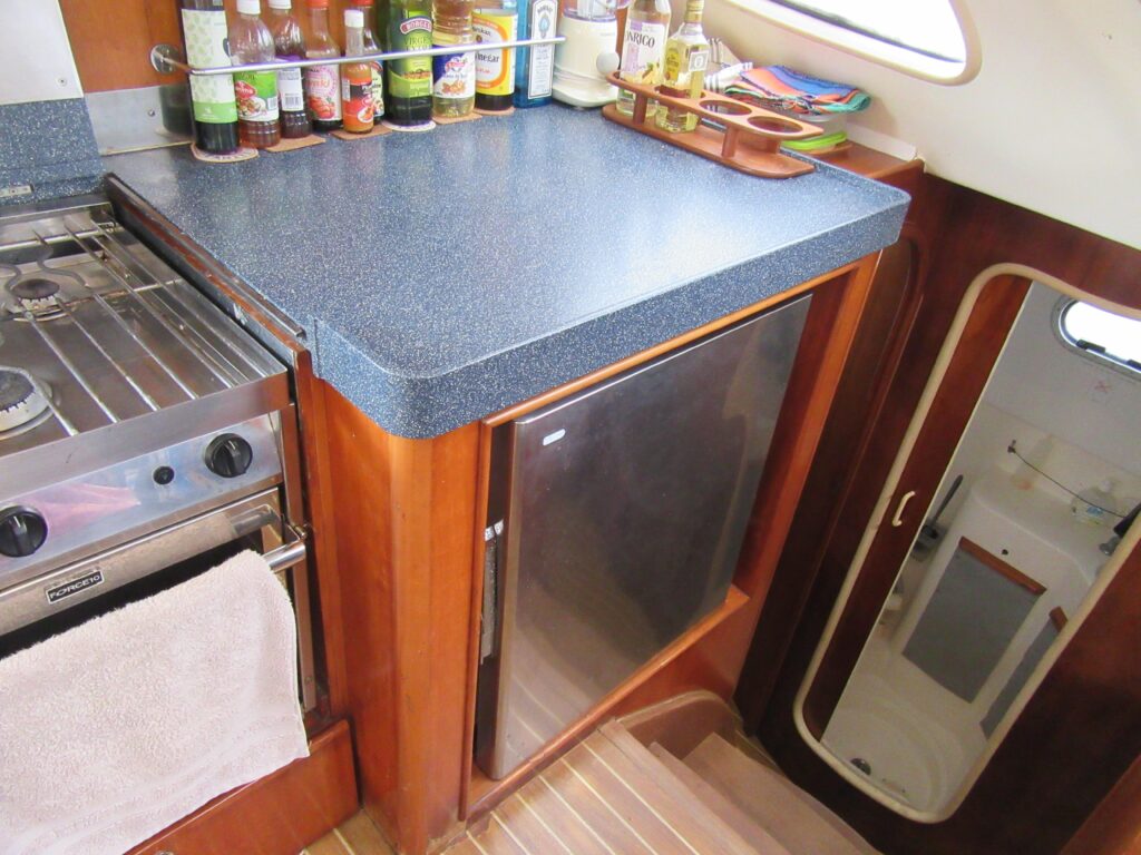 TAO is equipped for long distance voyaging with a large 72 m2 dacron mainsail and 3 headsails including furling genoa, furling screecher and spinnaker. All of the standing rigging was just replaced in August 2023 (new shrouds, diamonds and headstay). Her onboard amenities are powered by 1000 watts of solar, a 3.5 Mastervolt generator and high-output engine alternators. Amenities includea dual power AC/DC water-maker, washer/dryer, a very large 200L fridge and 100L freezer.