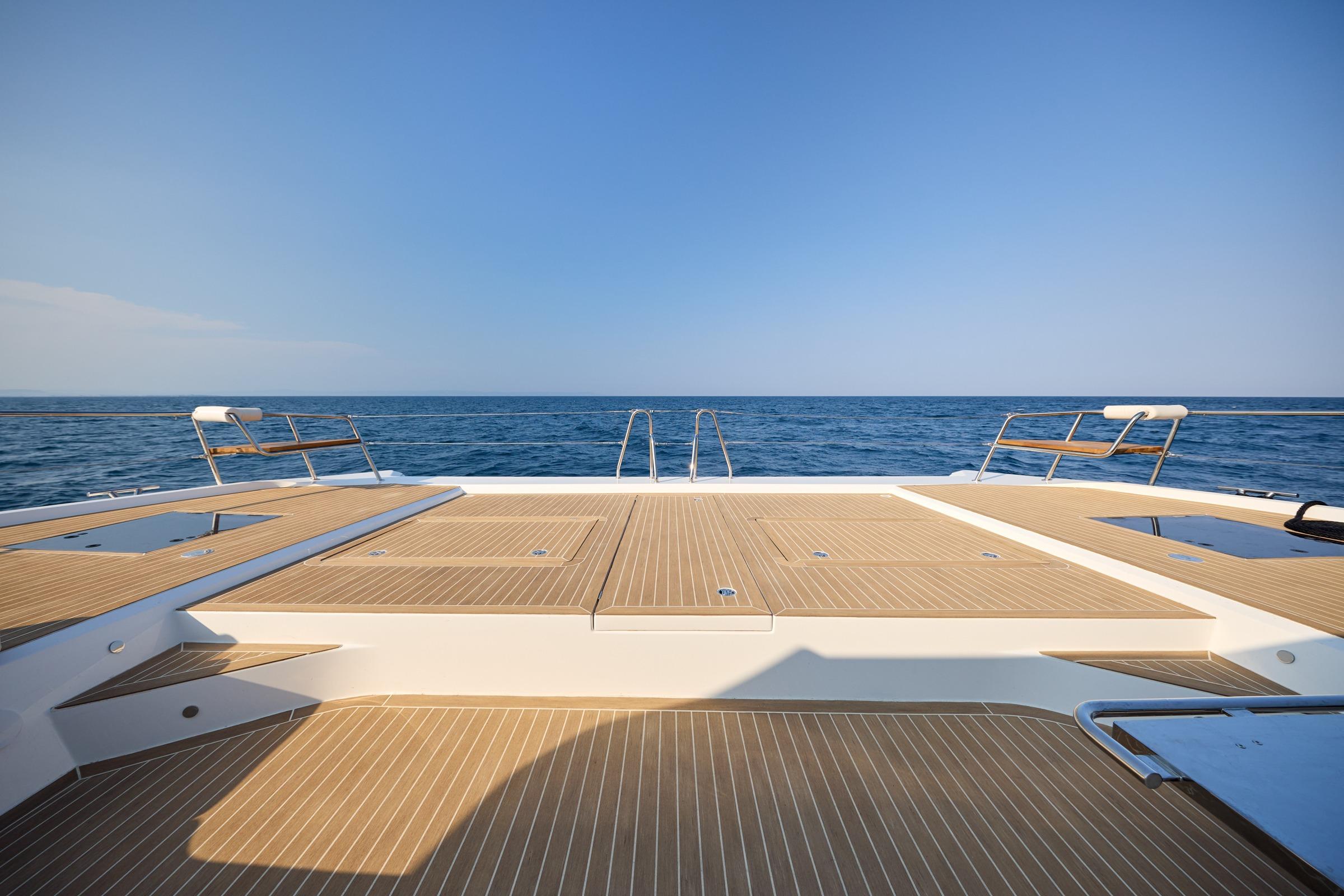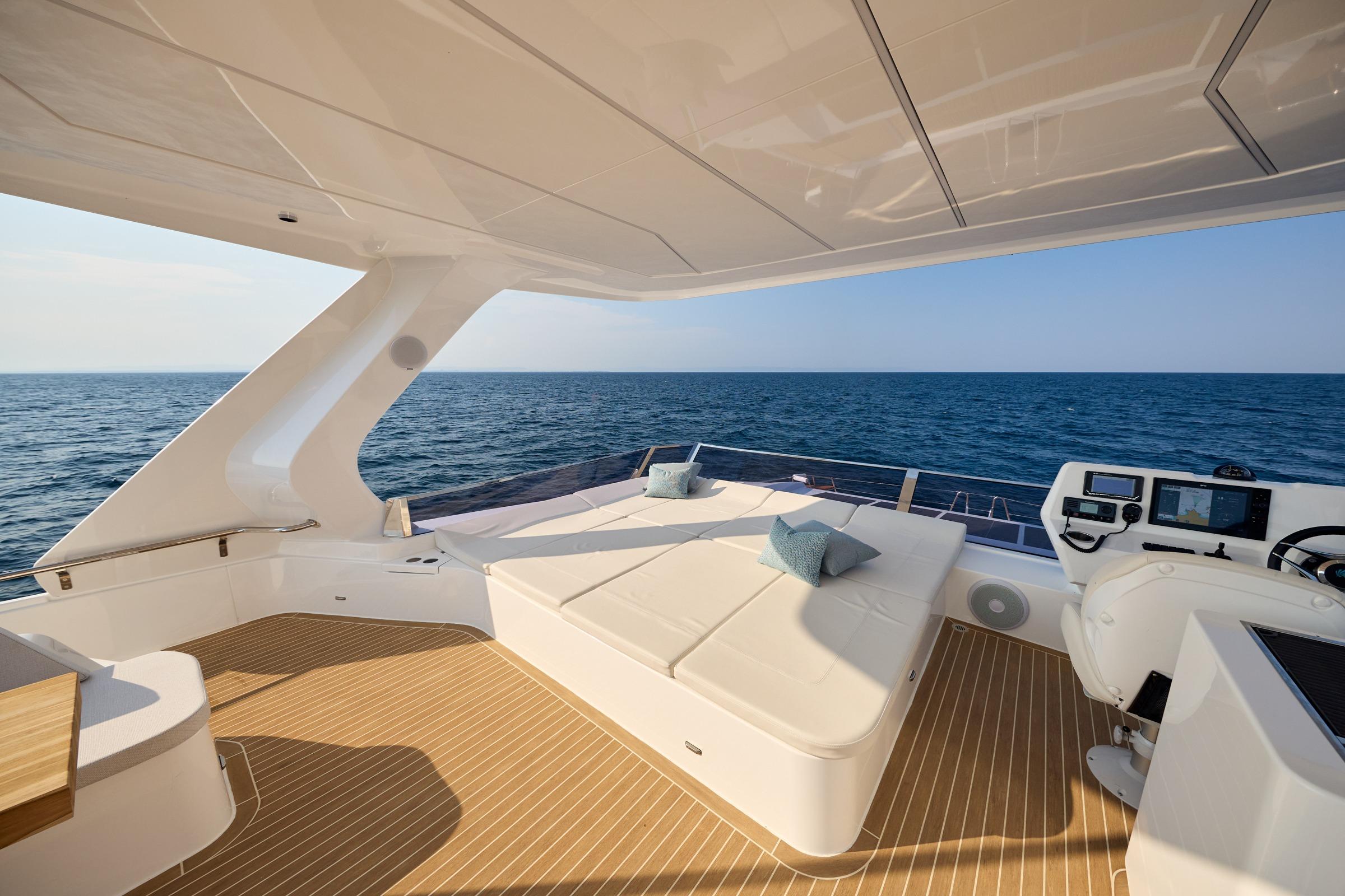 The bow area of the OMAYA 50 is a very special place. Due to the yachts large beam and clever customer focused layout, this is a great space to spend lazy days soaking up the sun and having the best of time entertaining with friends. From the generous and comfortable seating areas, the large sunbeds, and open deck space, this is yet another reason OMAYA is so appealing. Practicality is very important. OMAYA has designed a direct access door to the bow area, which makes access to the bow much easier and safer. All these features combined make the OMAYA 50 such a great place to be for holidays or longer term living aboard.
