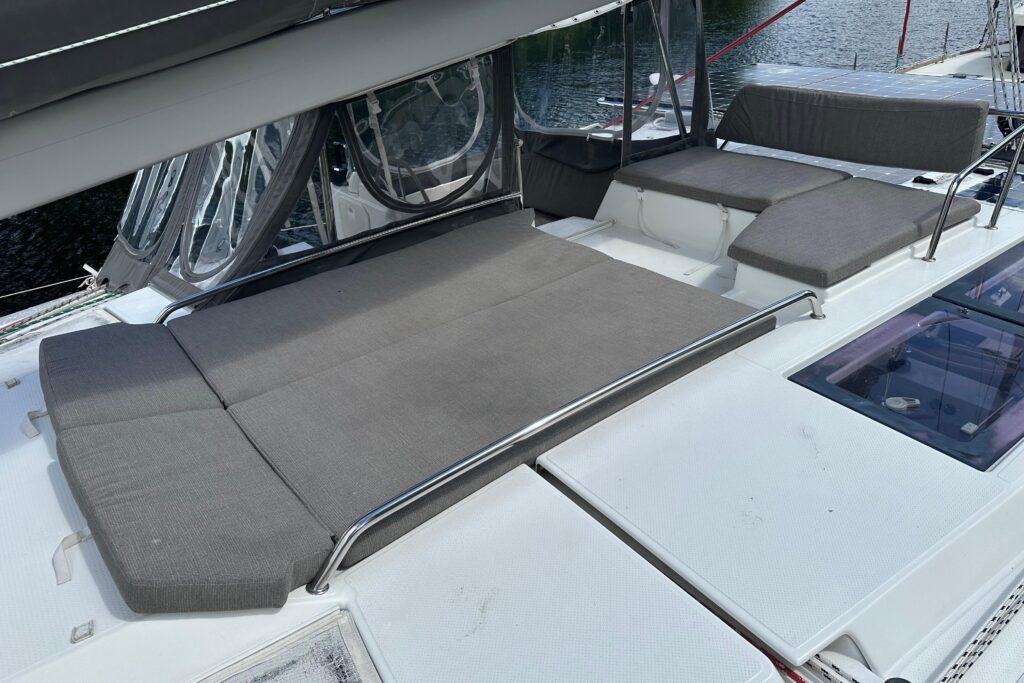 This Helia is an absolute pleasure to sail, with all lines leading back to the helm (ideal for singlehanding), which in this case has a custom hardtop and full enclosure, allowing for comfortable sailing in all weather conditions. The 3ft 8in draft is ideal for easy navigating and anchoring closer to the beach than many other catamarans of a similar size.