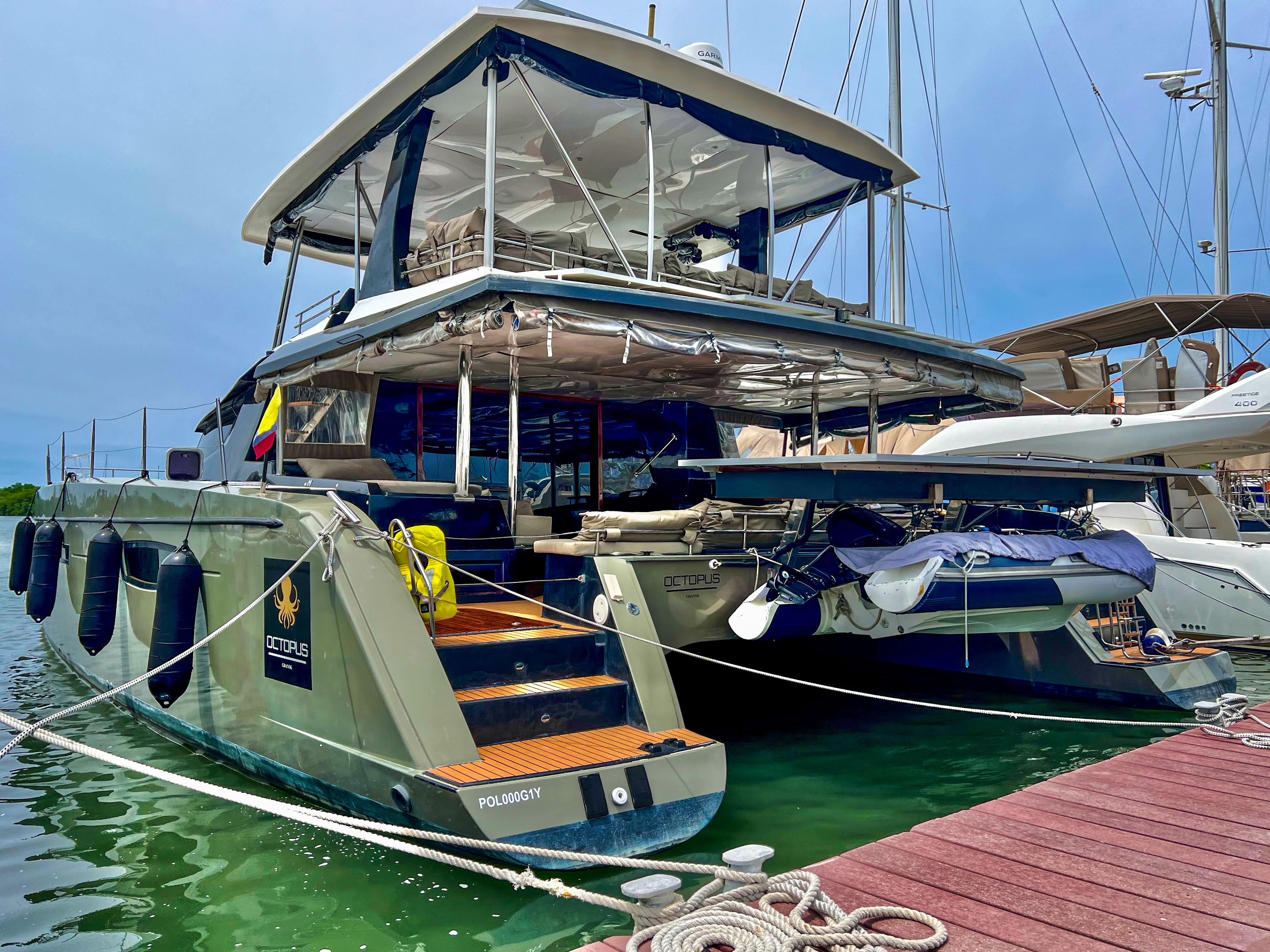 Octopus is a 6 Cabin Fountaine Pajot Ipanema catamaran that was converted to a Power Catamaran after the vessel was damaged in hurricane Irma. The boat features a brand new Northern Lights 6 KW Generator, 6650 W of Solar on 25 Panels, 2000W Giandel Inverter,12k BTUs of Aircon throughout, less than 1000 hours on her Yanmar Engines, new Aquatec Watermaker, and so much more.