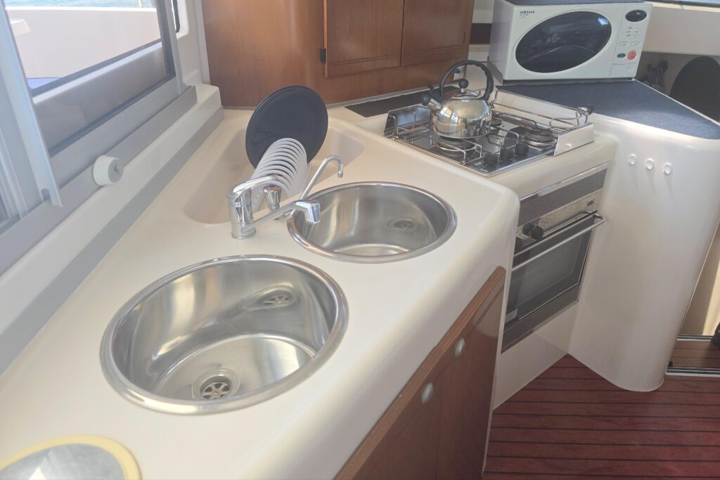 1. Fully equiped galley including coffee maker, mixer, water boiler etc., Everything you need. Too much to list