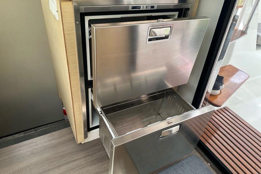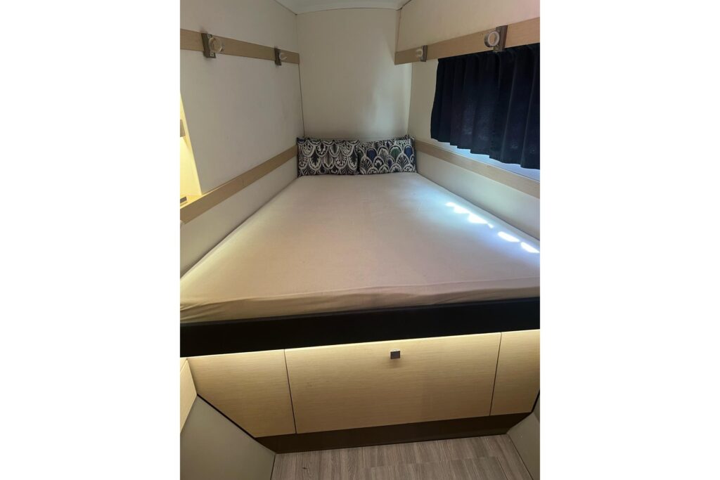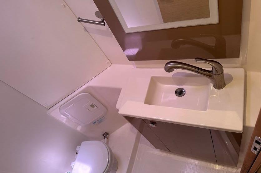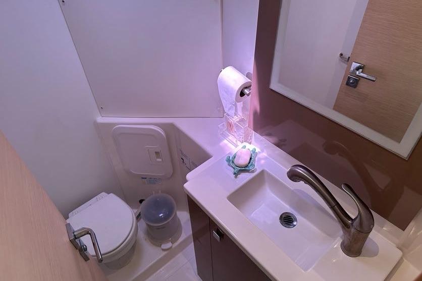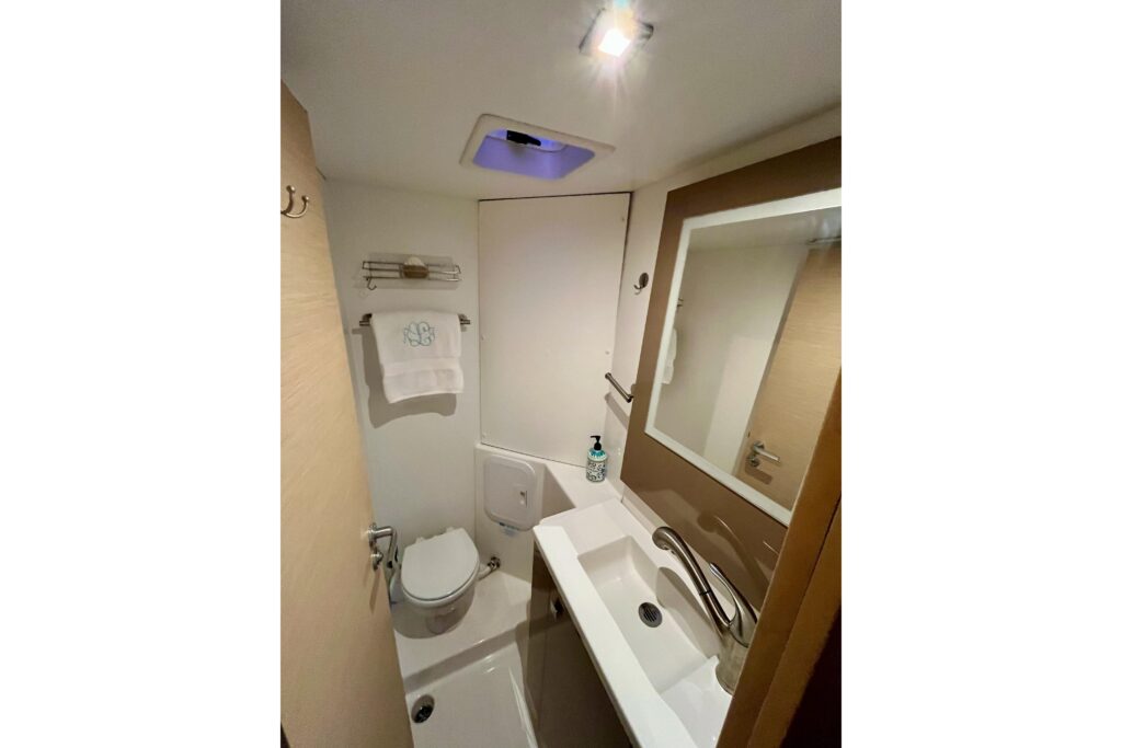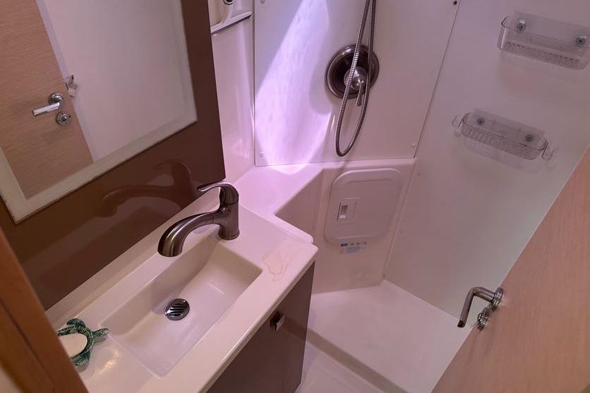 Uniquely enhanced from the standard 4-cabin, 4-head configuration, WaterLilly includes a custom walk-in shower in place of one head, offering an elevated onboard experience without sacrificing space to accommodate guests.