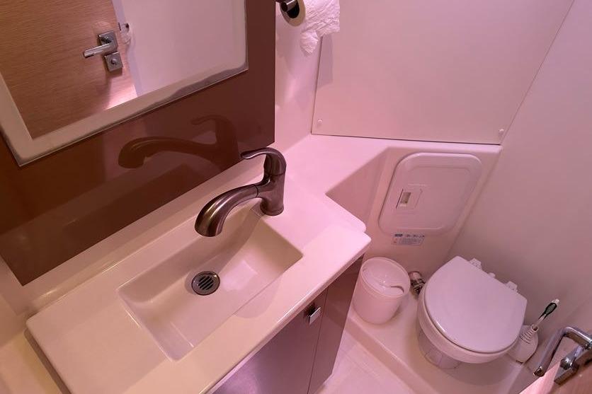 4th head (starboard forward) had the toilet removed, making it a large shower room)