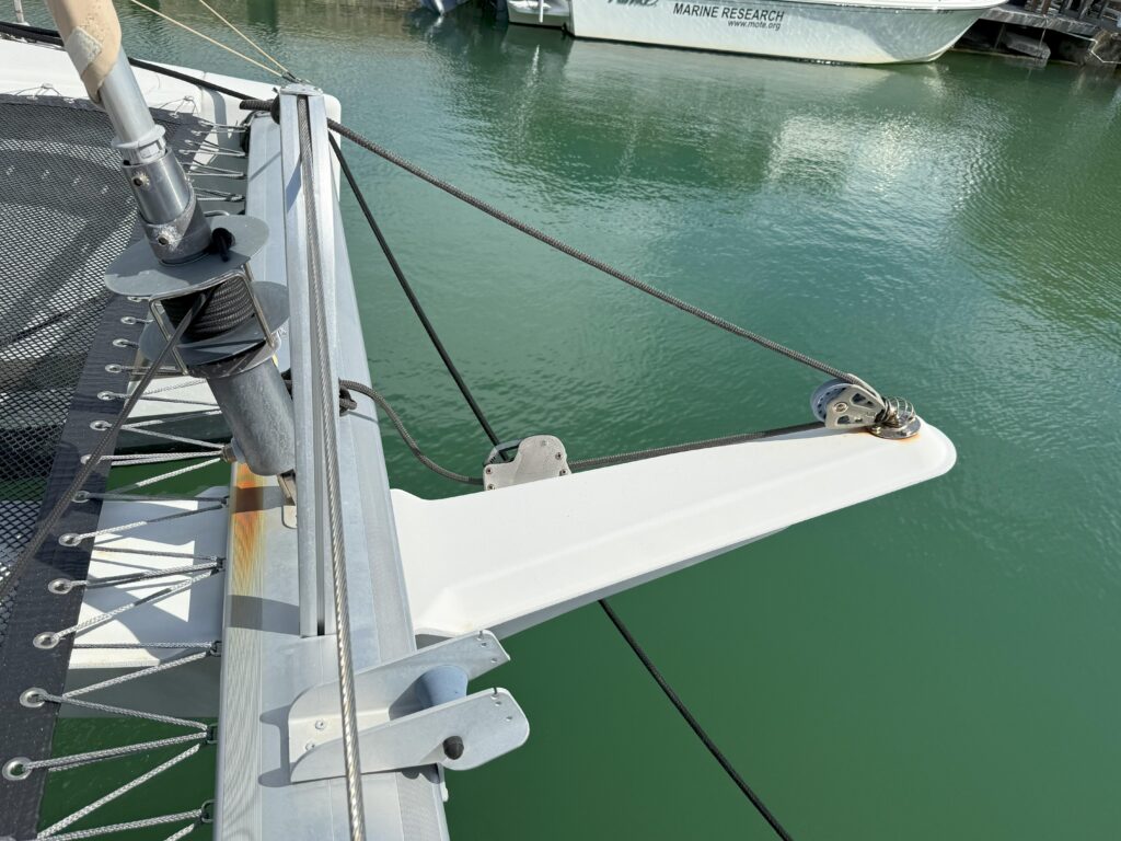 It is equipped with 2 low hour Volvo D1-30 engines paired with sail drives. It has a full quiver of sails with a full battened main, furling jib, furling gennaker and parasailor.
