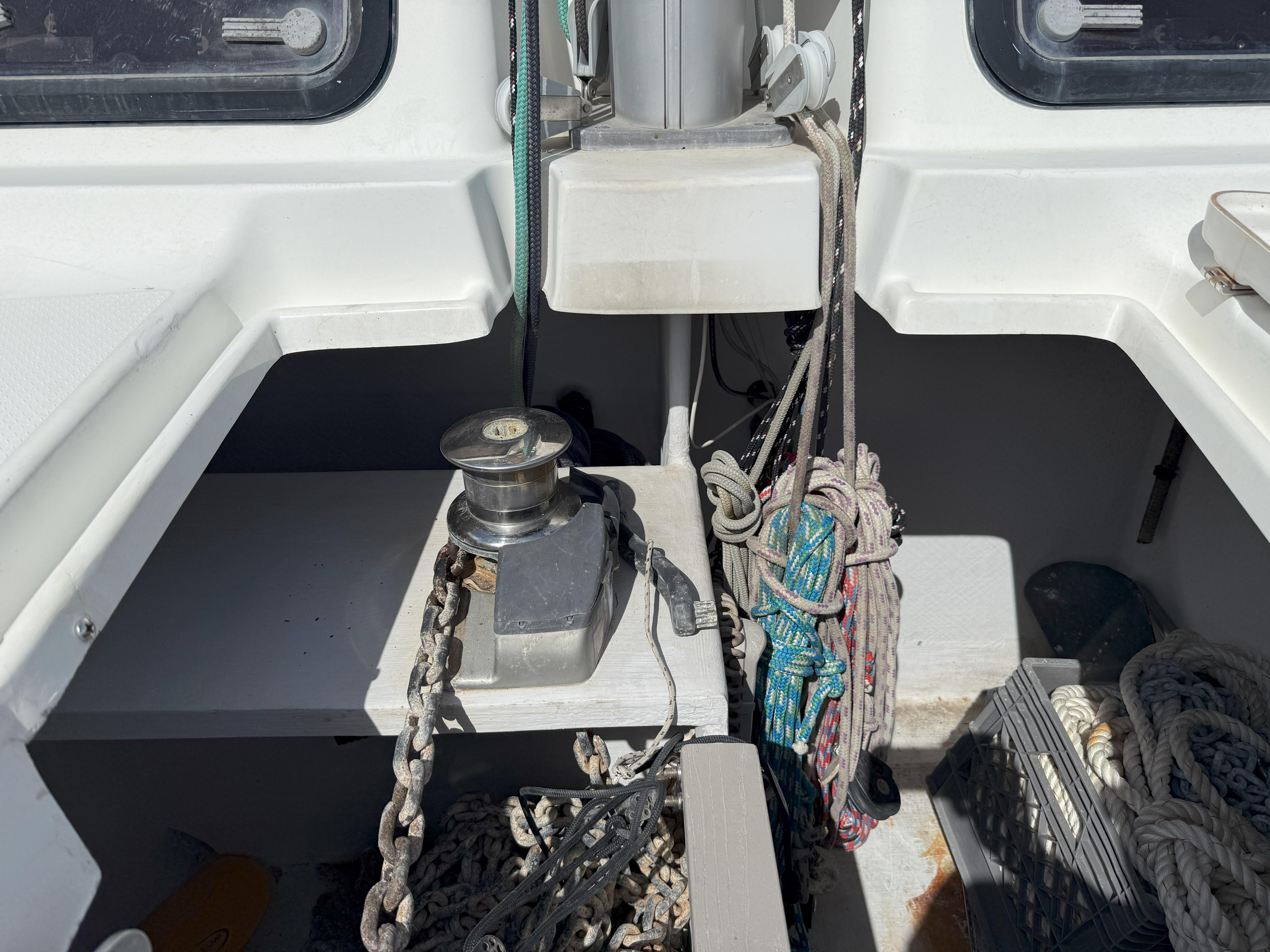 Most working lines lead to helm with electric winch