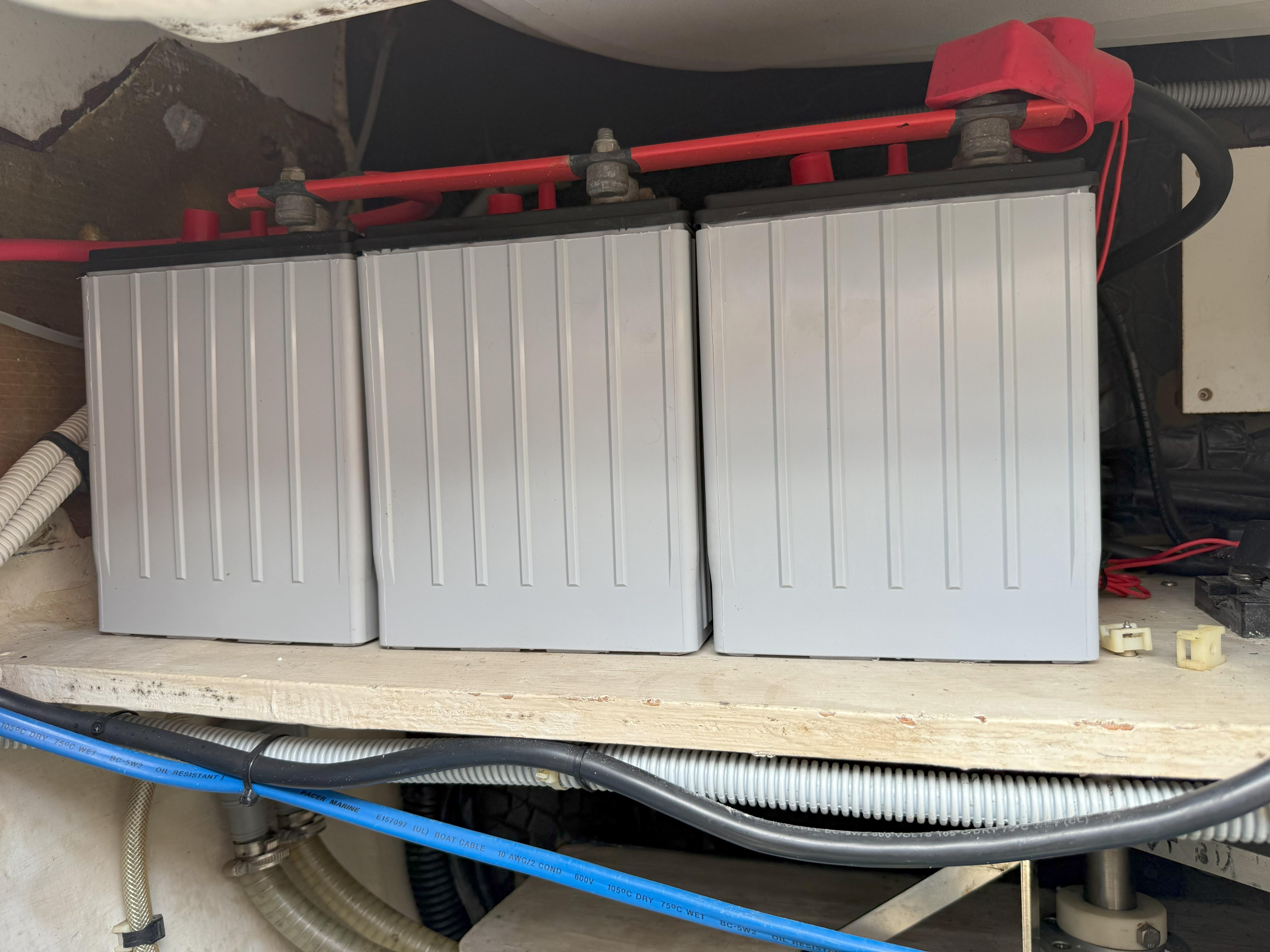 3 West Marine Group 31 AGM House Batter Bank. Each Battery is 105 amp hours.