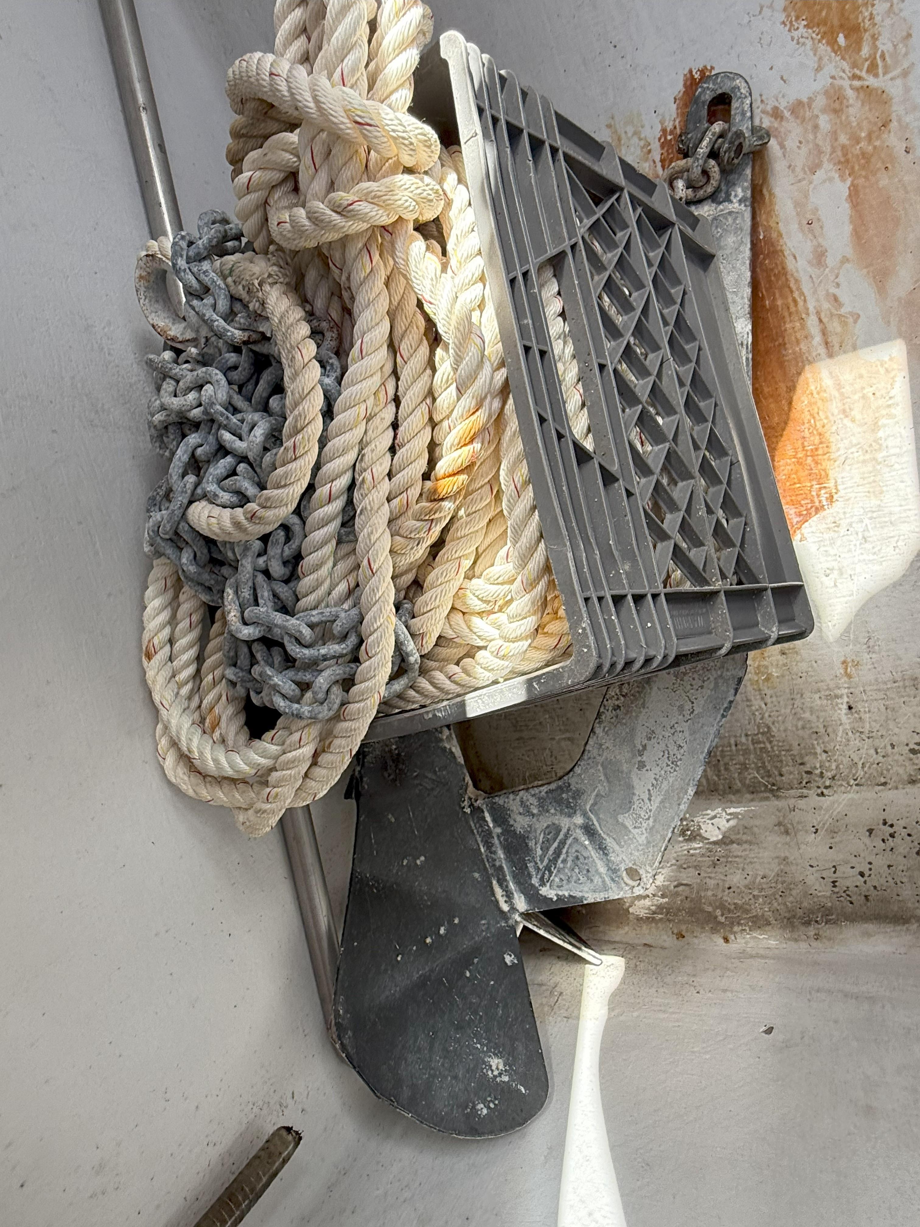 Delta 16 kg Secondary Anchor with 16 feet of chain and approximately 210 feet of rode.