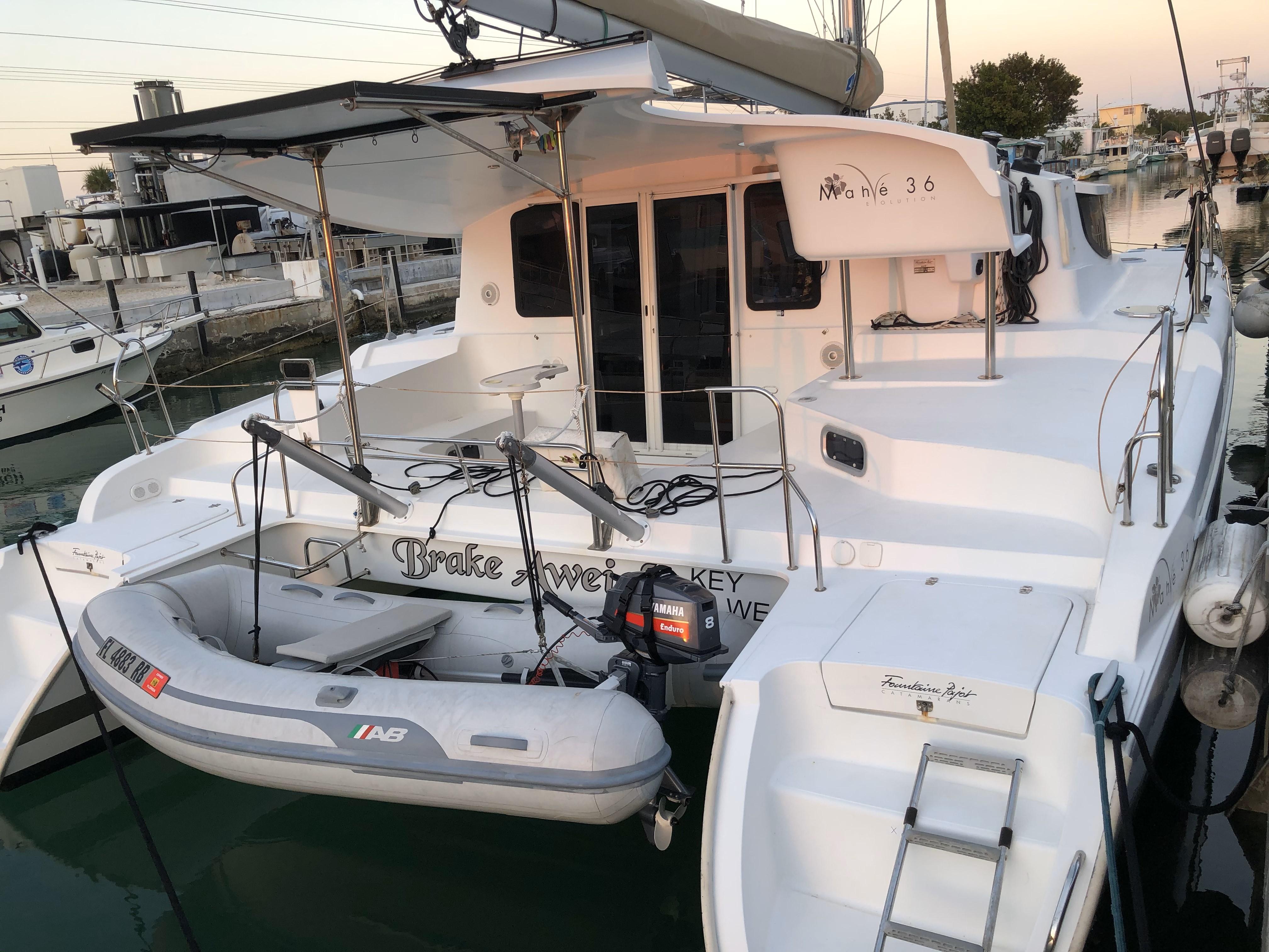 Brake Aweigh is a wonderful example of a 2014 Fountain Pajot Mahe 36 owner's version with the top Oceanique package. She is a single owner vessel with no charter history. This owner personally took delivery of her in La Rochelle and sailed her down the coast, crossed the Atlantic, cruised the Caribbean and sailed her to her home in Florida. She has cruised the Bahamas and participated several times in the Miami to Havana race, medaling 3 times. To date this boat has sailed 14,400 nm. This boat is a sailing machine!