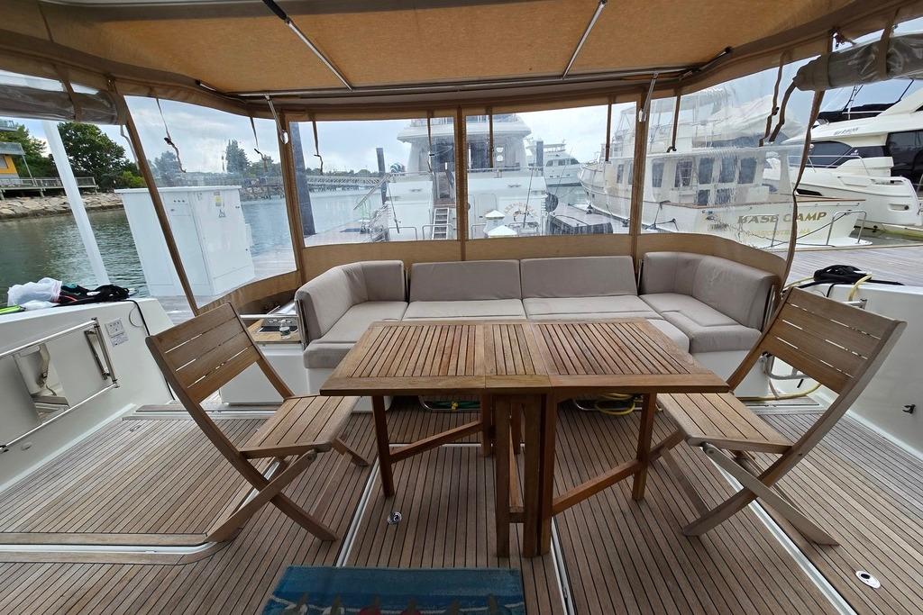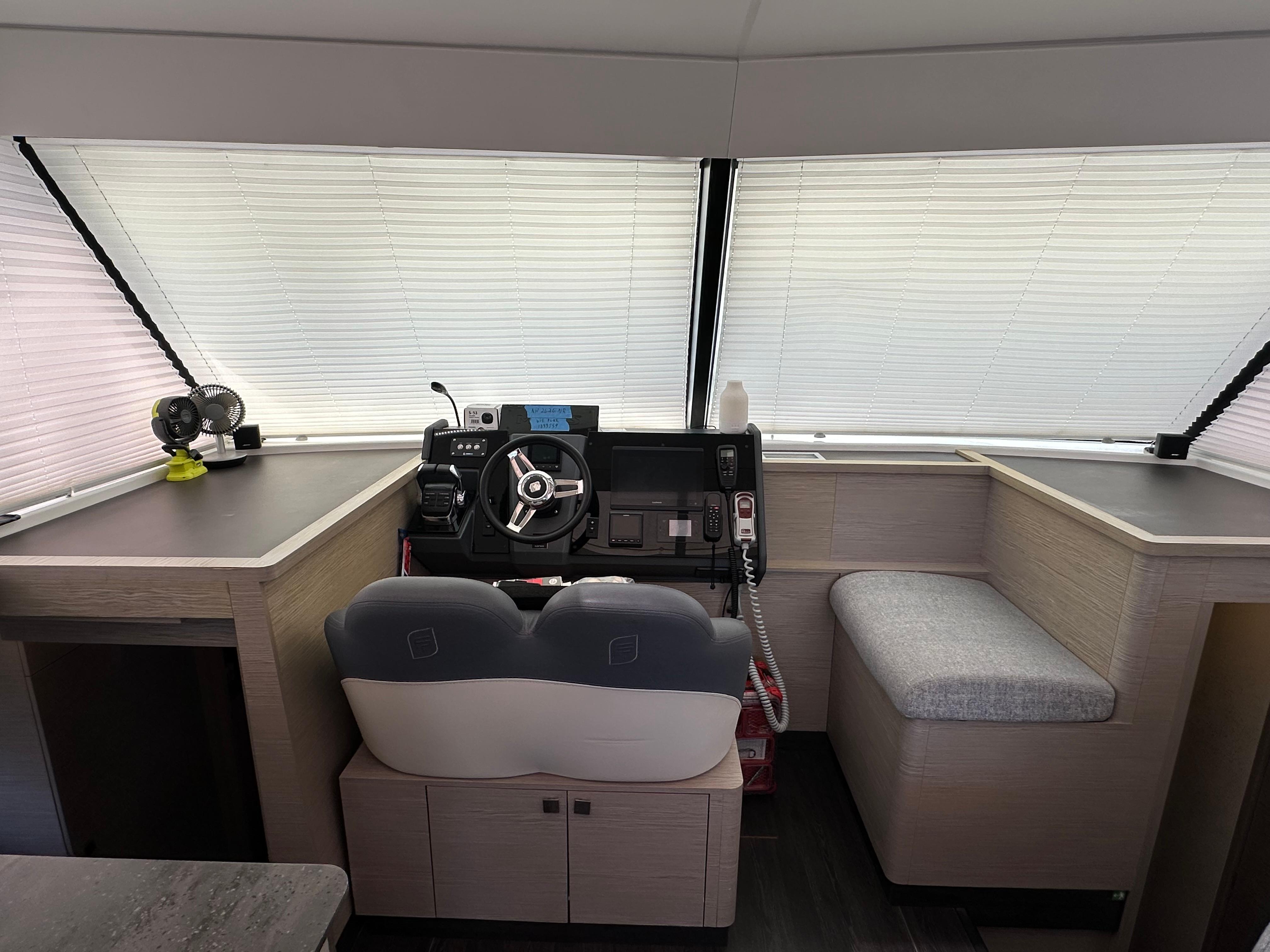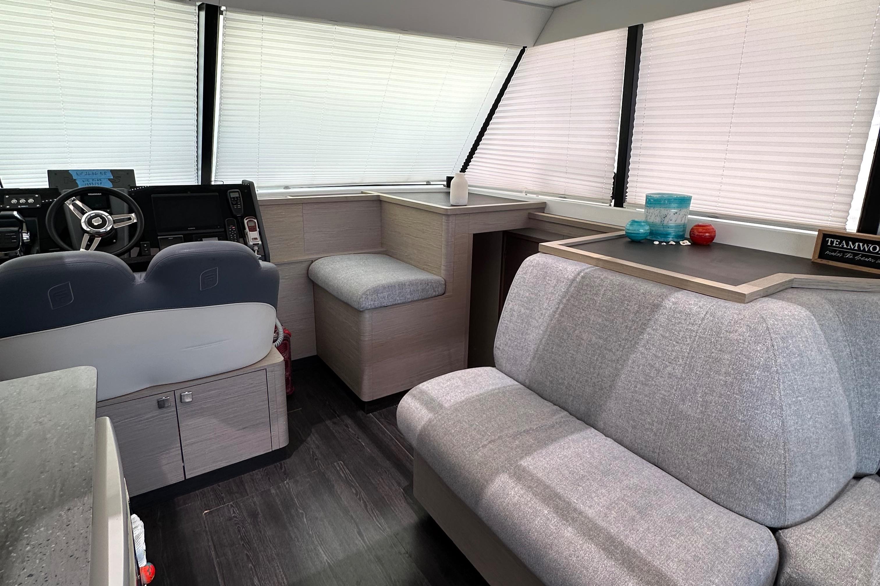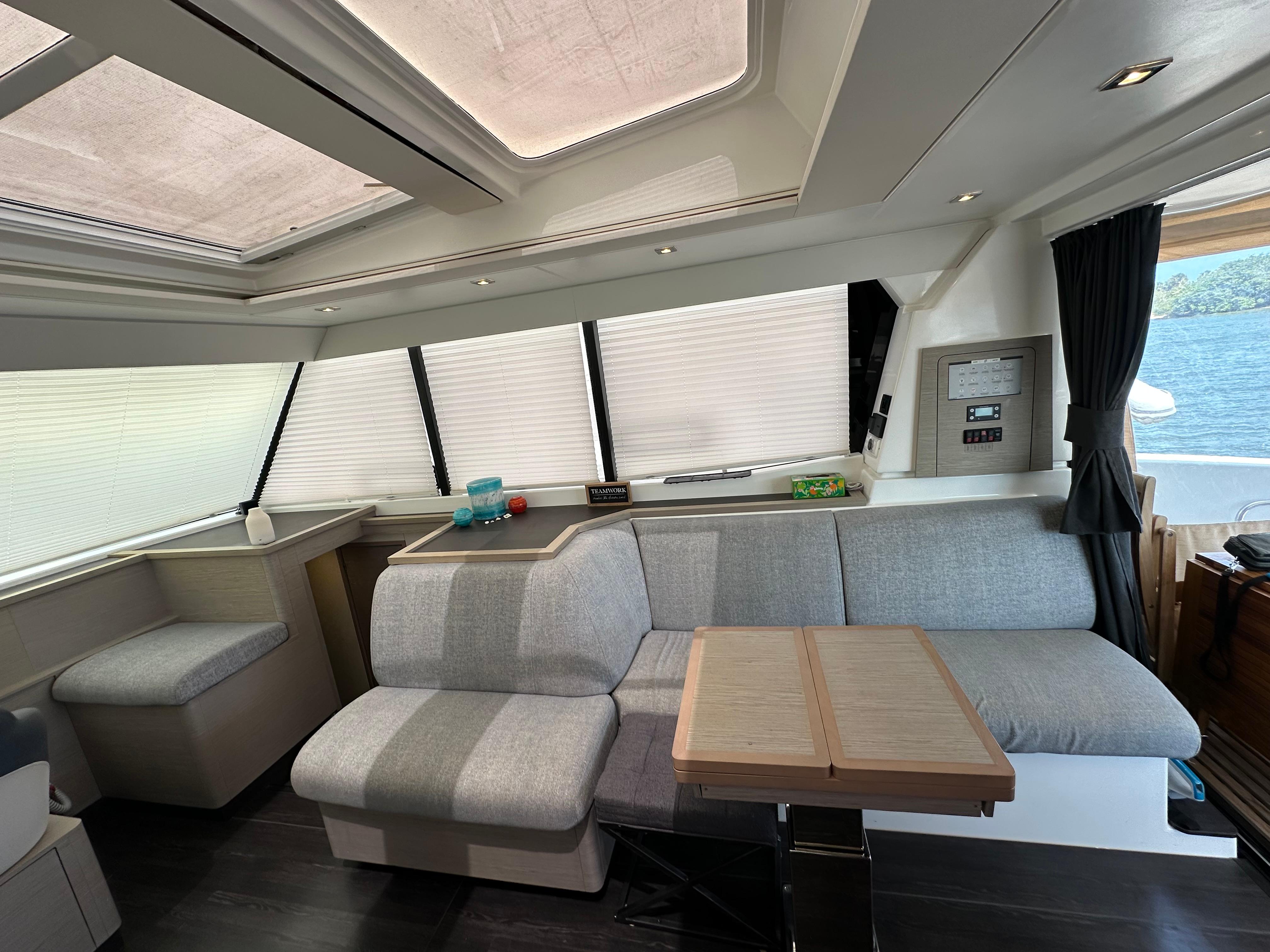 Her saloon and helm station are sheltered and well-lit, making for serene cruising.