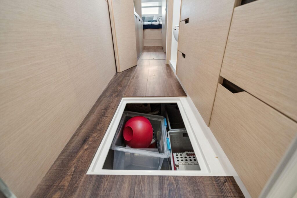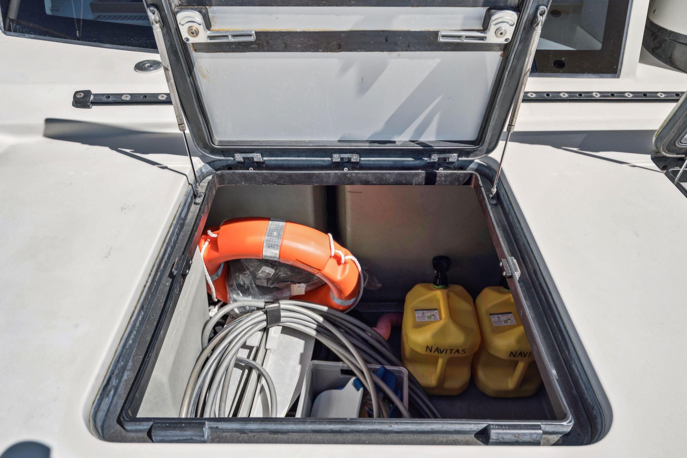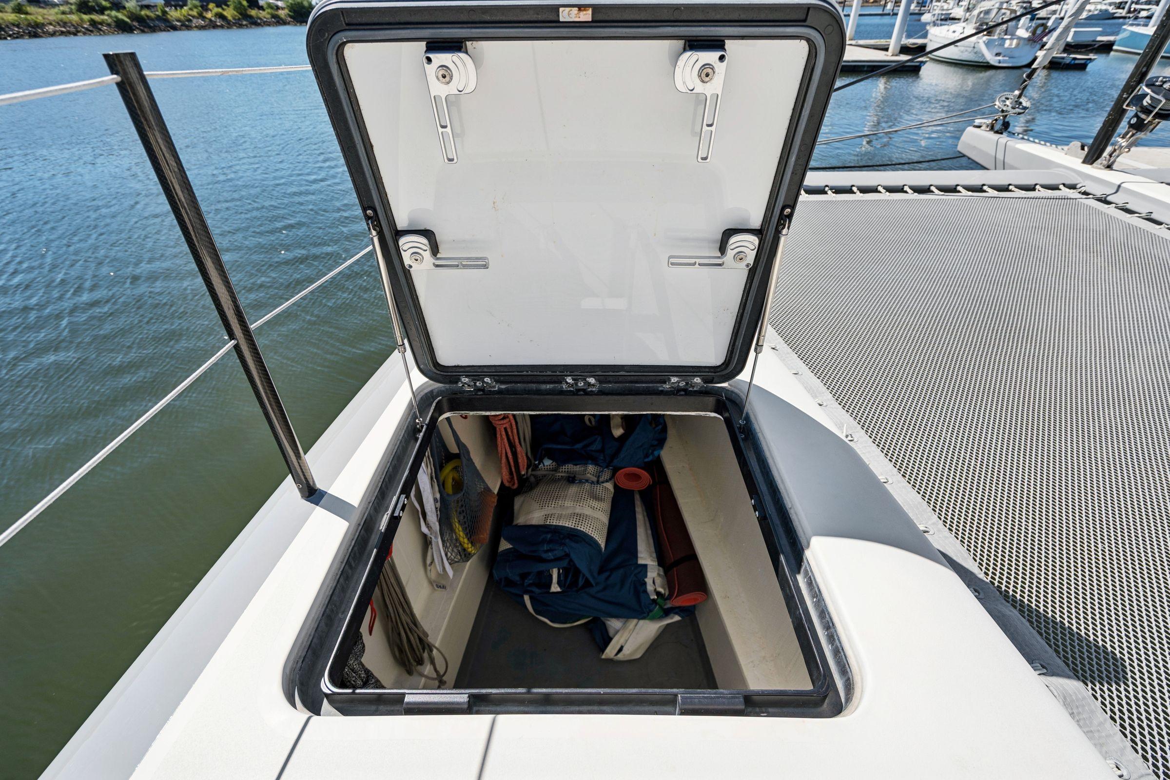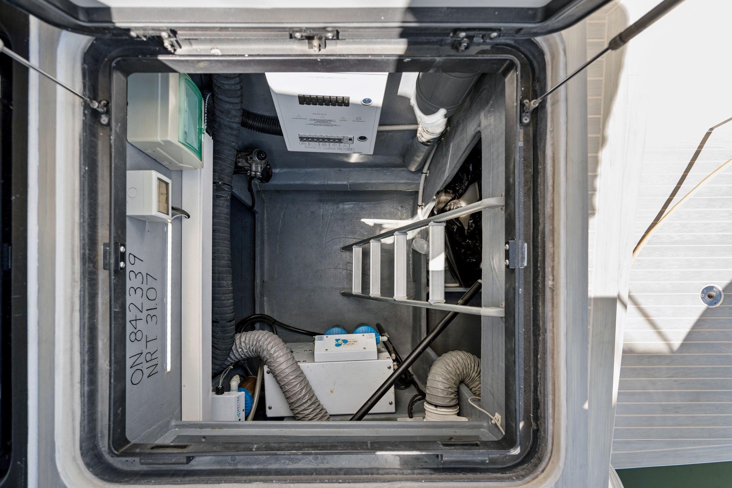 Accessed via Seasmart carbon composite lazarette hatches in both hulls: