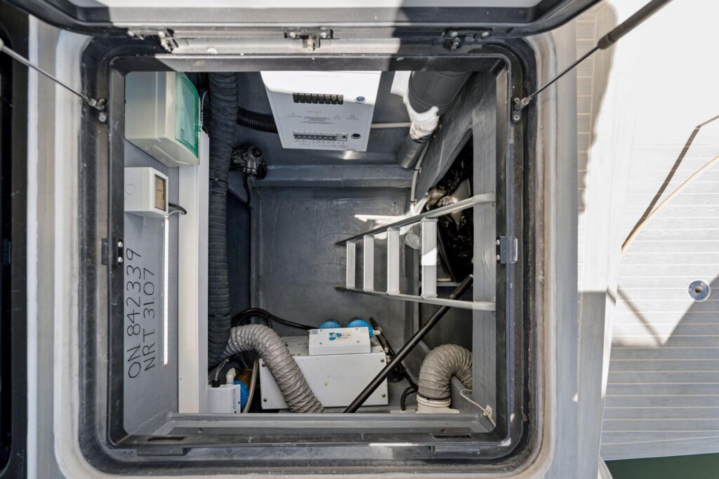 • 2x high-grade linear polyethylene inter-connected fuel tanks at mast base with inspection plates & gauge at chart table (*PLEASE NOTE: tankage is incorrect under measurements. Proper fuel tankage: 2 tanks, 1x100g; 1x60g)
