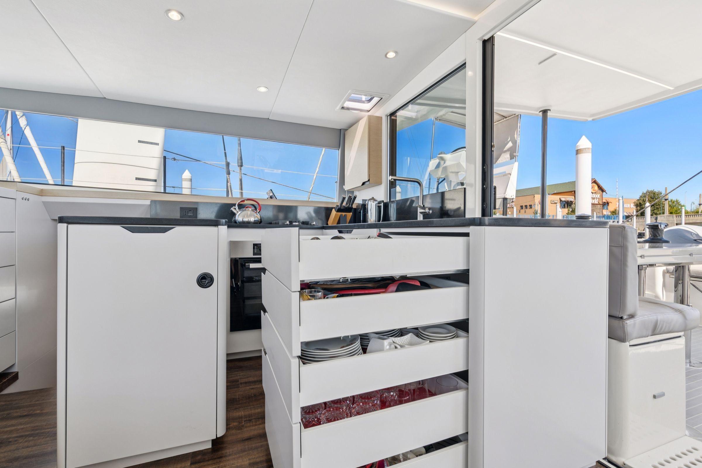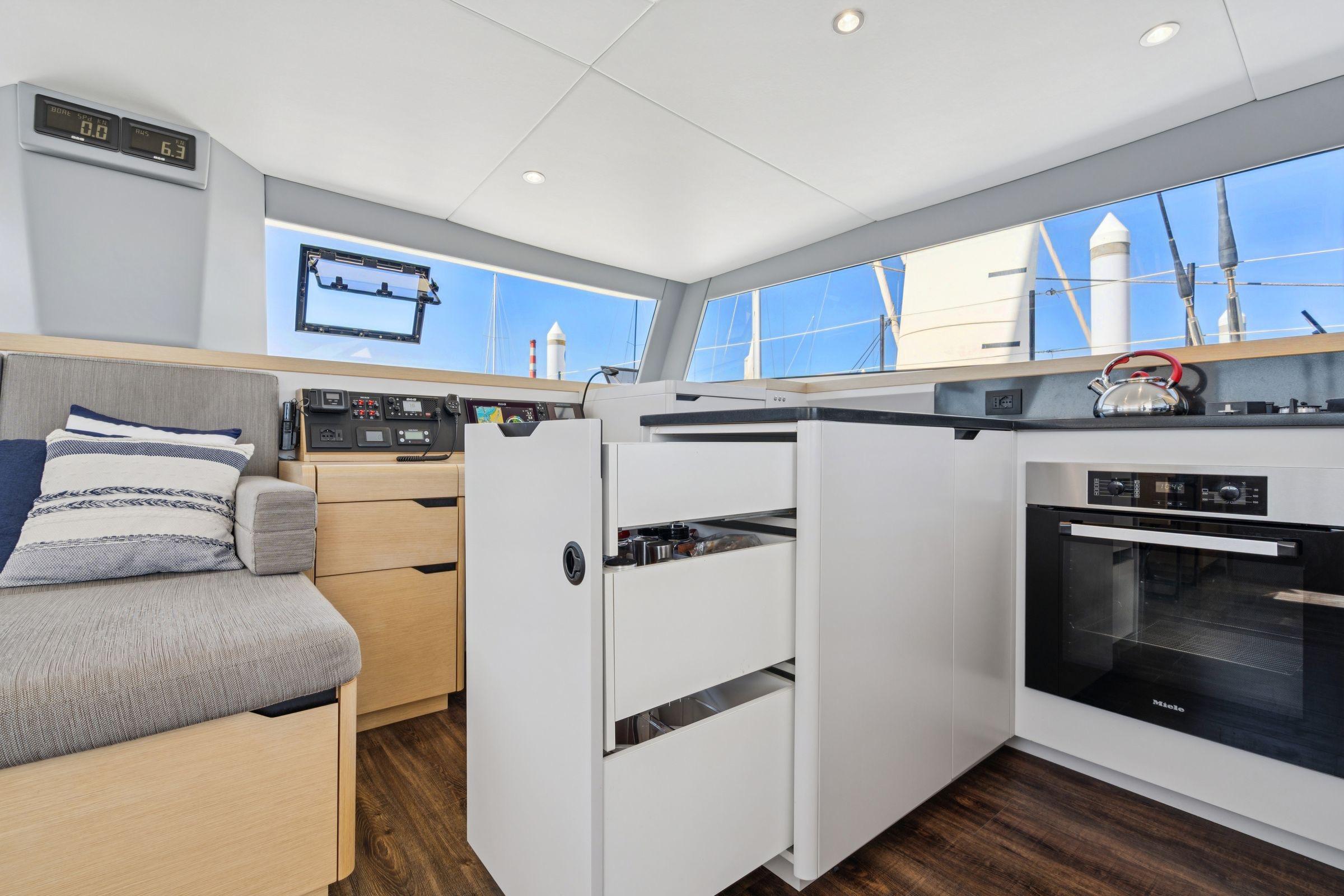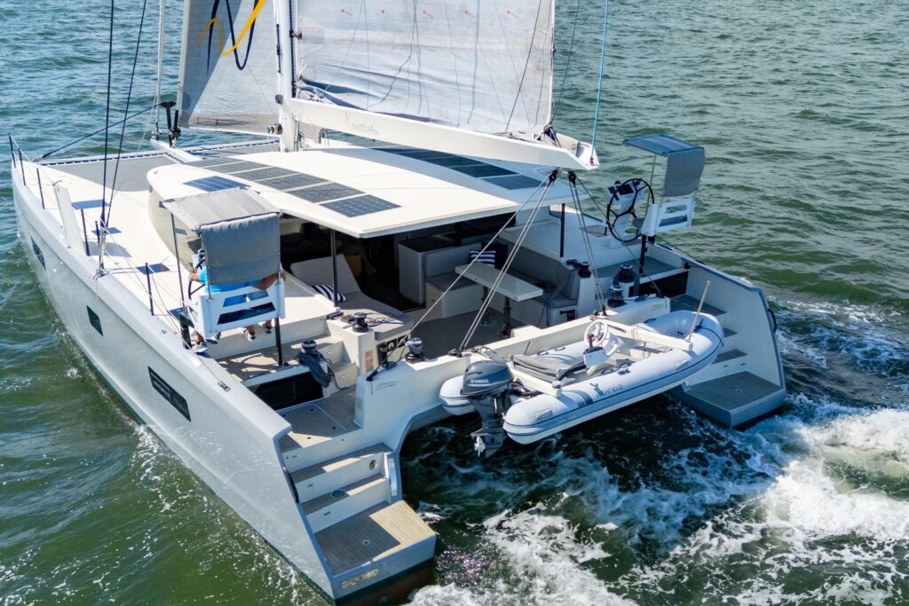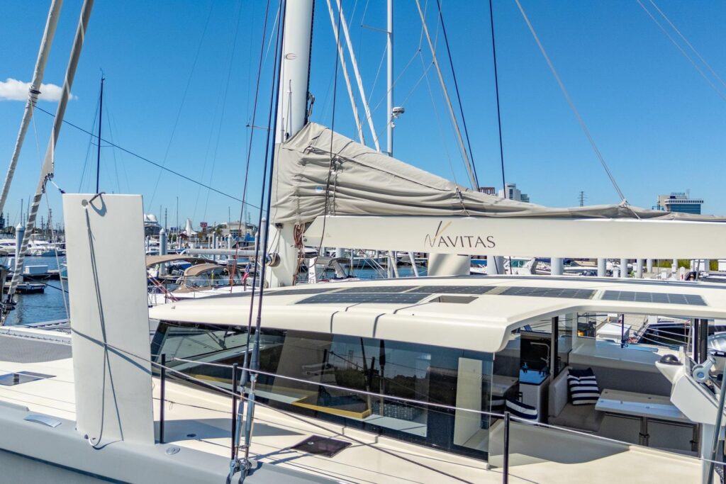 The2019 Itacatamarans 14.99Navitasutilizes epoxy construction and carbon structures to deliver a world-class catamaran, balancing competitive sailing performance and bluewater capability with elegant design and comfortable appointments.