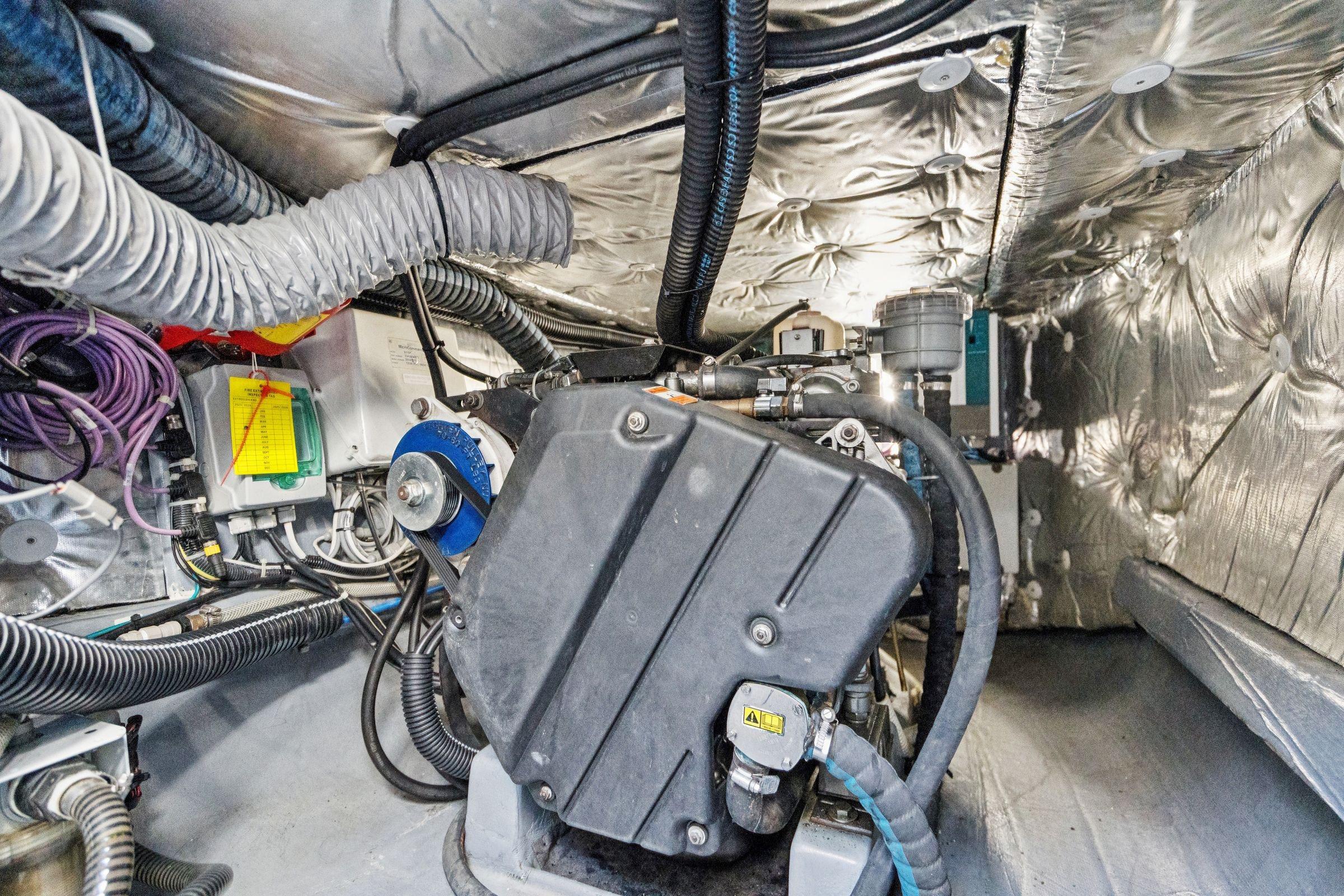 Webasto Blue Cool V50 chiller (air condition/reverse cycle heat w/50,000 BTU capacity) with air handlers in each cabin with individual digital controls (5 zones total)