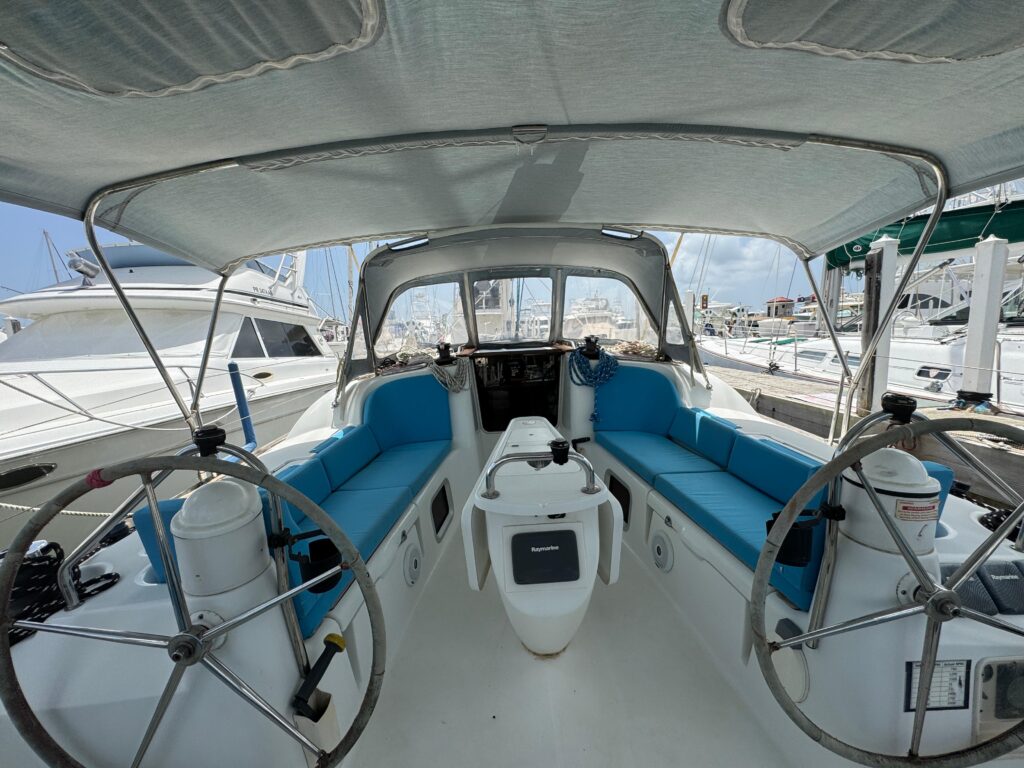 Experience the ease of handling! The Sun Odyssey 42i when sailing in 10 to 12 knots of wind, the boat's helm provides easy resistance and a neutral response. The boat tacks smoothly through less than 90 degrees, and the heel angles are reasonable. Theler is conveniently located on the cabintop, and the jibsheets are within reach of the helm. The dual wheels make it a breeze for a singlehander to stroll forward and handle both sets of lines. When under power, little resistance is felt in the steering wheels. Overall, Pelican Pat is a great choice for sailors who prioritize comfort, efficiency, and ease of handling.