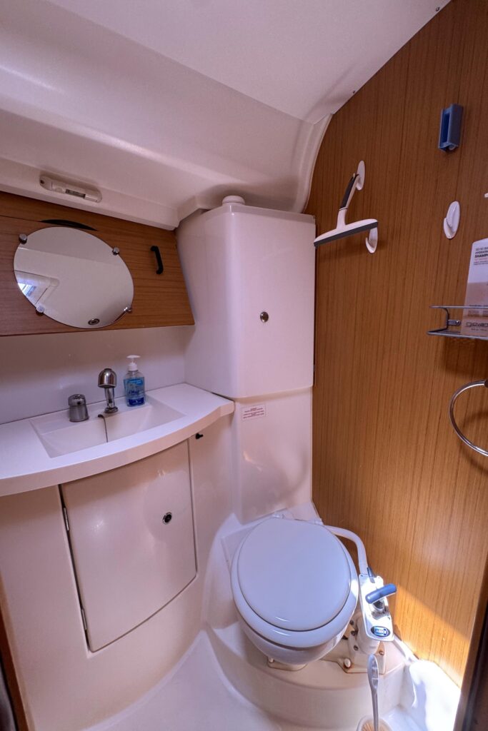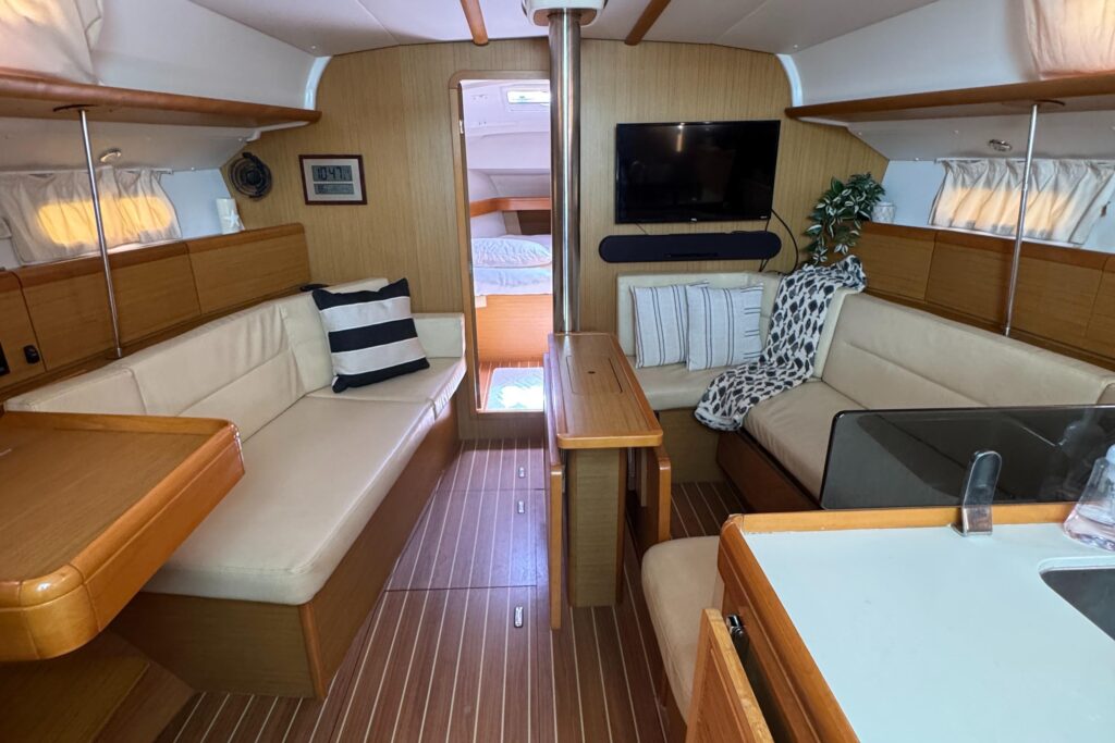 Step into the main saloon of the Sun Odyssey 42i and be greeted by a spacious dinette that can comfortably seat six people. The headroom of the main saloon is a generous 6'6", while the aft and forward cabins offer 6'6" and 6'3" headroom, respectively. The bunks in the aft and forward cabins are designed for comfort, measuring 6'6" x 4'10".