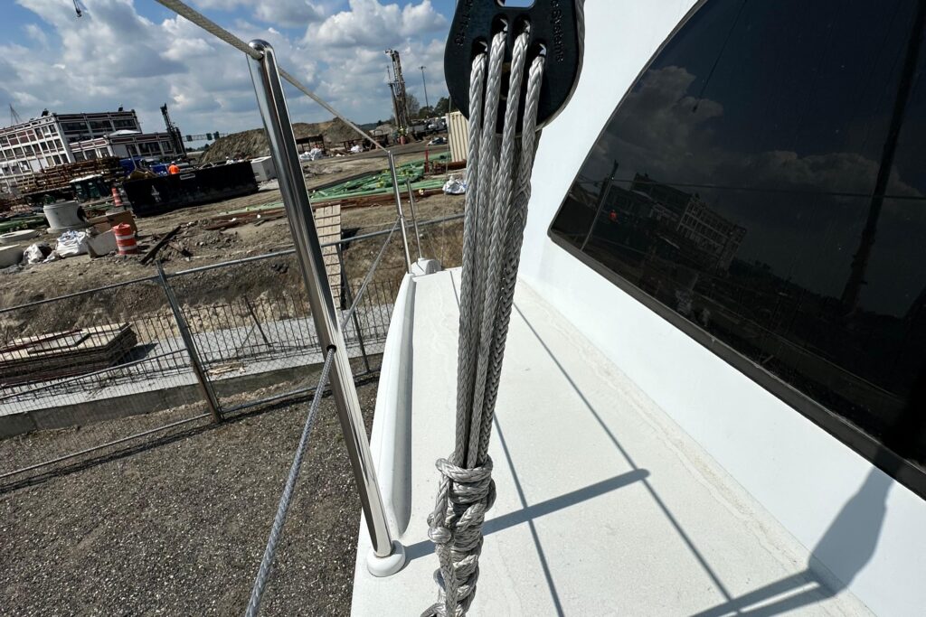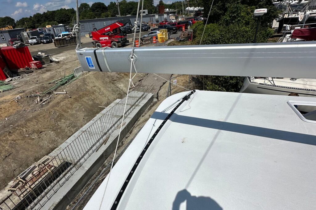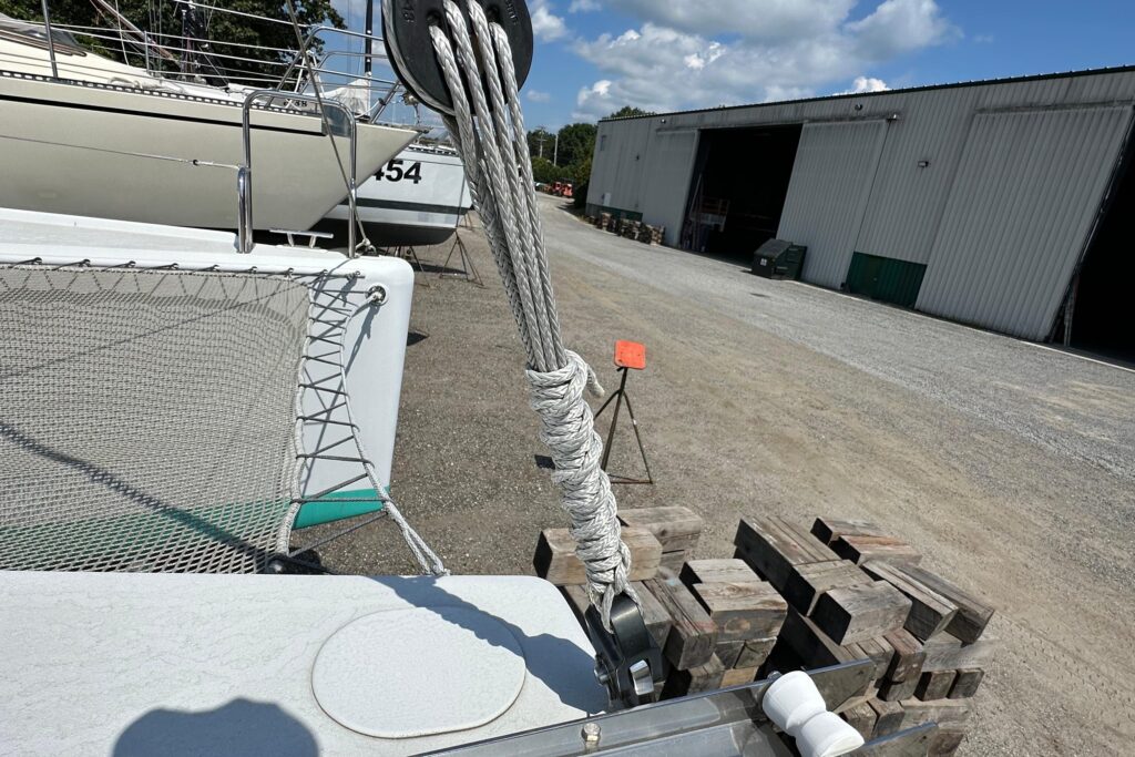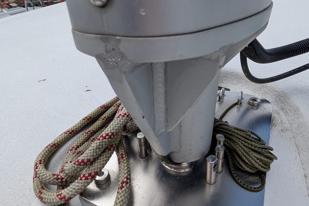 New Dynex Dux standing rigging mast attachment lashings done by Gorilla Rigging in Newport