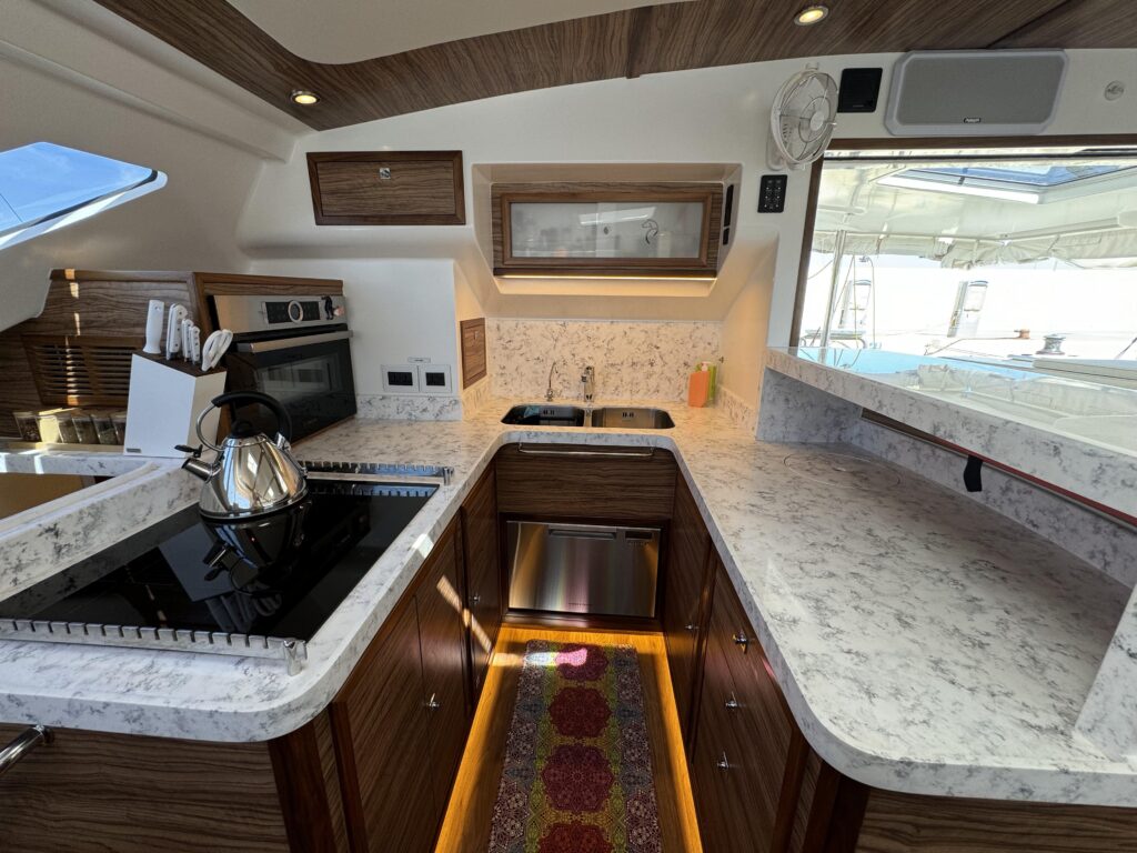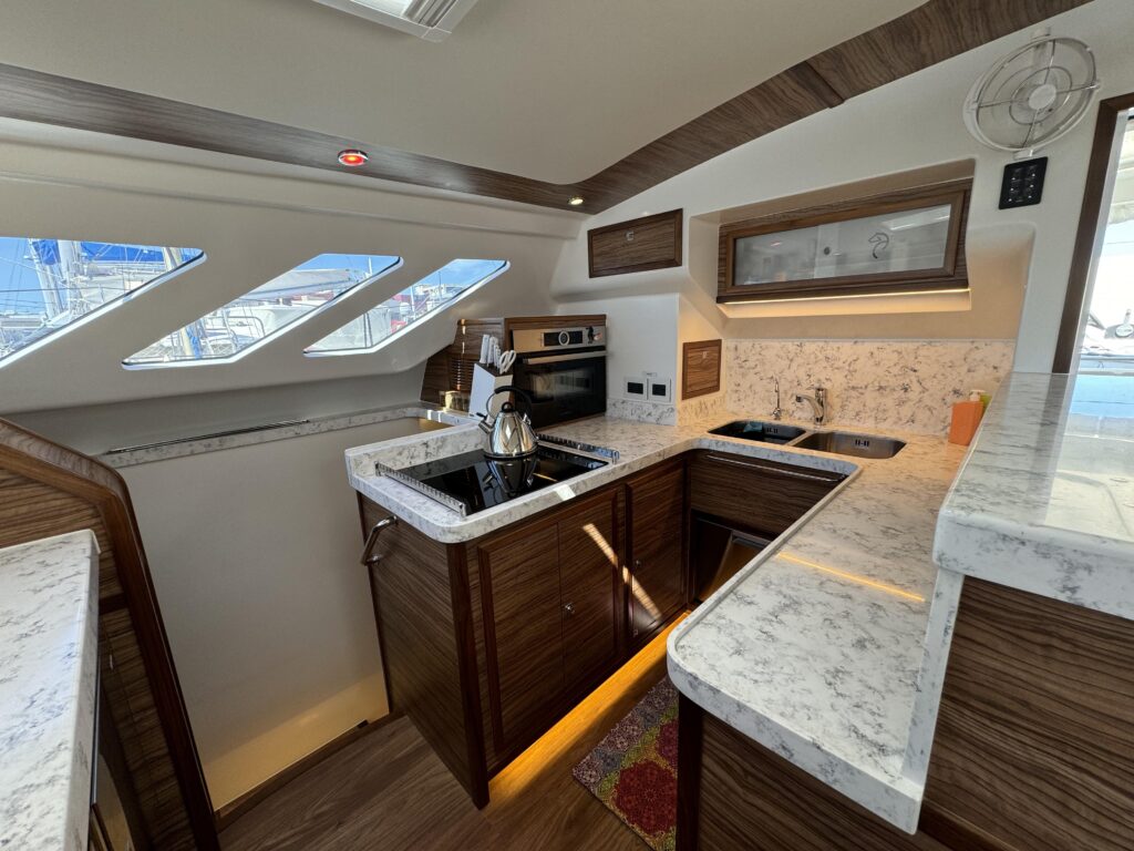 Galley with upgraded 4-ring induction stove plus upgraded microwave with convection oven