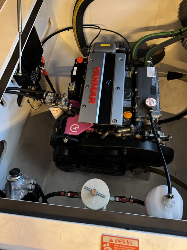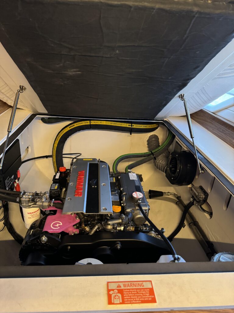 Twin saildrives to upgraded Brunton 3-bladed feathering propellors