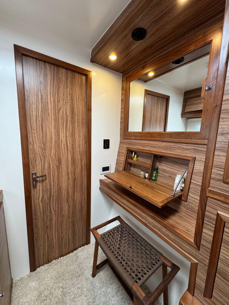 Internal furniture and cabinetry in Macassar Light laminate with solid wood trims and edges in satin finish AmericanWalnut