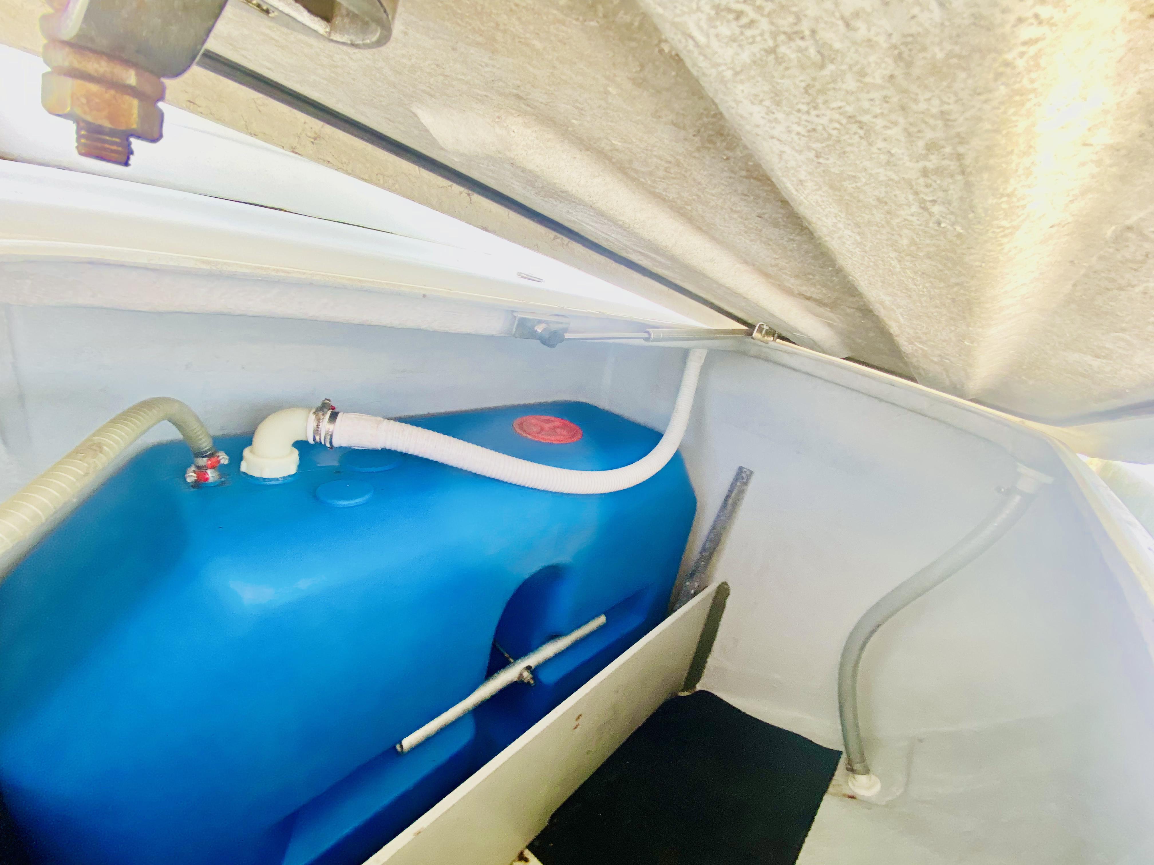 Double stainless steel sink with electric (JABSCO) and manual fresh water pumps