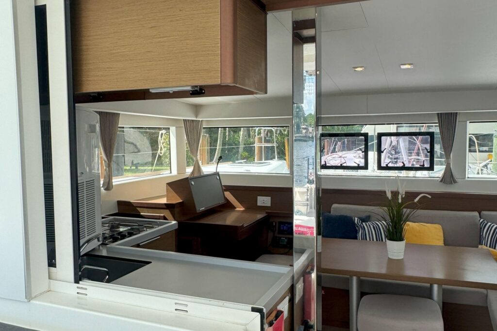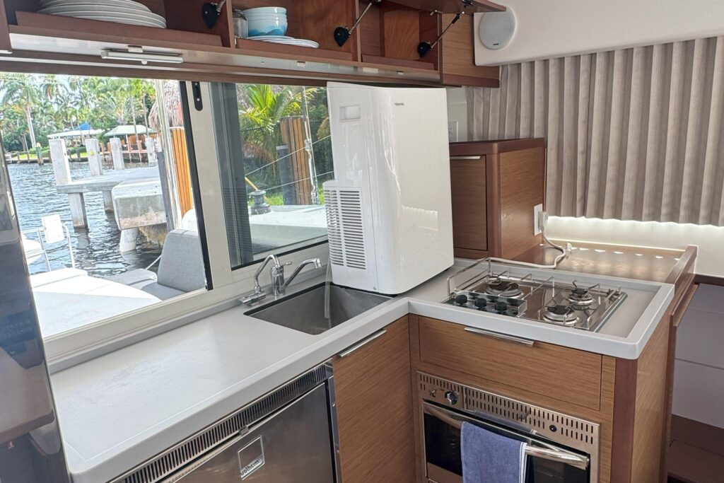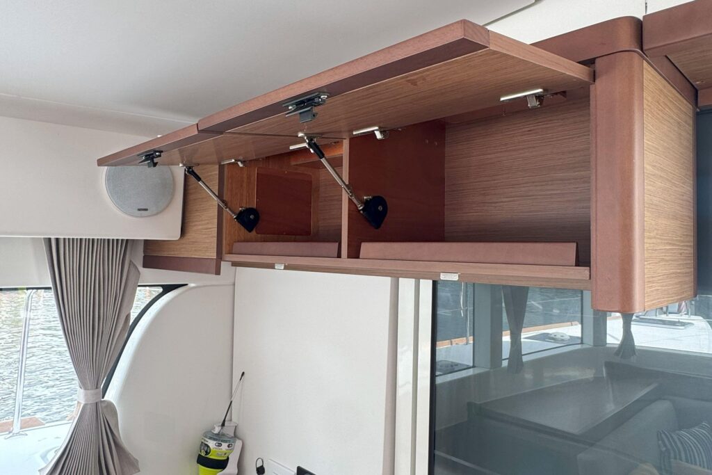 – Large hull window glazing with integrated portholes in the cabin provide exceptional natural light and an outstanding view.