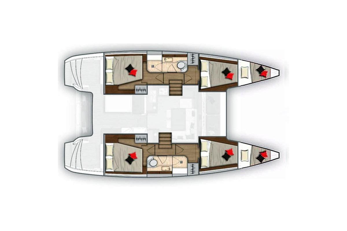 Manufacturer's Comments: Boasting a new signature look, the 40 reveals her striking personality at first glance. The perfect marriage of interior comfort and optimized cruising, she represents a new generation of Lagoon. At the forefront of the Lagoon brand is Lagoon 40, one of their most popular models. Despite being a smaller model, Lagoon 40 clearly honours the brand's high standards and is characteristic of Lagoon Catamarans in terms of design and spirit. It has a spacious layout and is known for both high comfort and personal style. Industry-leading construction methods ensure highest quality and top performance. Accommodations for up to 10-12 people. Offered in the 4-cabin layout which typically includes four double cabins with two en-suite bathrooms/heads. Often includes 2 single crew cabins in the bows.