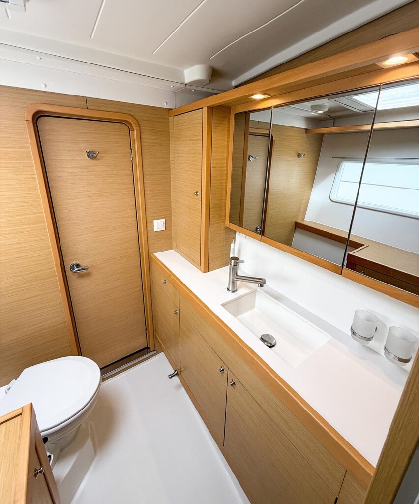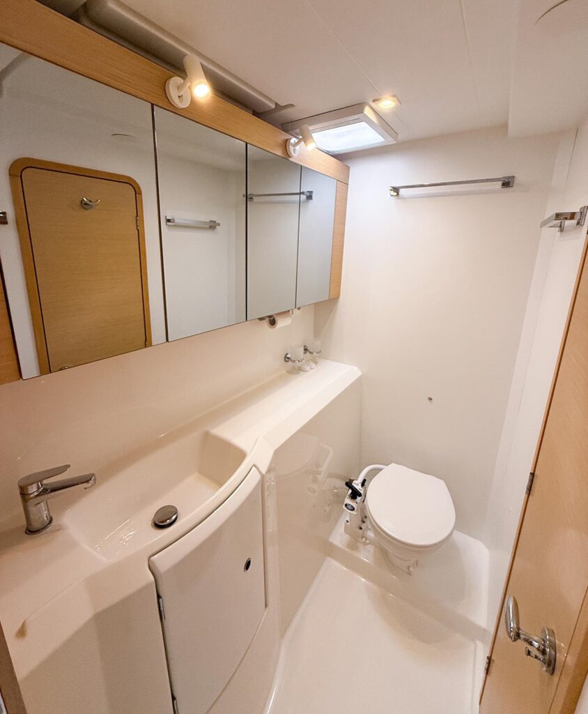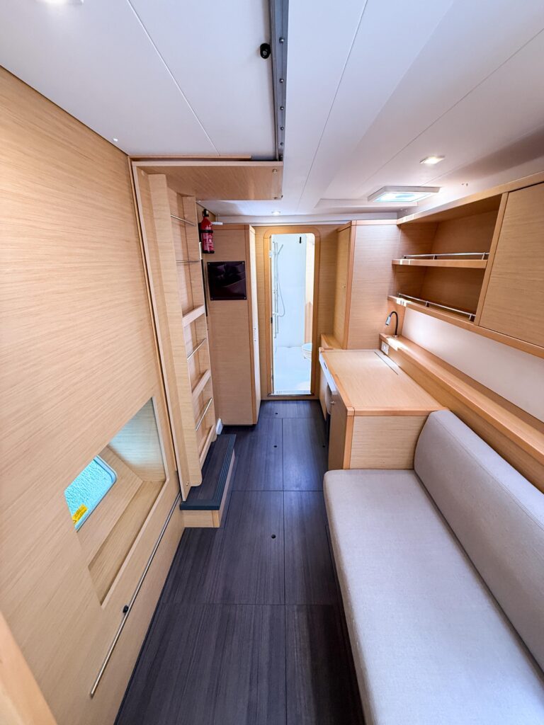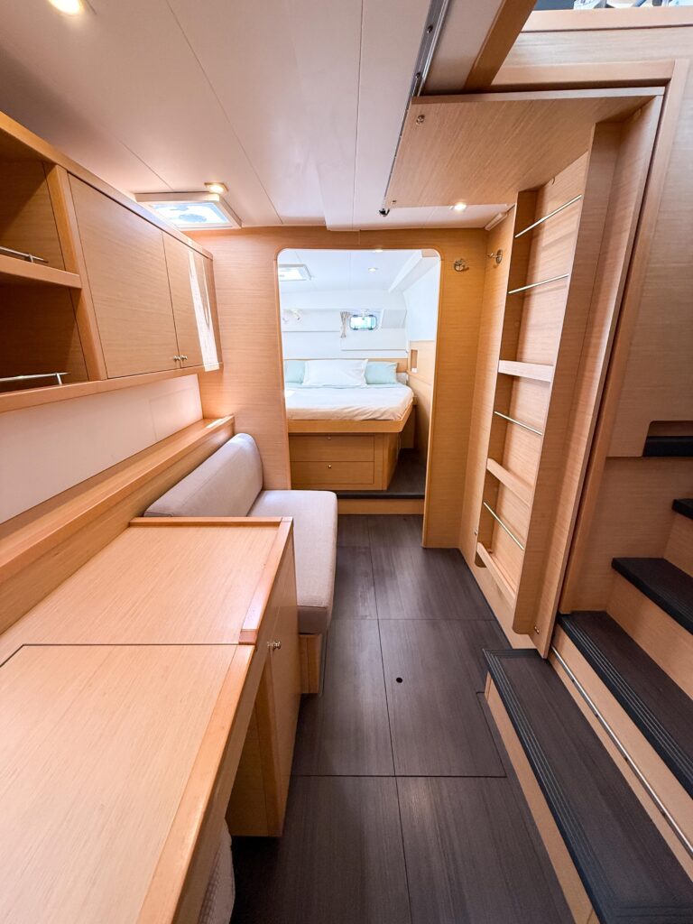 All navigation and sailing electronics are B&G with a Zeus 3s display. There is one Harken (two-speed) electric winch and four Harken (two-speed) manual winches on deck.