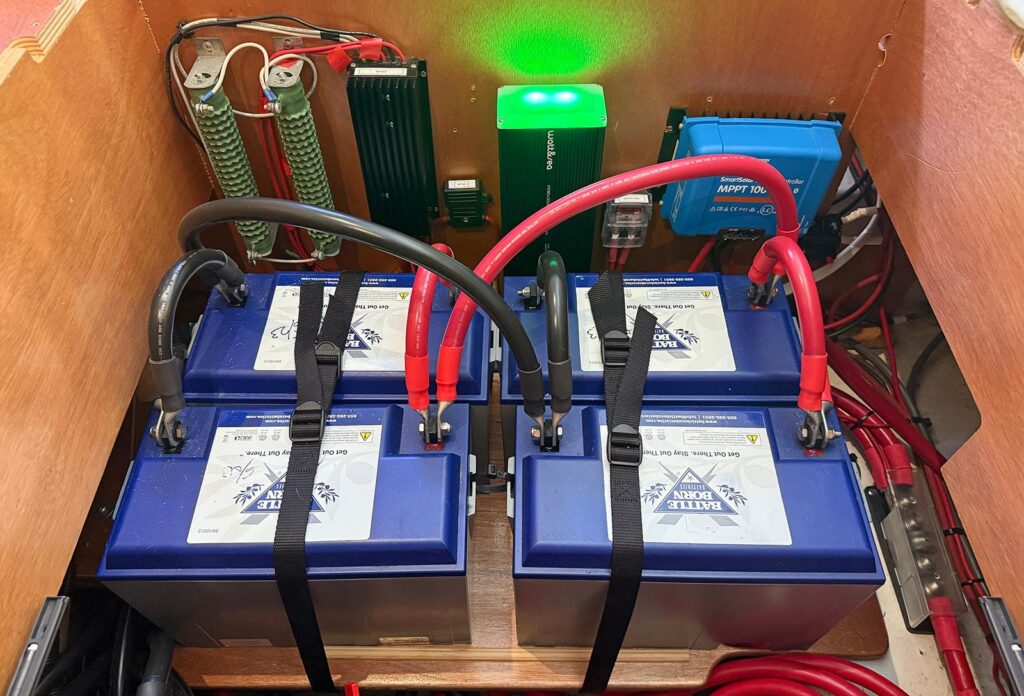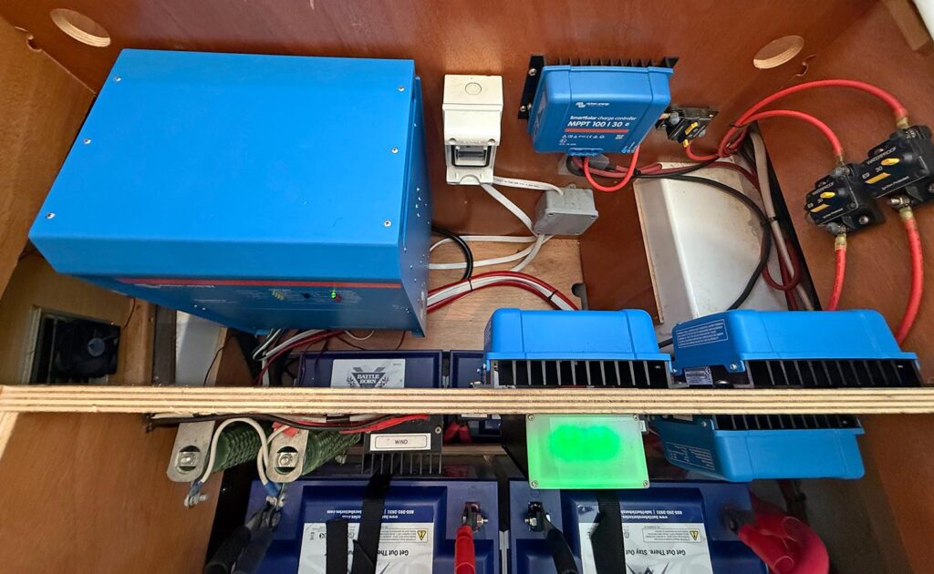 The boat is made for long-term cruising with everything you need to spend months off the grid. The 1,000 Ah LiFePO4 house battery bank is charged by 2,200 watts of solar, with additional wind and hydro generators. A Victron Quattro 5,000-watt inverter/charger powers the 230V AC side of the house with a Victron Multi-Control remote. The galley is fully electric, equipped with a four-hob induction range and a 1,050-watt microwave oven with convection and air fry options. With this boat, theres no need to search for propane refills in remote locations. If you prefer propane, all the propane lines remain in place, but we do not currently carry propane tanks on the boat.There is a main refrigerator with freezer, a separate four-shelf freezer, plus three Engel drawer fridge/freezer combos built in under the helm station.