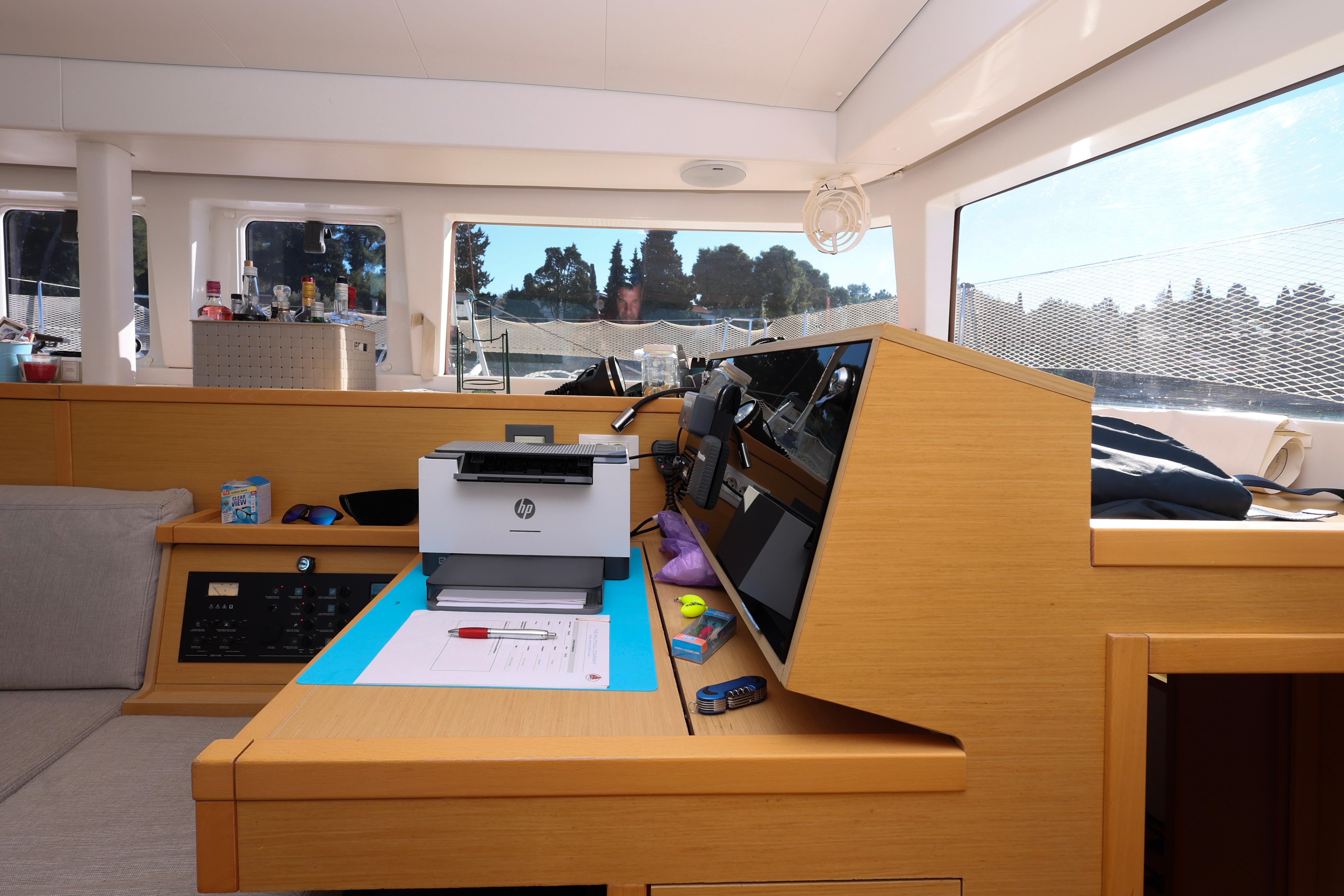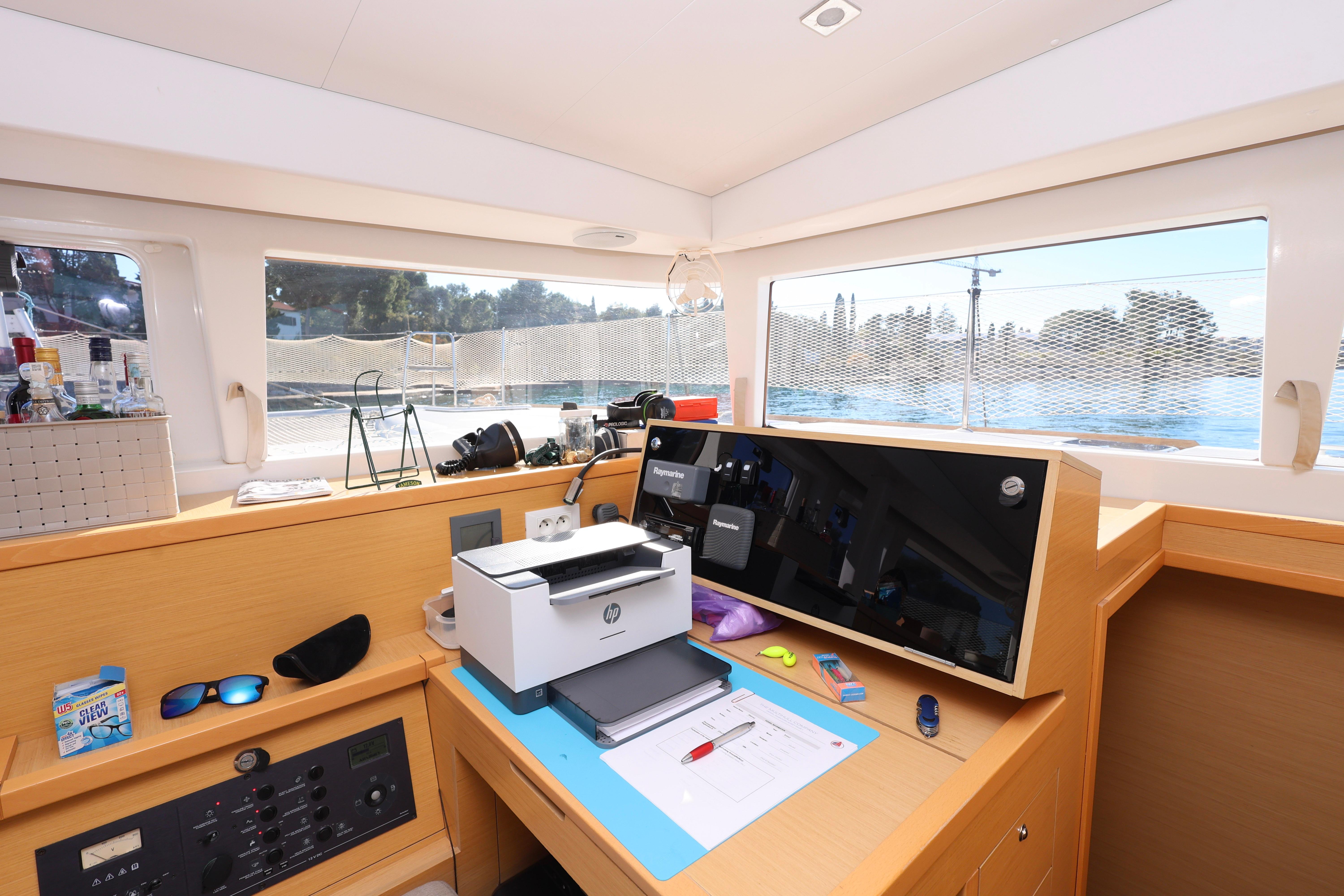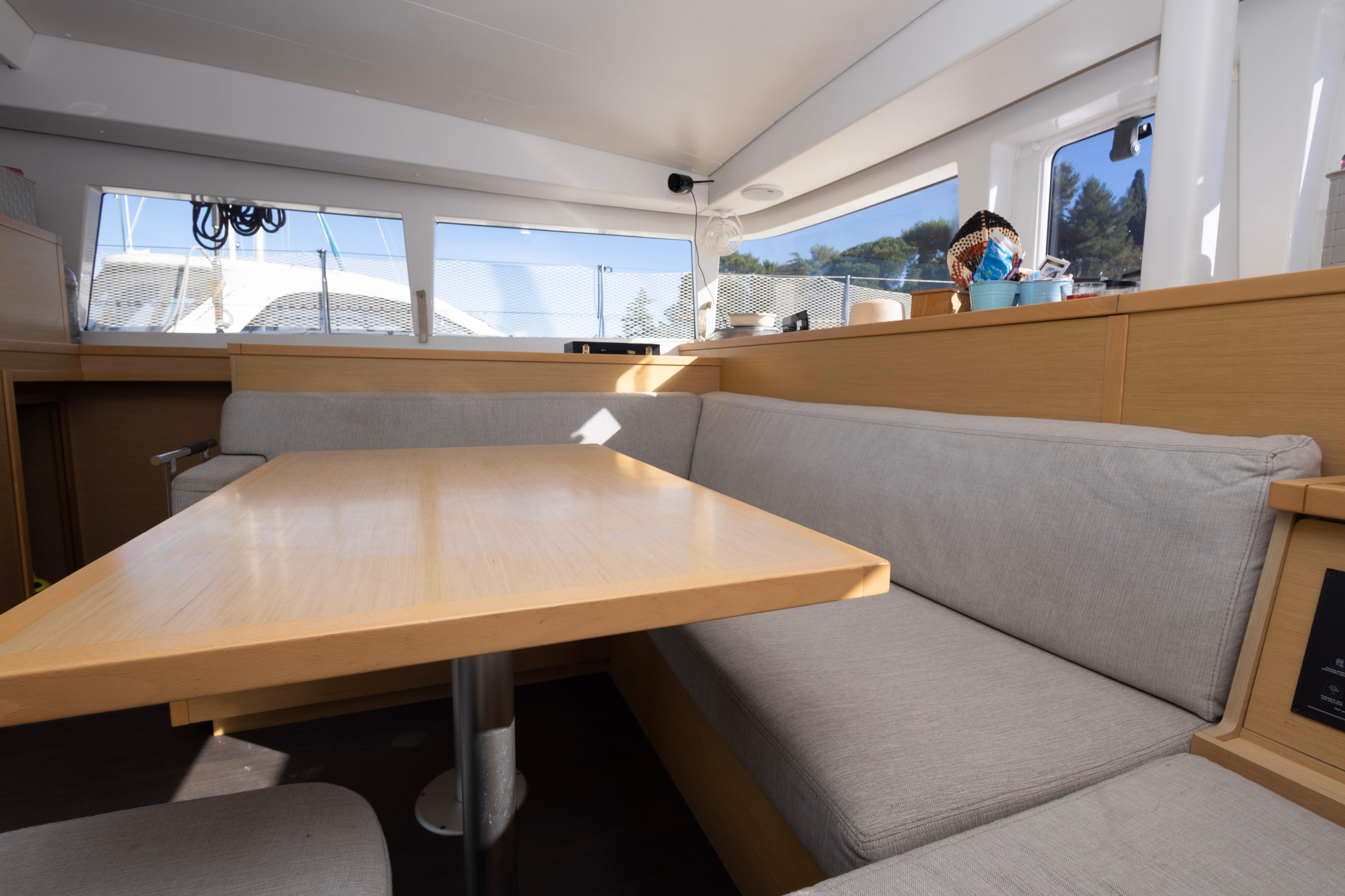 With her four-cabin, four-head layout, Voyager offers excellent versatility for family cruising. Air heating in one hull adds comfort for cooler seasons, and the vessels custom solar setup keeps onboard energy well-supported for extended stays aboard.