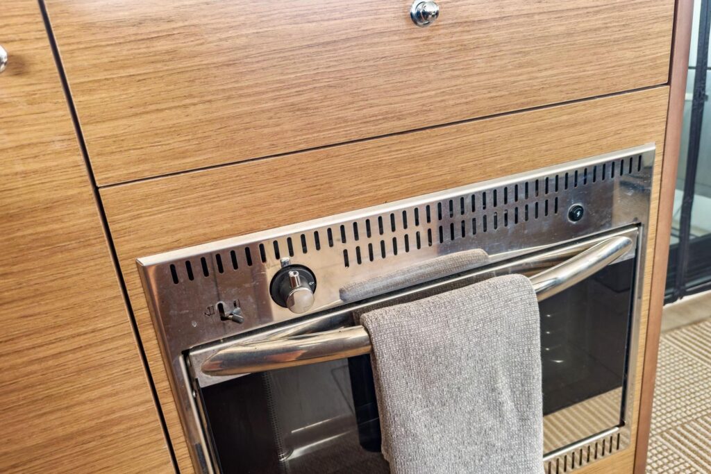 – a large glazed door that occupies the entire width of the coachroof, and provides access to the unparalleled internal volumes.