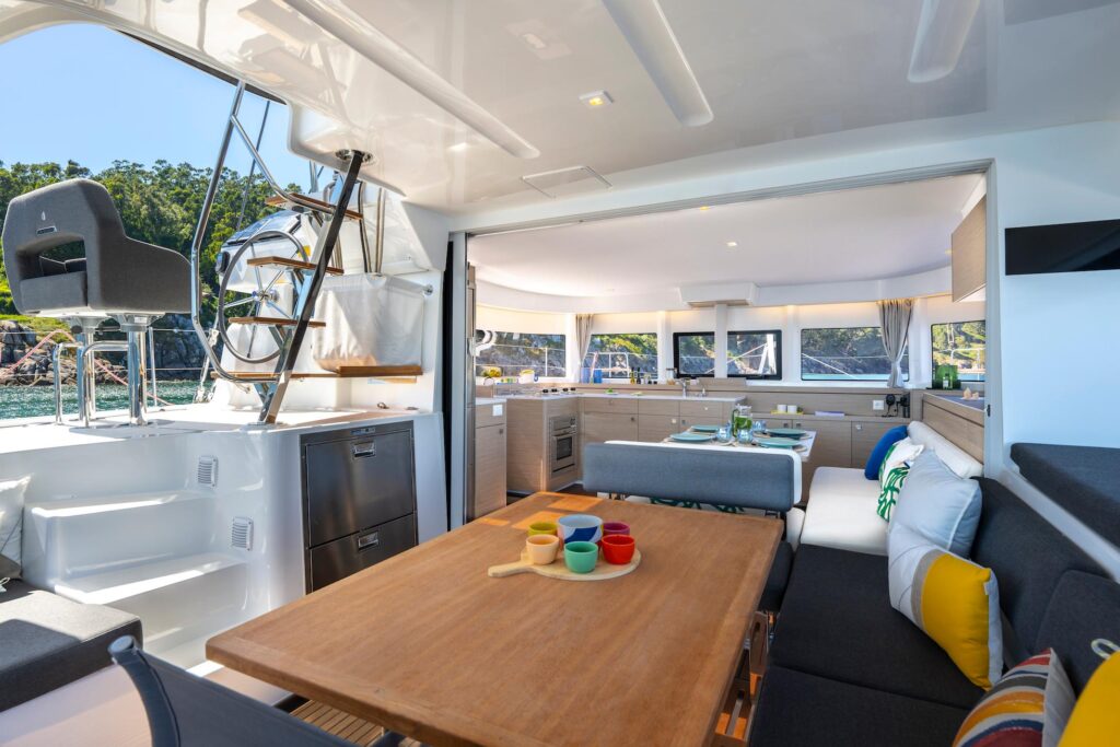 Lagoon has redefined the concept of onboard living with a highly adaptable catamaran, designed to seamlessly integrate modular spaces. This innovation allows you to effortlessly transform the layout, blending the interior and exterior, the saloon and the cockpit, based on your preferences and needs.