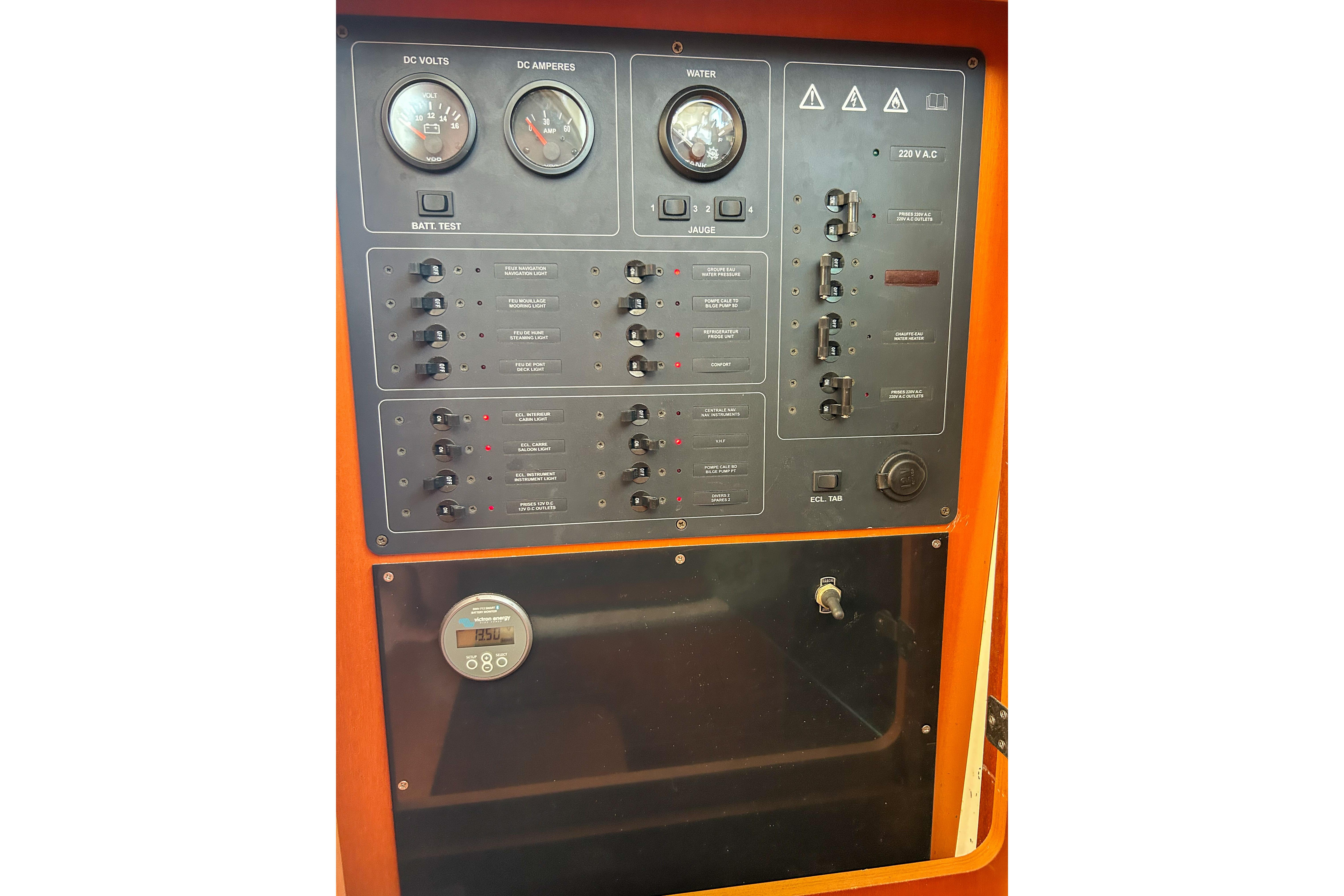 The vessel has an impressive 1200w solar arch and 1200ah lithium house bank combination with Victron charging and monitoring for extended cruising off grid. This vessel is set up for low-stress cruising with relatively low engine hours (2200), a Raymarine navigation suite new as of '22, and interior/exterior helm controls.