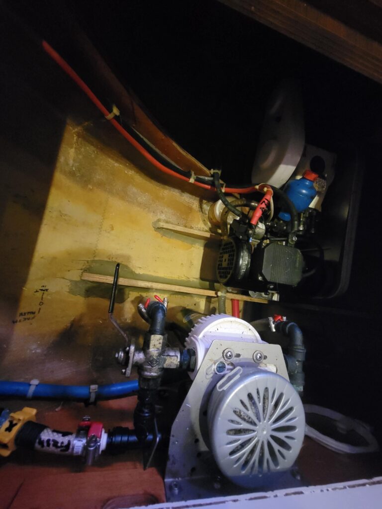 1 holding tank with gravity drain/deck pump out in the aft port head