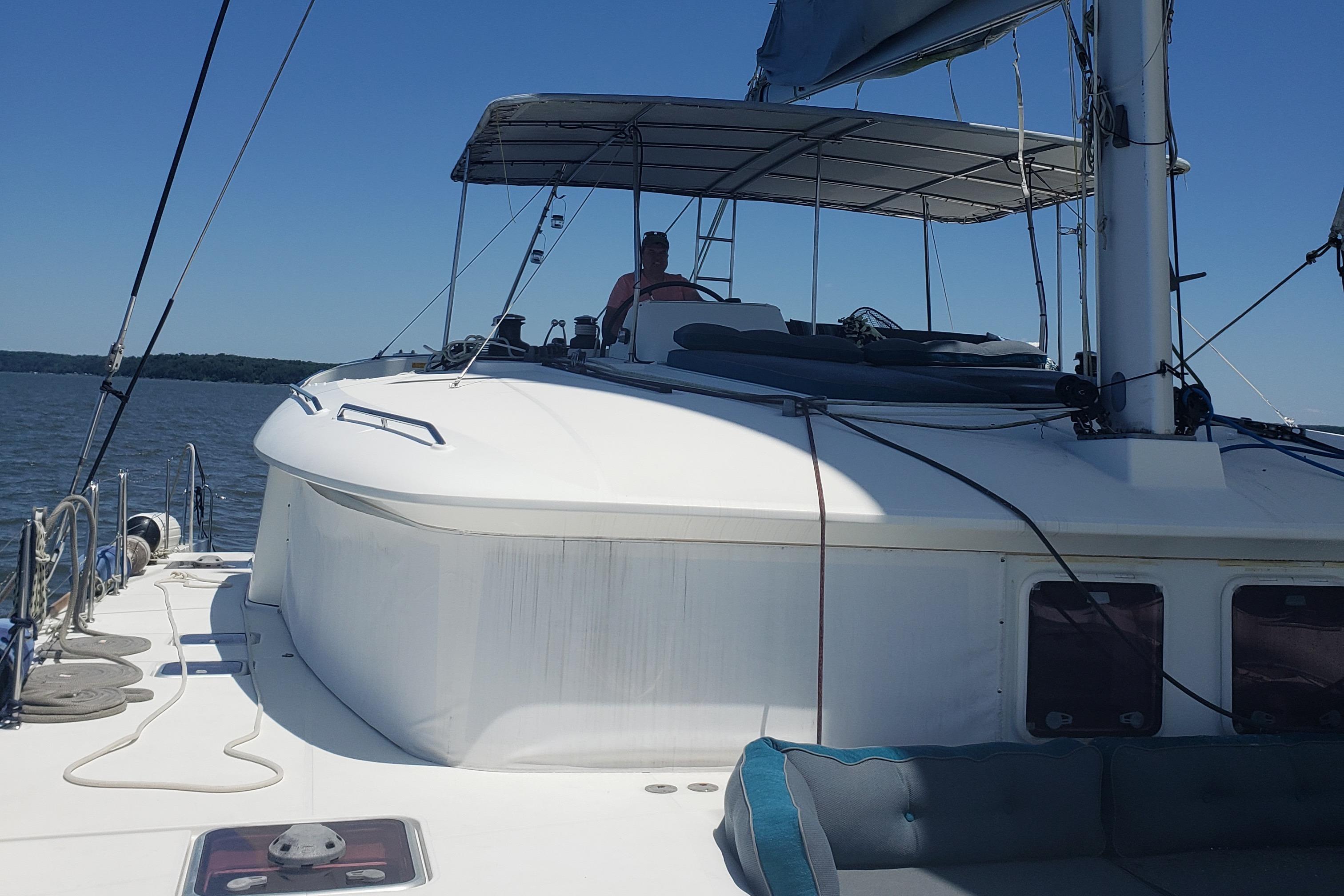Beautiful owner's version 3 cabin, 3 electric head layout, Lagoon 450 Flybridge helmcatamaran for sale. La Perle Noire located in Bear, Delaware has never been chartered. This vessel spent 3 seasons privately cruising the Mediterranean, Caribbean, and Bahamas. La Perle Noire has been kept in fresh water on the Chesapeake since 2019. Square top main, furling gennaker and symmetric spinnaker, folding propellers, dual voltage, watermaker at 25 gallons per hour 11KVA generator. Two inverters at 240V 50Hz and 110 V 60Hz. 720 watts Solar Panels, Hooka unit, 15 pounds capacity clothes washer, electric heads, 2 refrigerator freezers in cabin, and beverage refrigerator and 5.8 cubic foot freezer in cockpit. Upgraded cushions and canvas throughout, gourmet cooktop, new microwave/air fryer/convection oven, Raymarine navigation instruments. Fully air-conditioned. New bottom paint April 2025