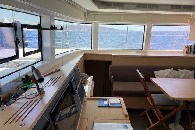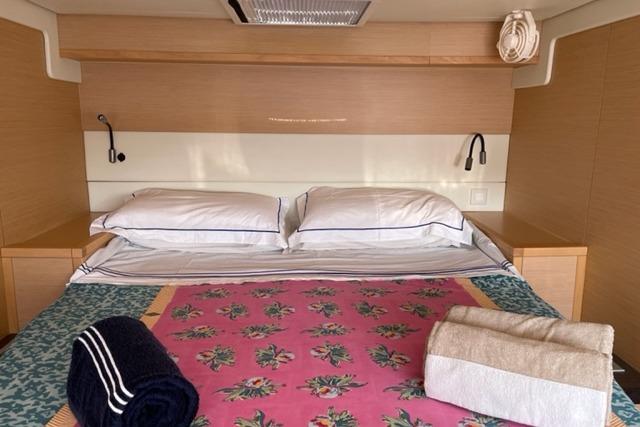 This is the 4 cabin + 1 crew cabin version - a versatile layout that allows charter capability or private use. Everything aboard is designed to be run by 2 persons with ease: docking, sail maneuvering, dinghy launching/hoisting. So whether you are a couple or family looking to gunkhole in the Med or make long passages to the Caribbean, this Lagoon 52 is an unrivaled platform.
