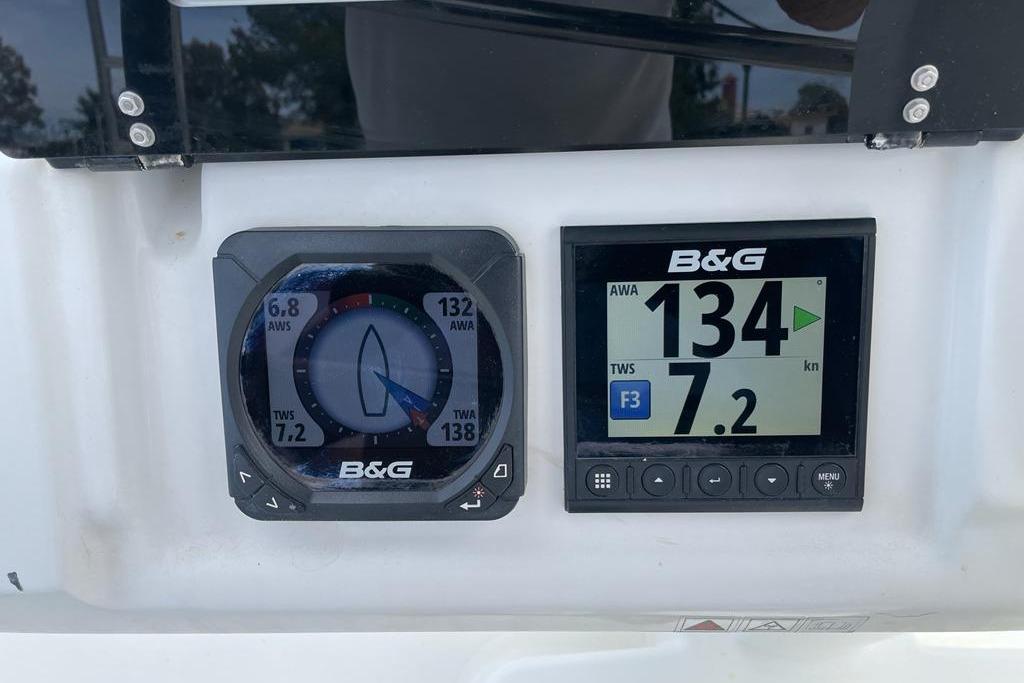 The large 4.3 meter RIB and 40 HP outboard are hoisted on hydraulic davits for easy launch and hoist. There are some 10+ electric winches to hoist and furl the sail wardrobe: main, furling genoa, furling gennaker and asymmetric spinnaker. Full suite of B&G electronics to keep it all on course.