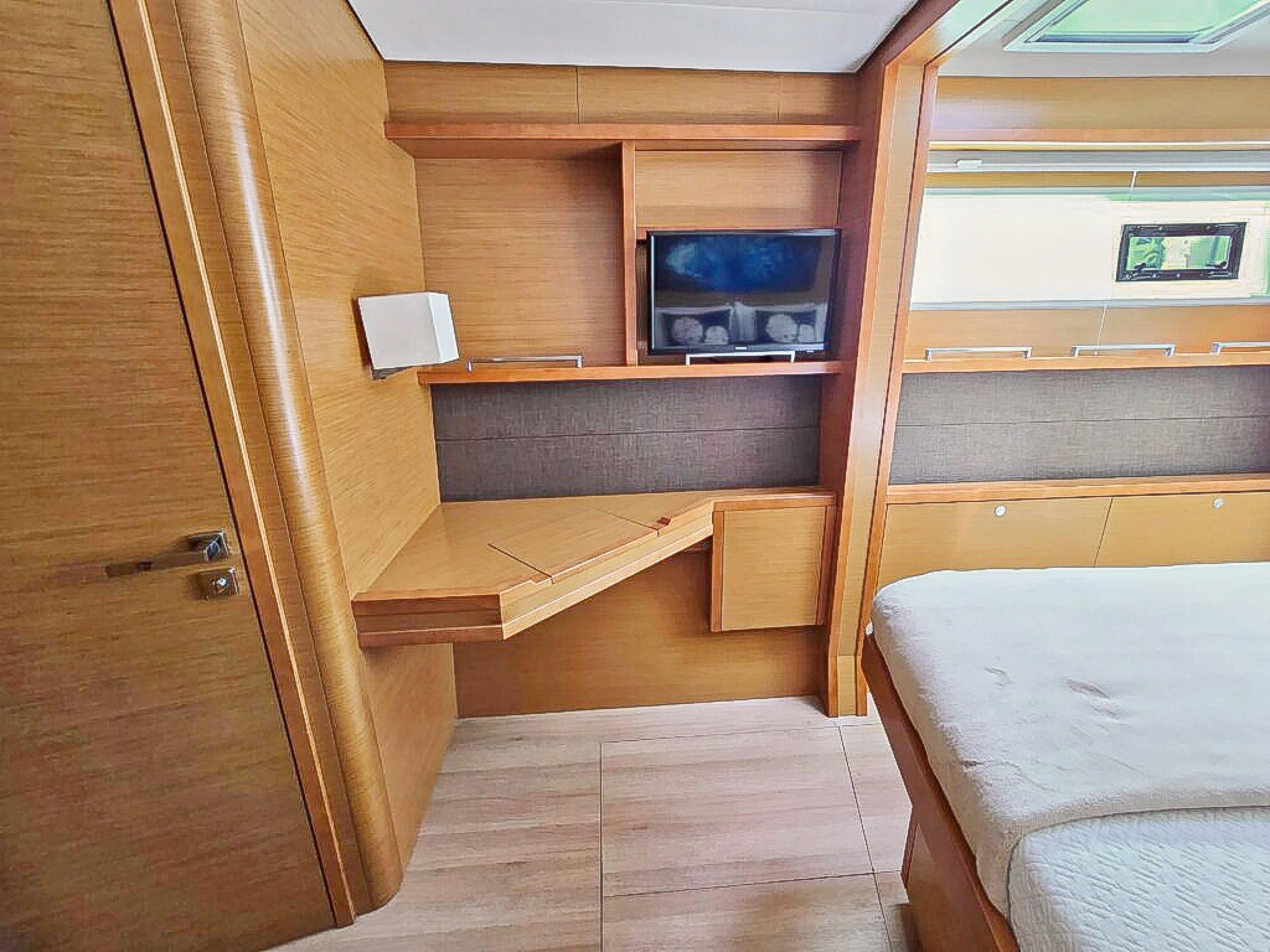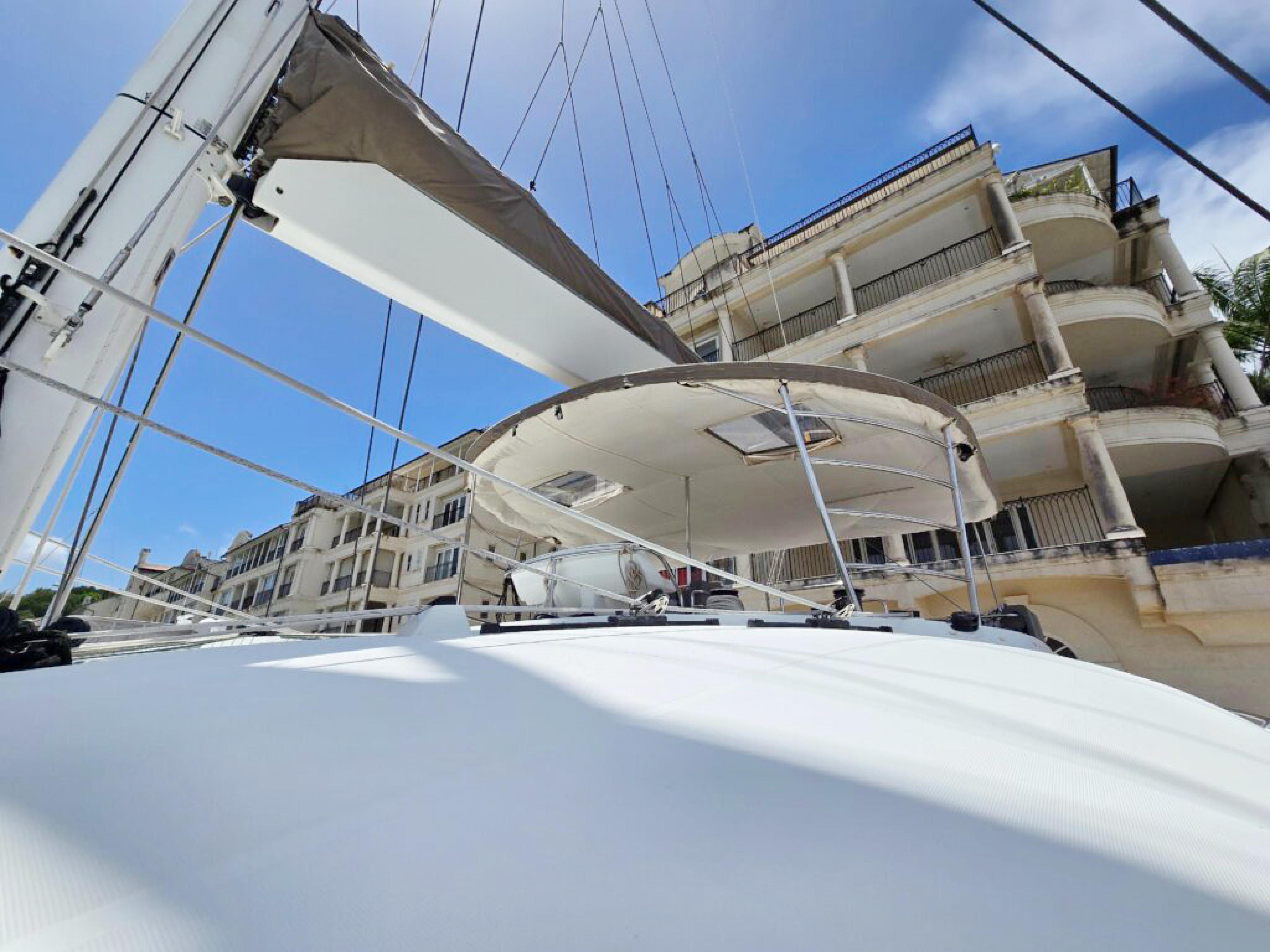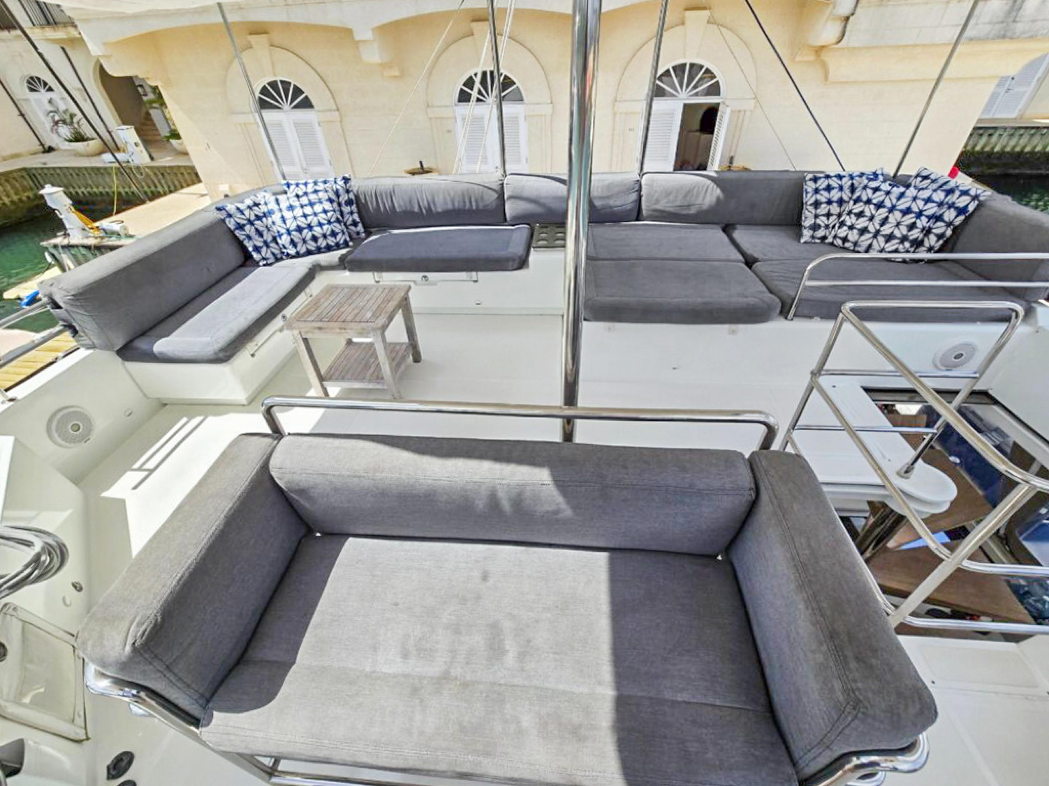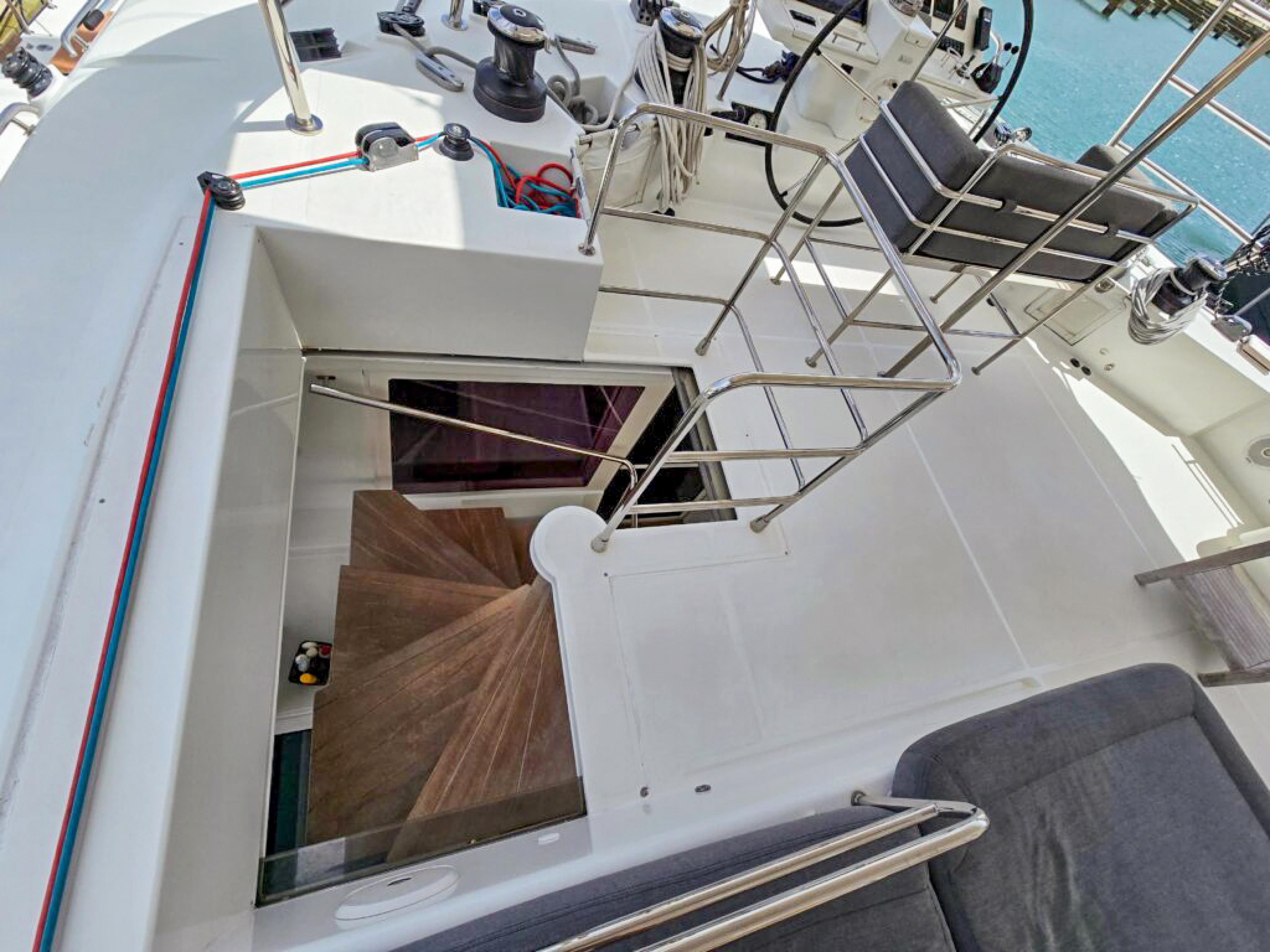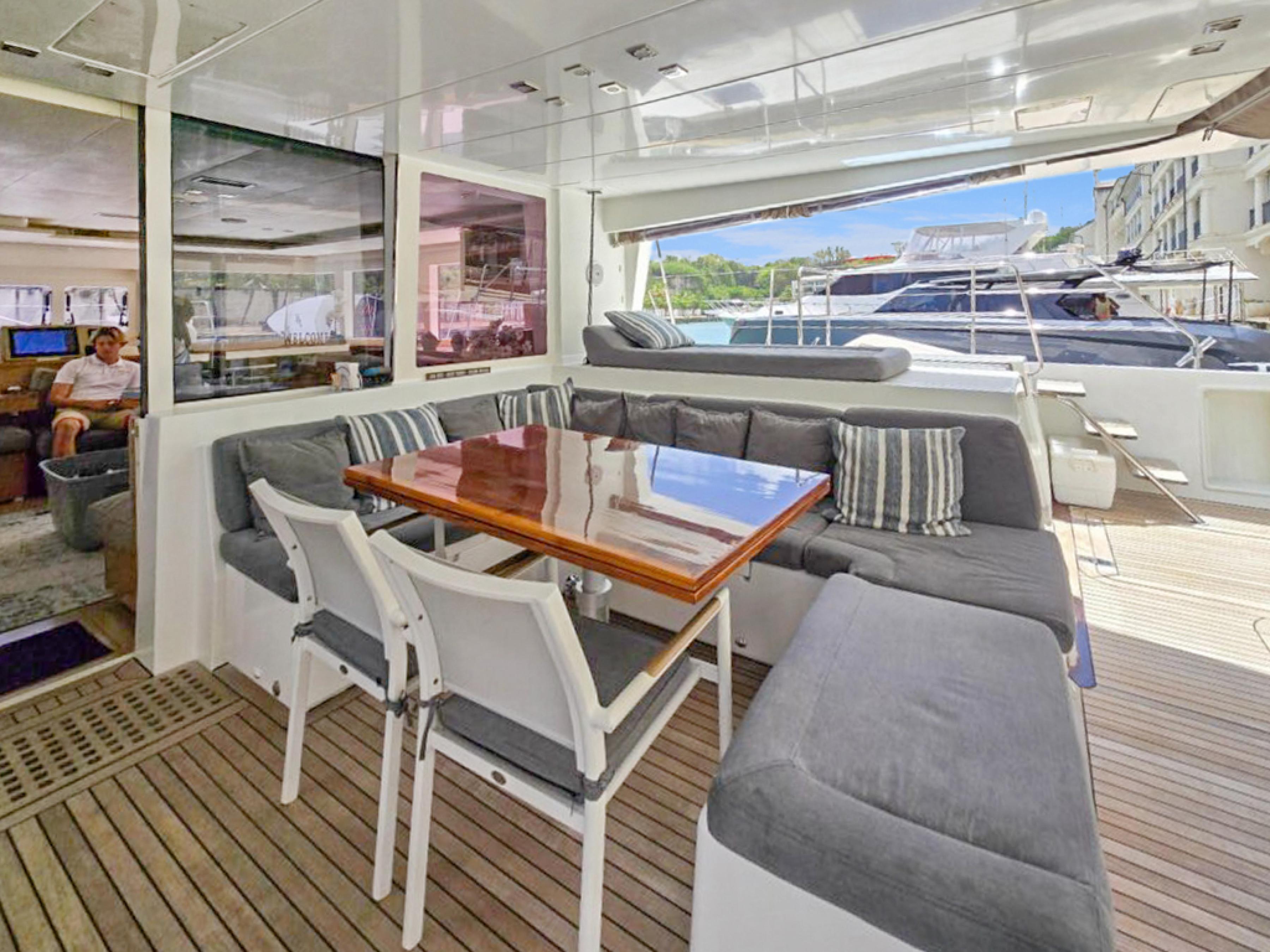The raised flybridge, forward cockpit lounge, and expansive aft sundeck provide inviting outdoor spaces for entertaining or relaxing at sea. With a full suite of B&G electronics, updated sails, and a powerful Sea Recovery watermaker, shes fully equipped for extended cruising.