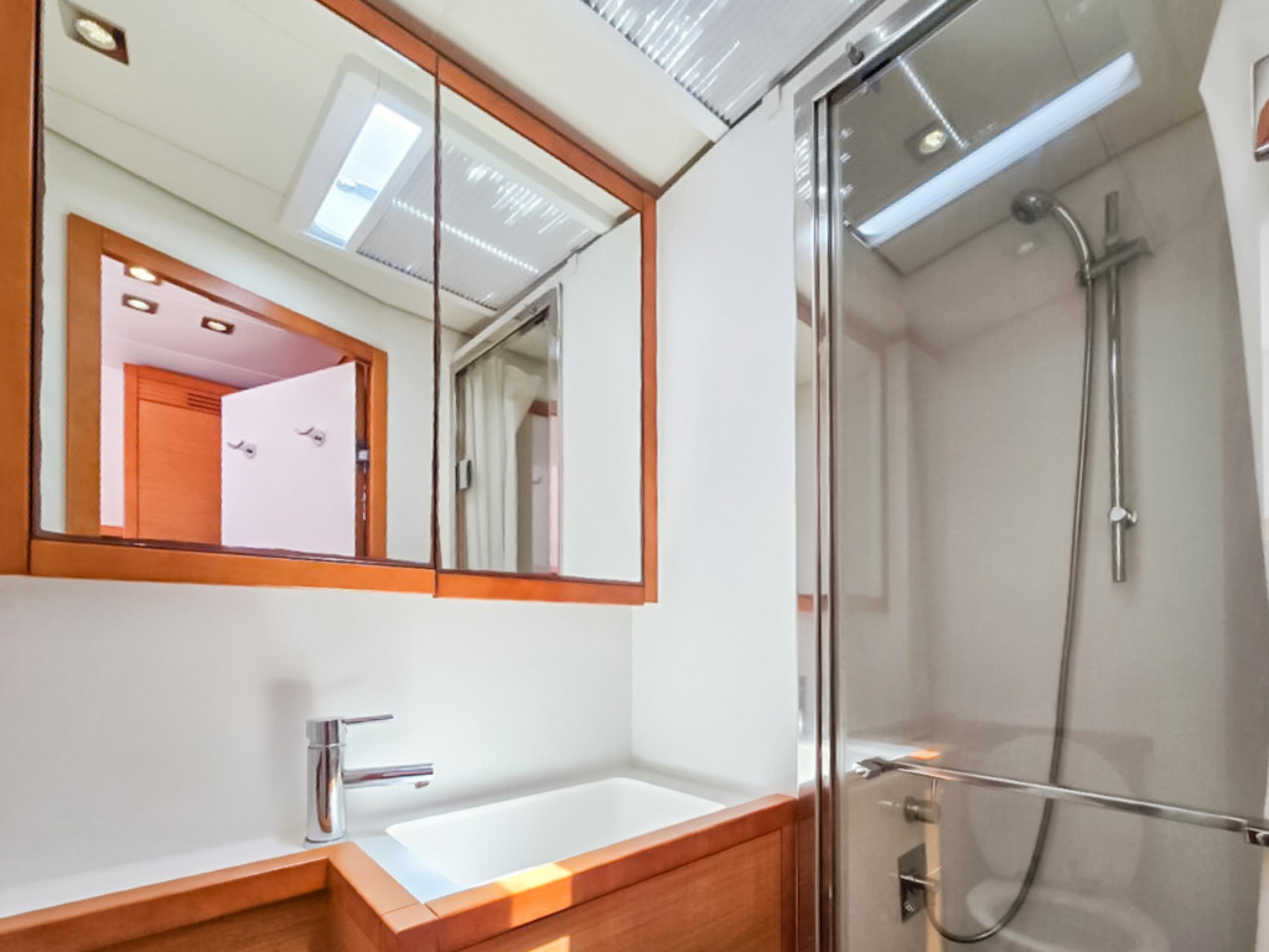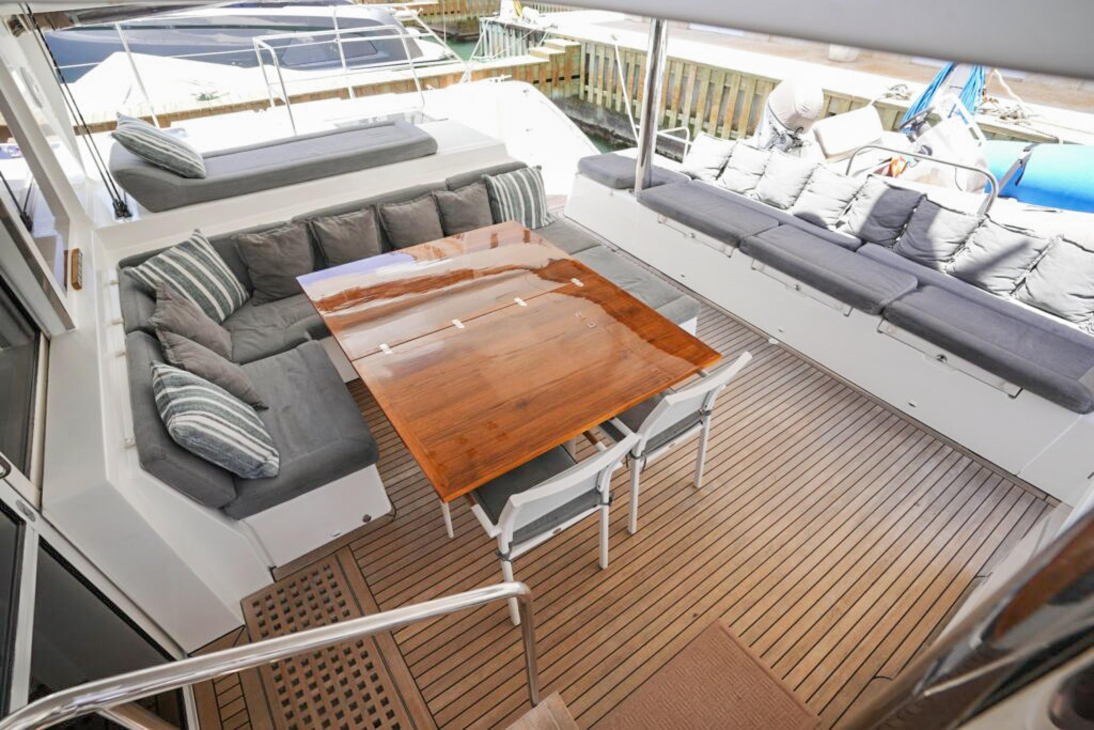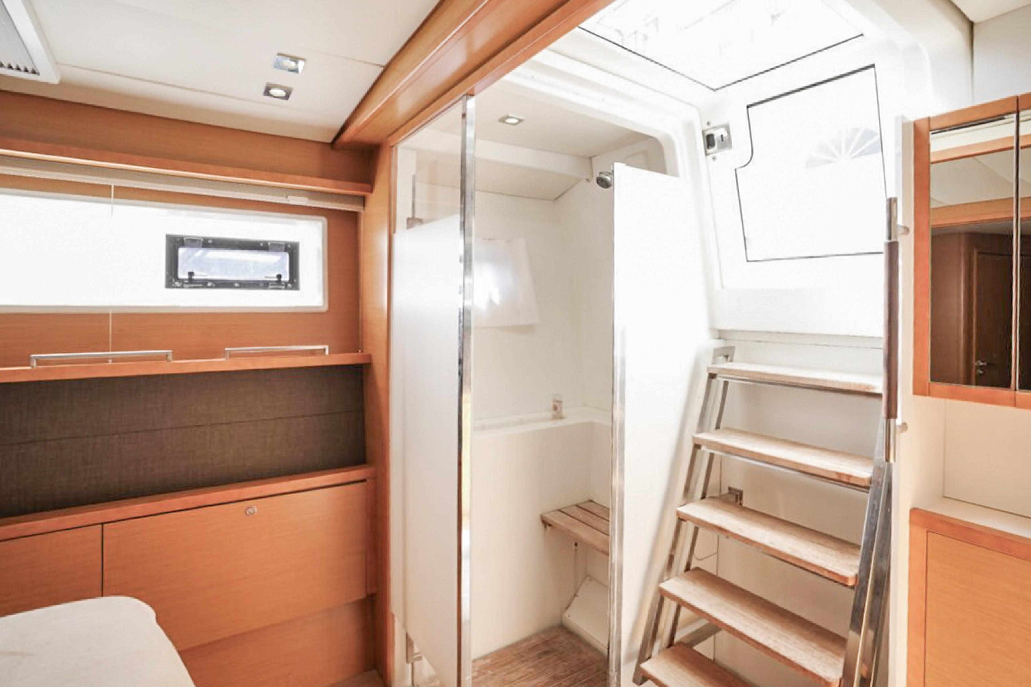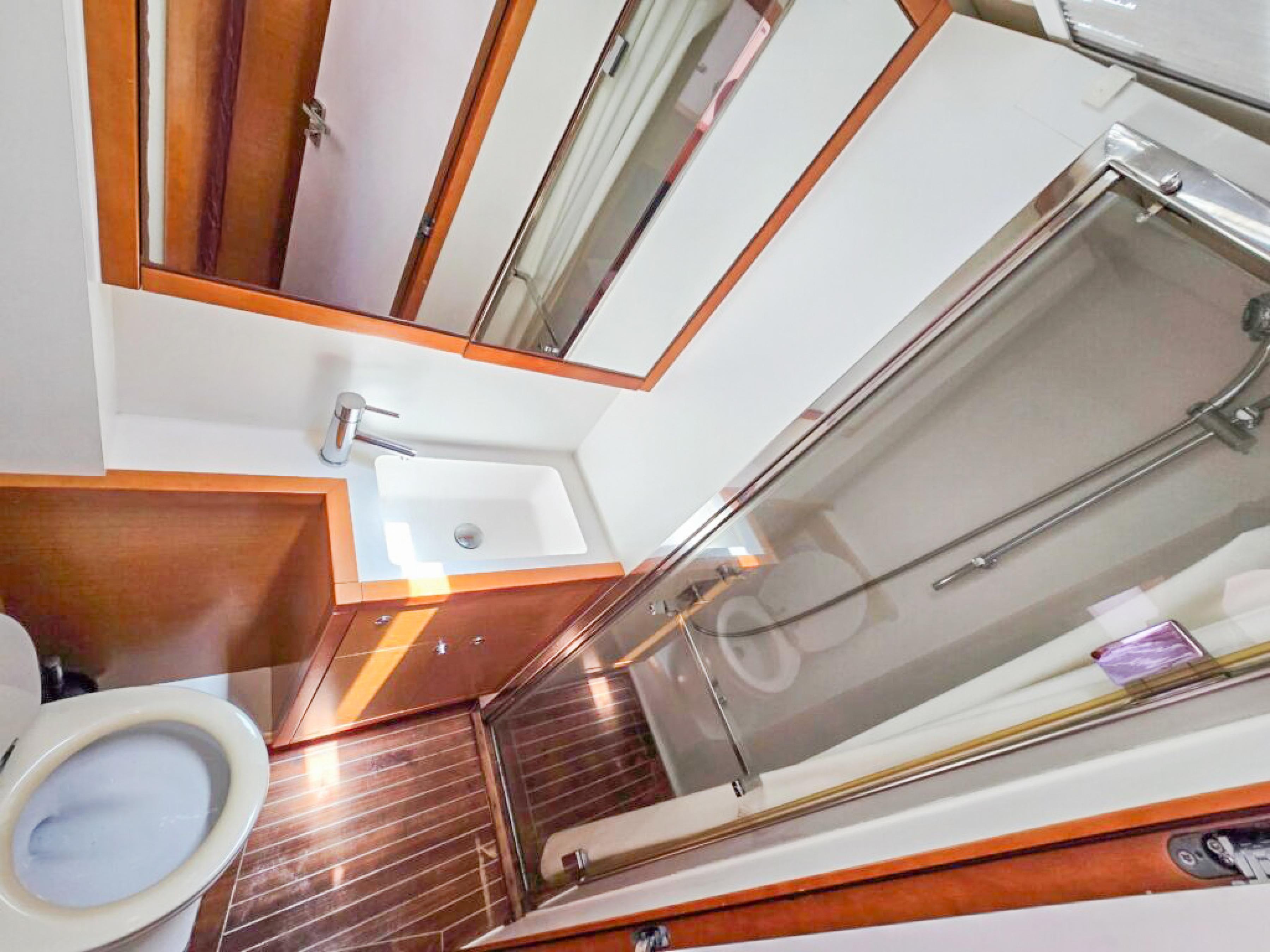 The raised flybridge, forward cockpit lounge, and expansive aft sundeck provide inviting outdoor spaces for entertaining or relaxing at sea. With a full suite of B&G electronics, updated sails, and a powerful Sea Recovery watermaker, shes fully equipped for extended cruising.